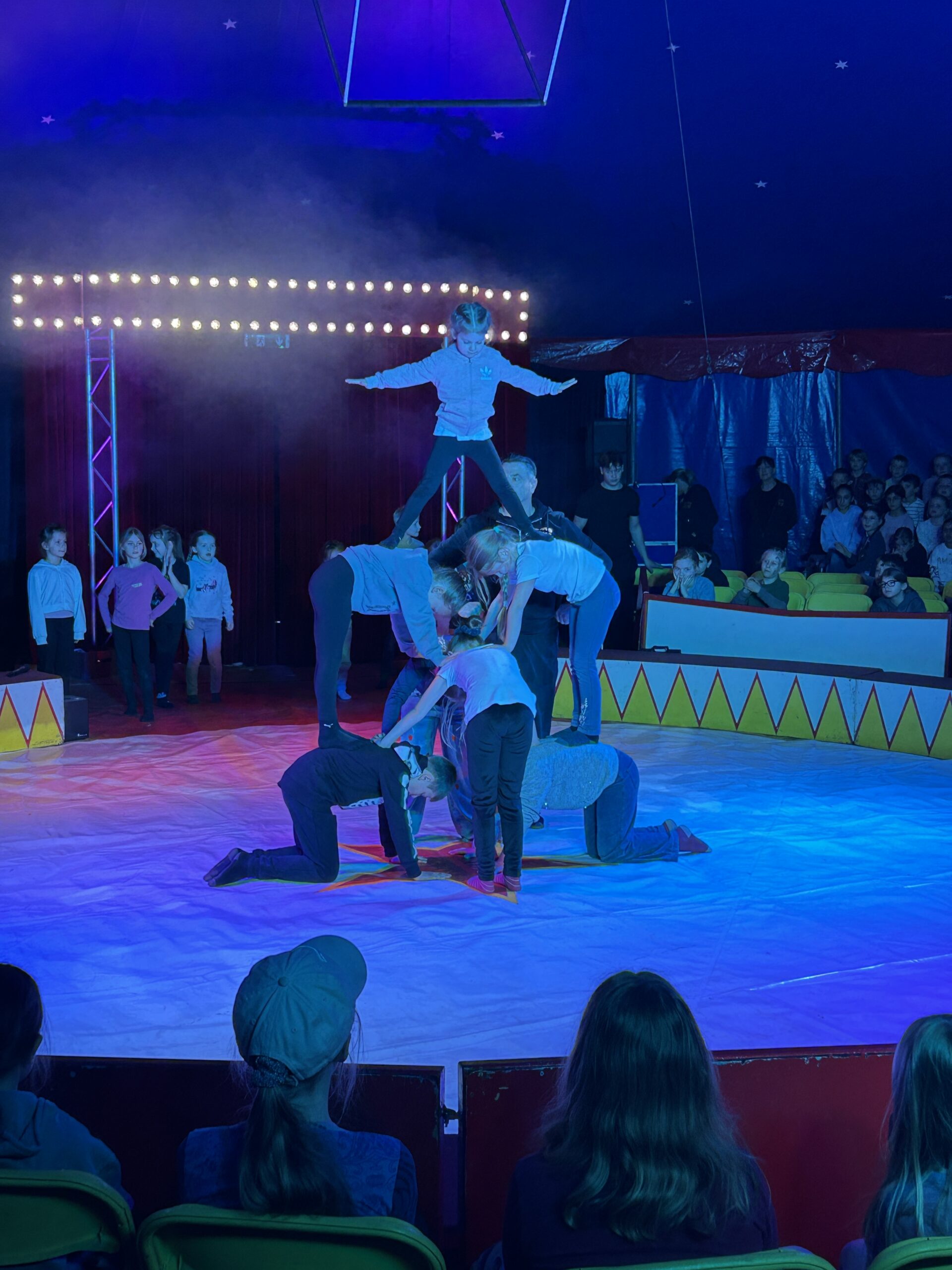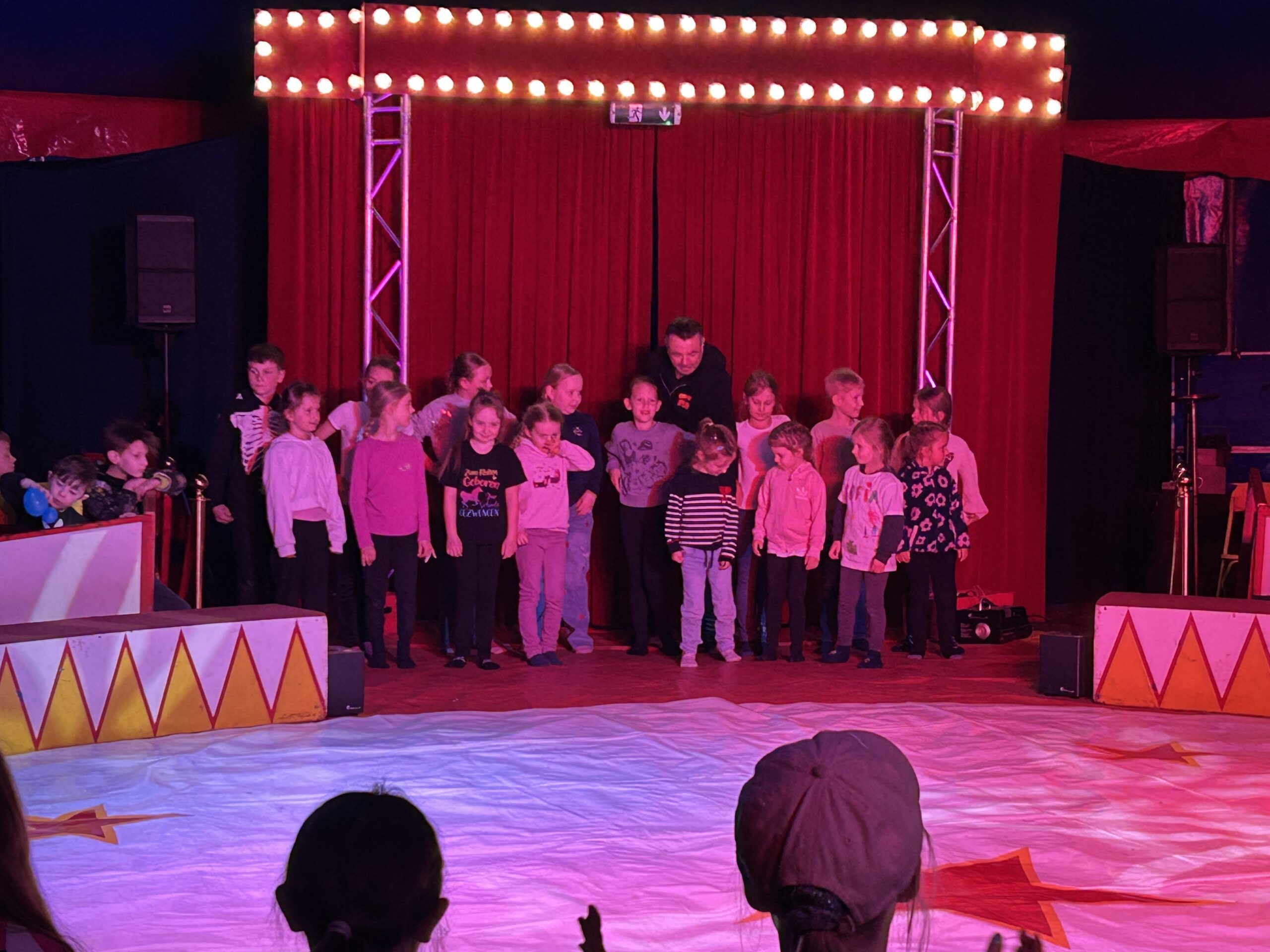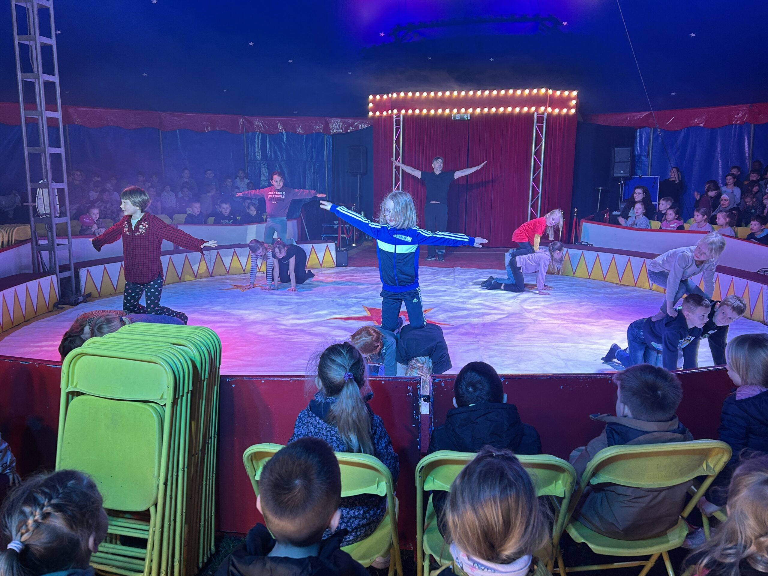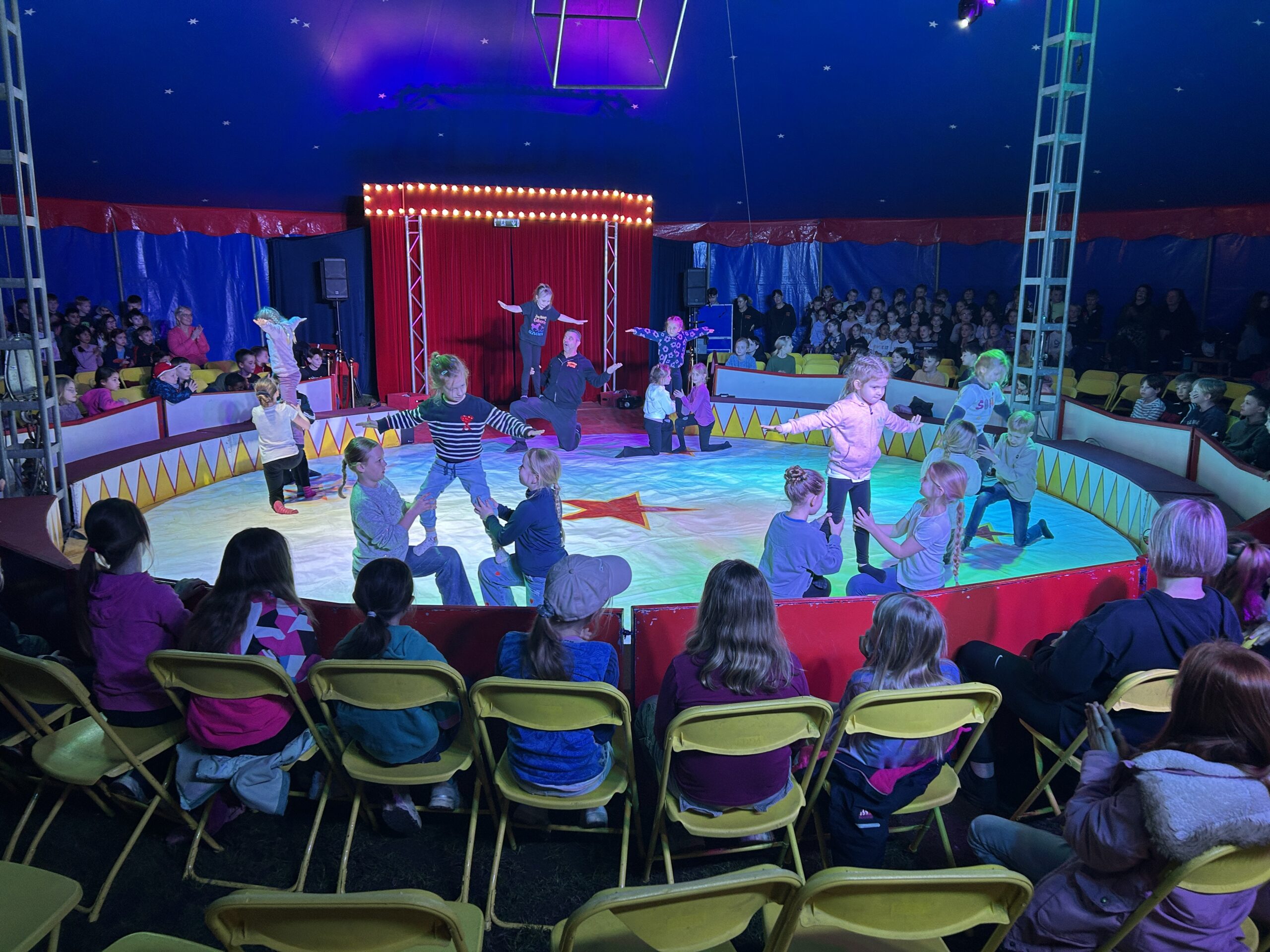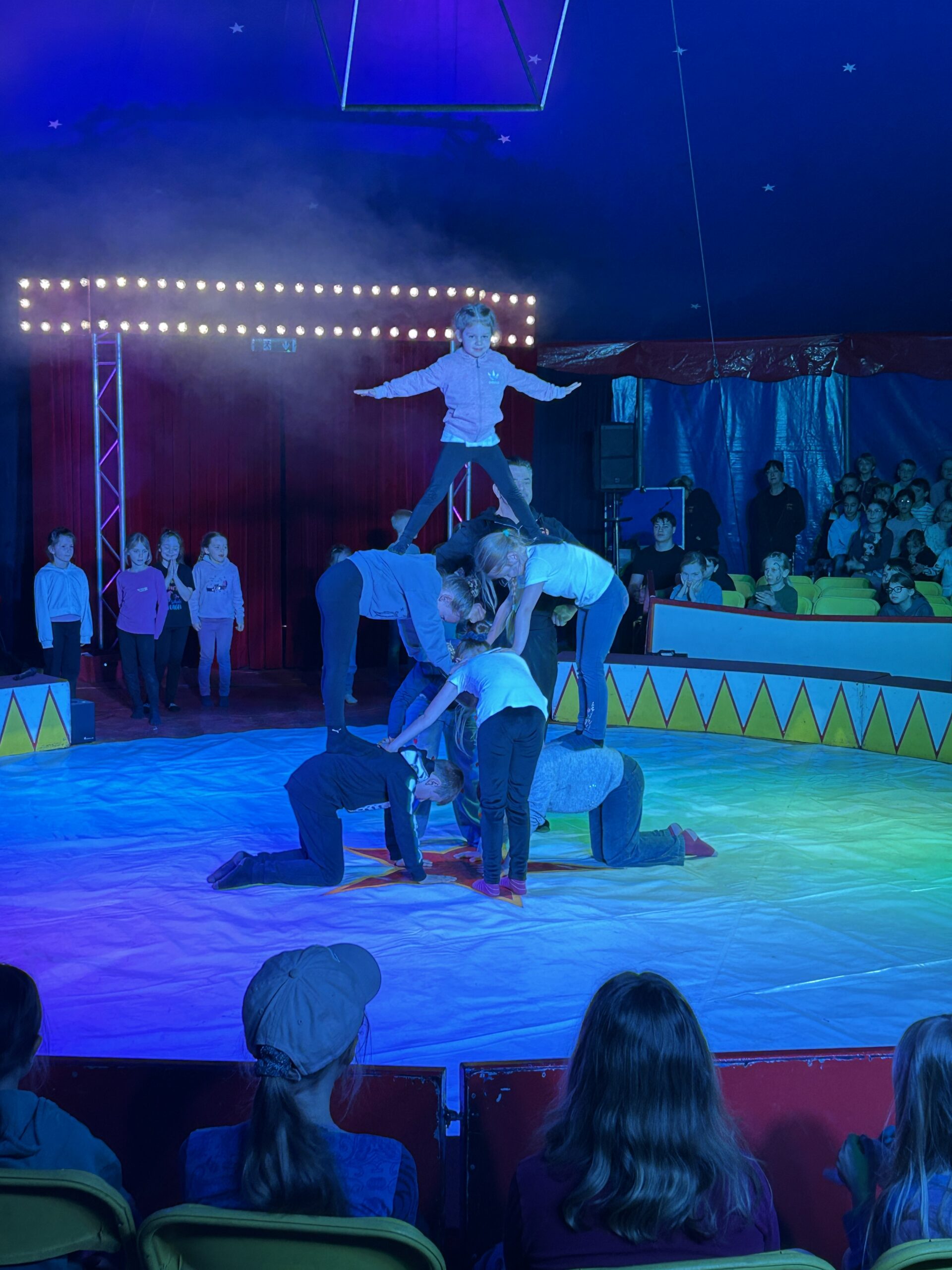 Am Montag sind wir mit allen Kindern der Grundschule und mit den Vorschulkindern aus den Kindertagesstätten in das Zirkuszelt gegangen. Dort begrüßte uns das Zirkusteam und stellte uns die Darbietungen vor. Bereits bei der Schnupperstunde konnten schon die ersten Kinder aktiv dabei sein.