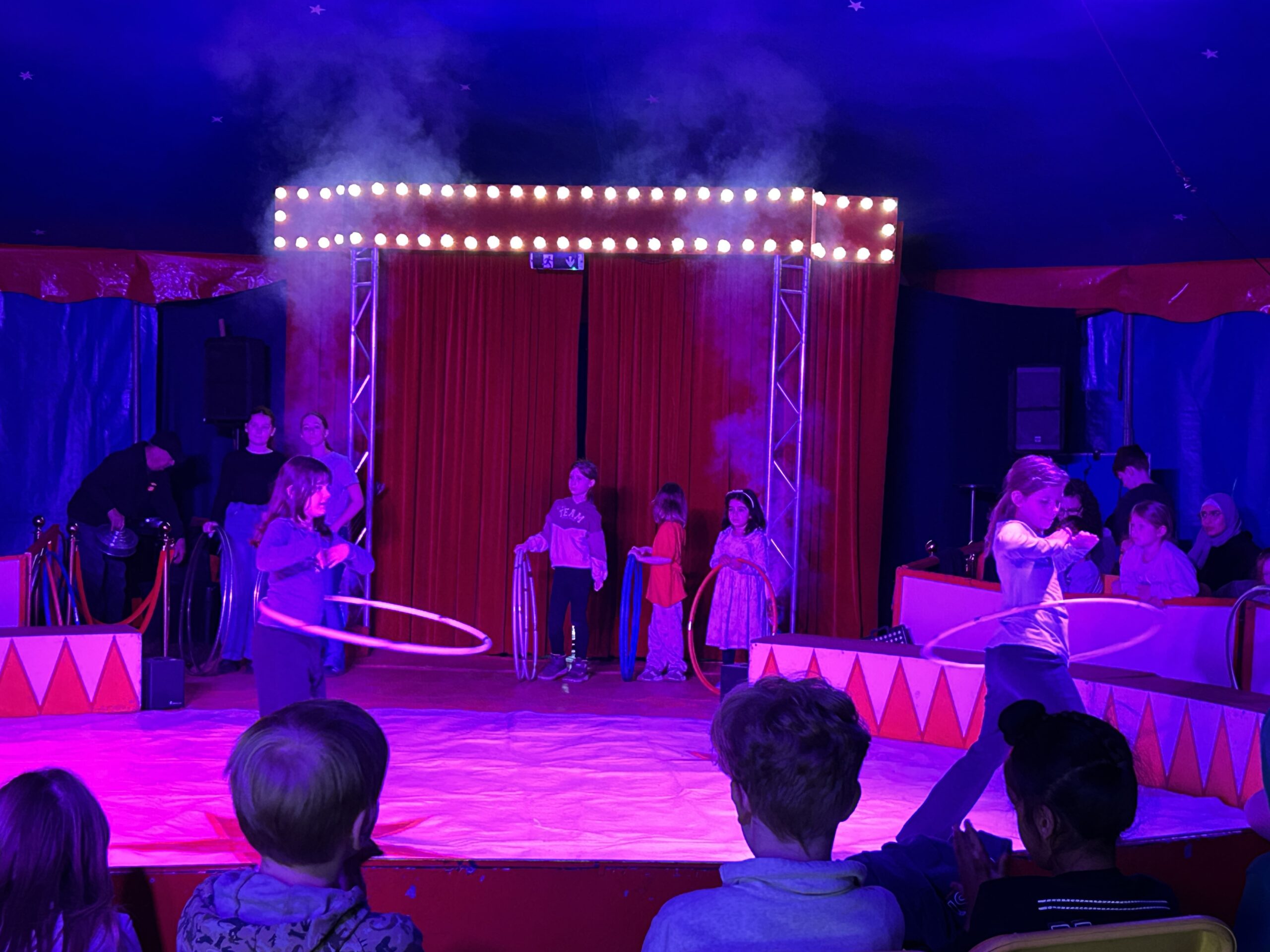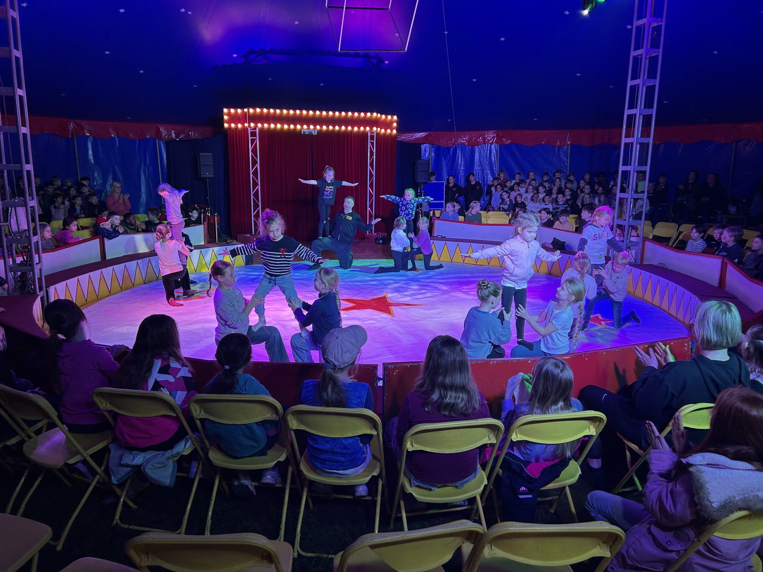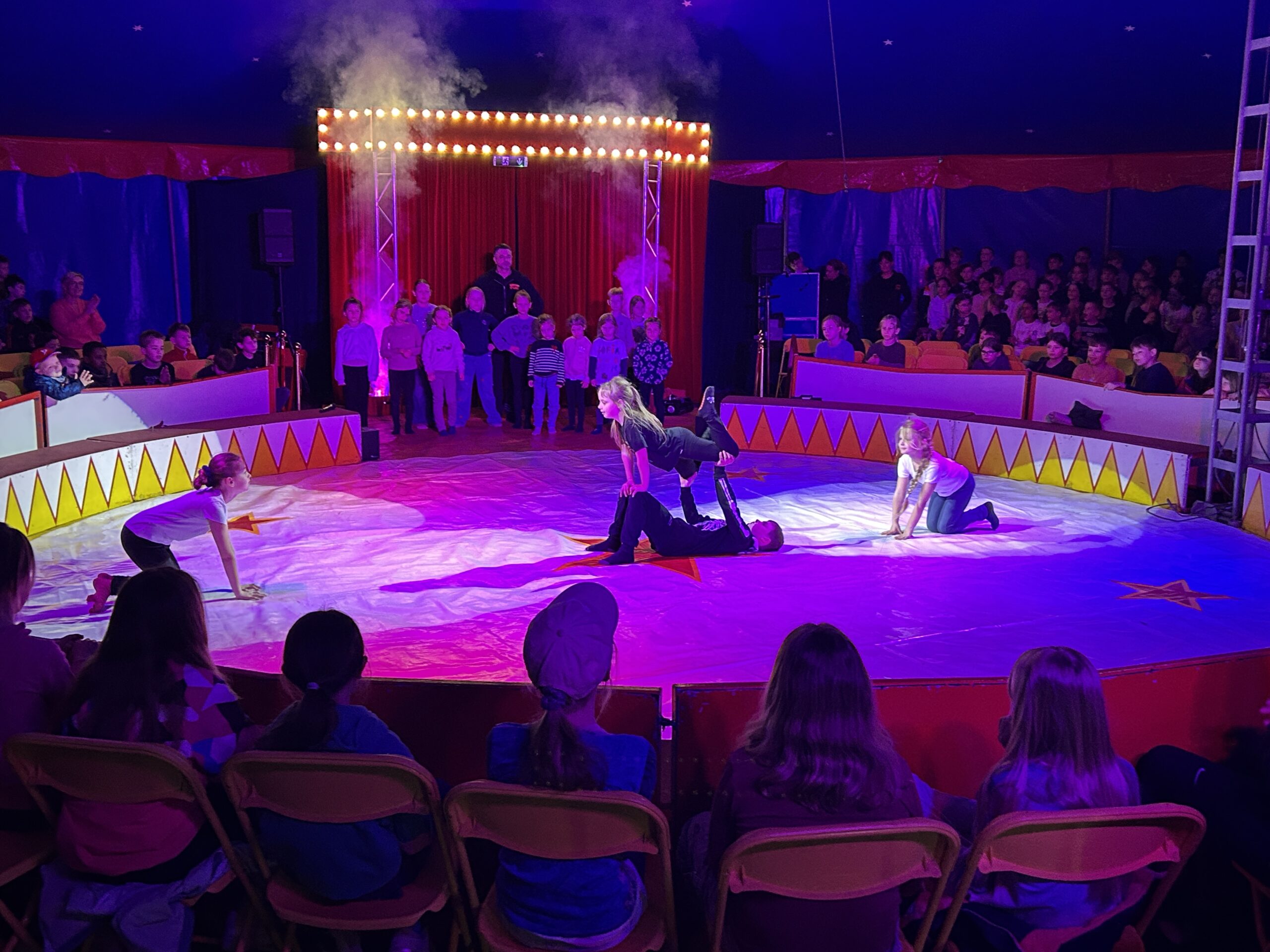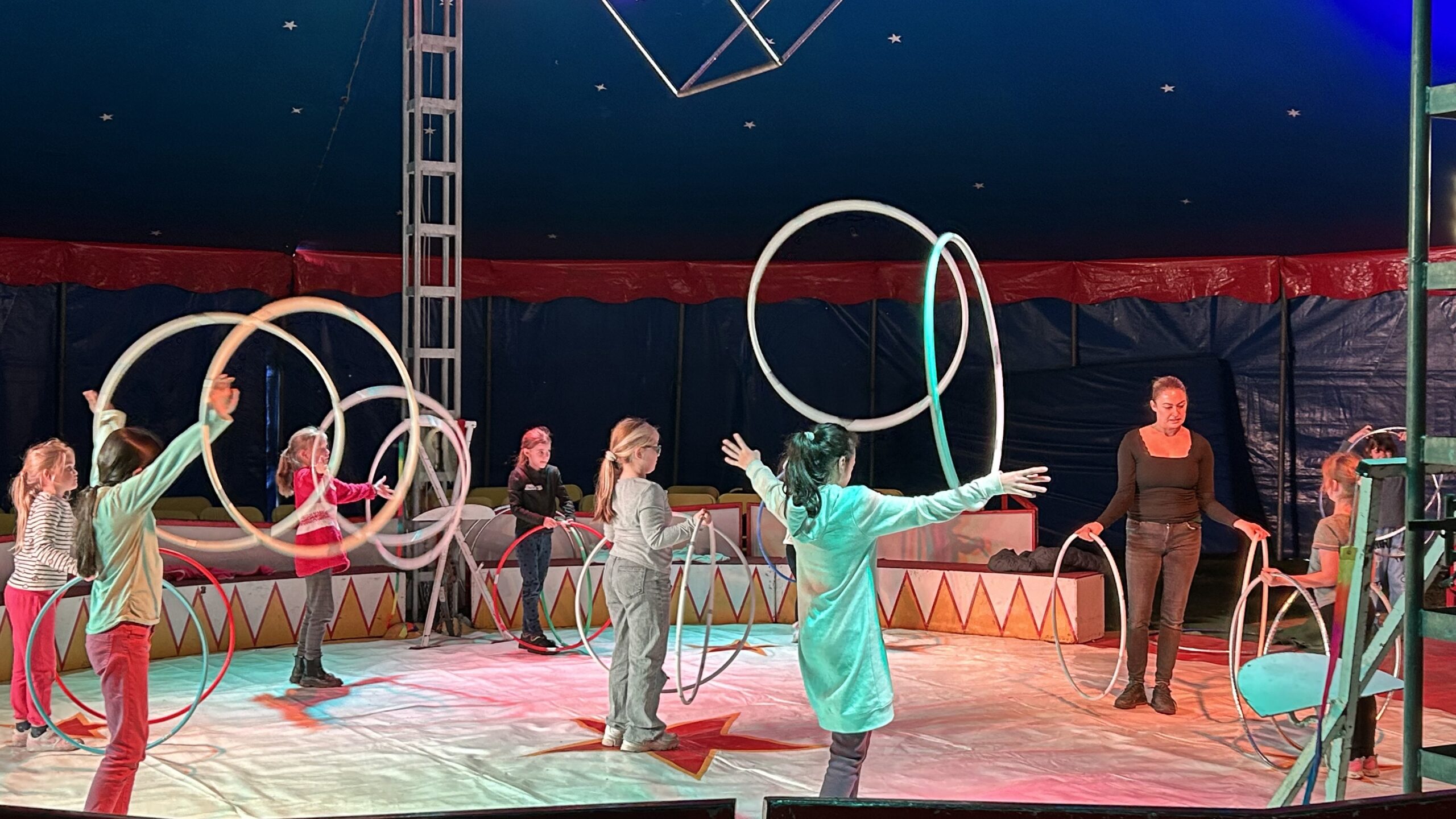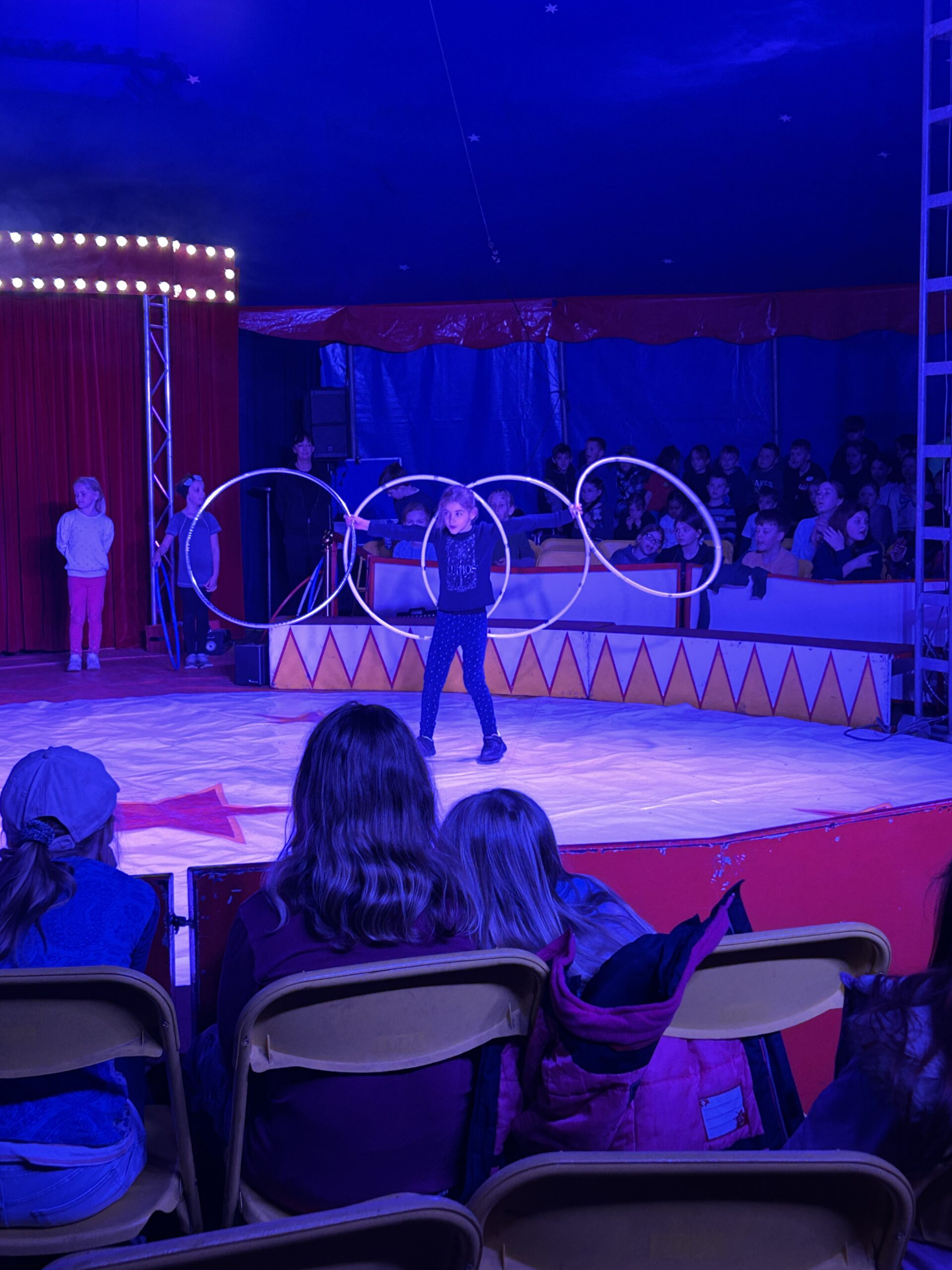 Am Montag sind wir mit allen Kindern der Grundschule und mit den Vorschulkindern aus den Kindertagesstätten in das Zirkuszelt gegangen. Dort begrüßte uns das Zirkusteam und stellte uns die Darbietungen vor. Bereits bei der Schnupperstunde konnten schon die ersten Kinder aktiv dabei sein.