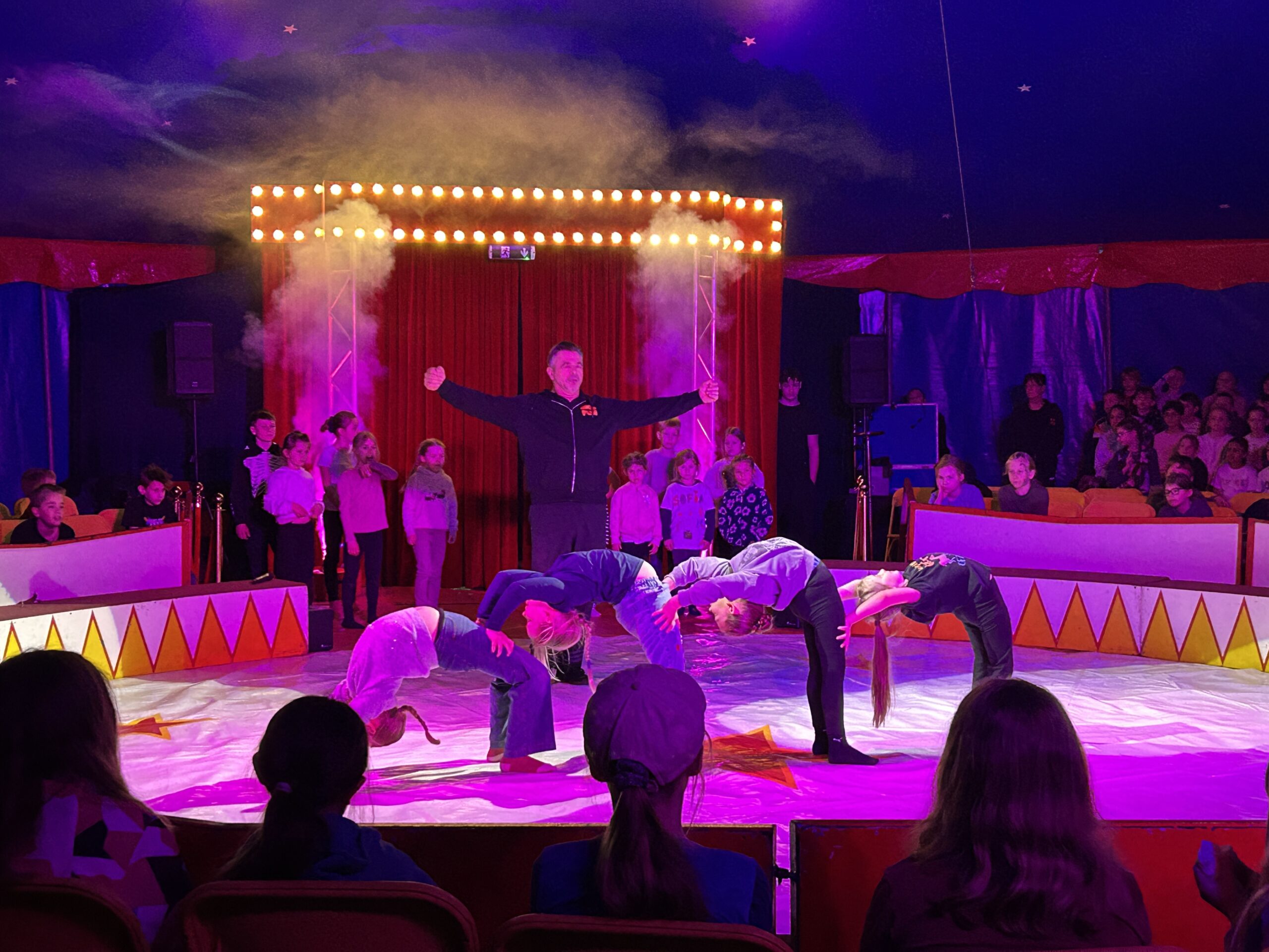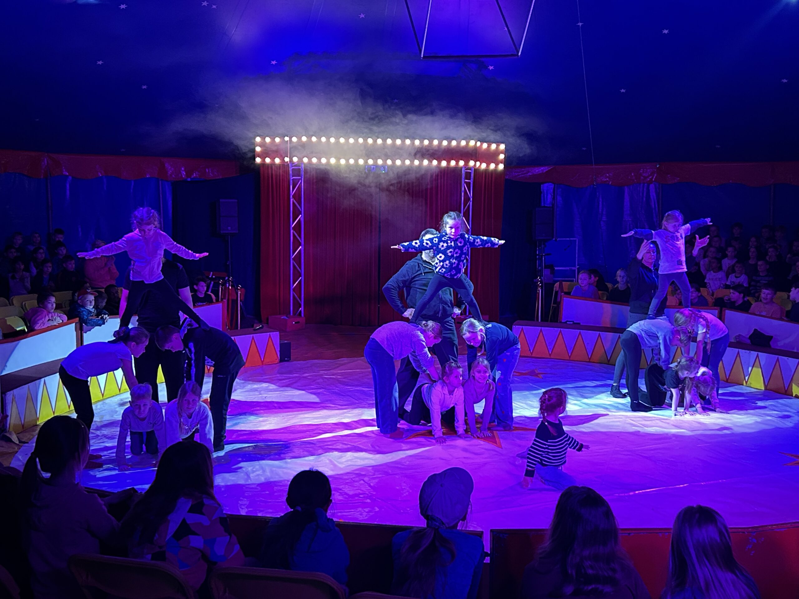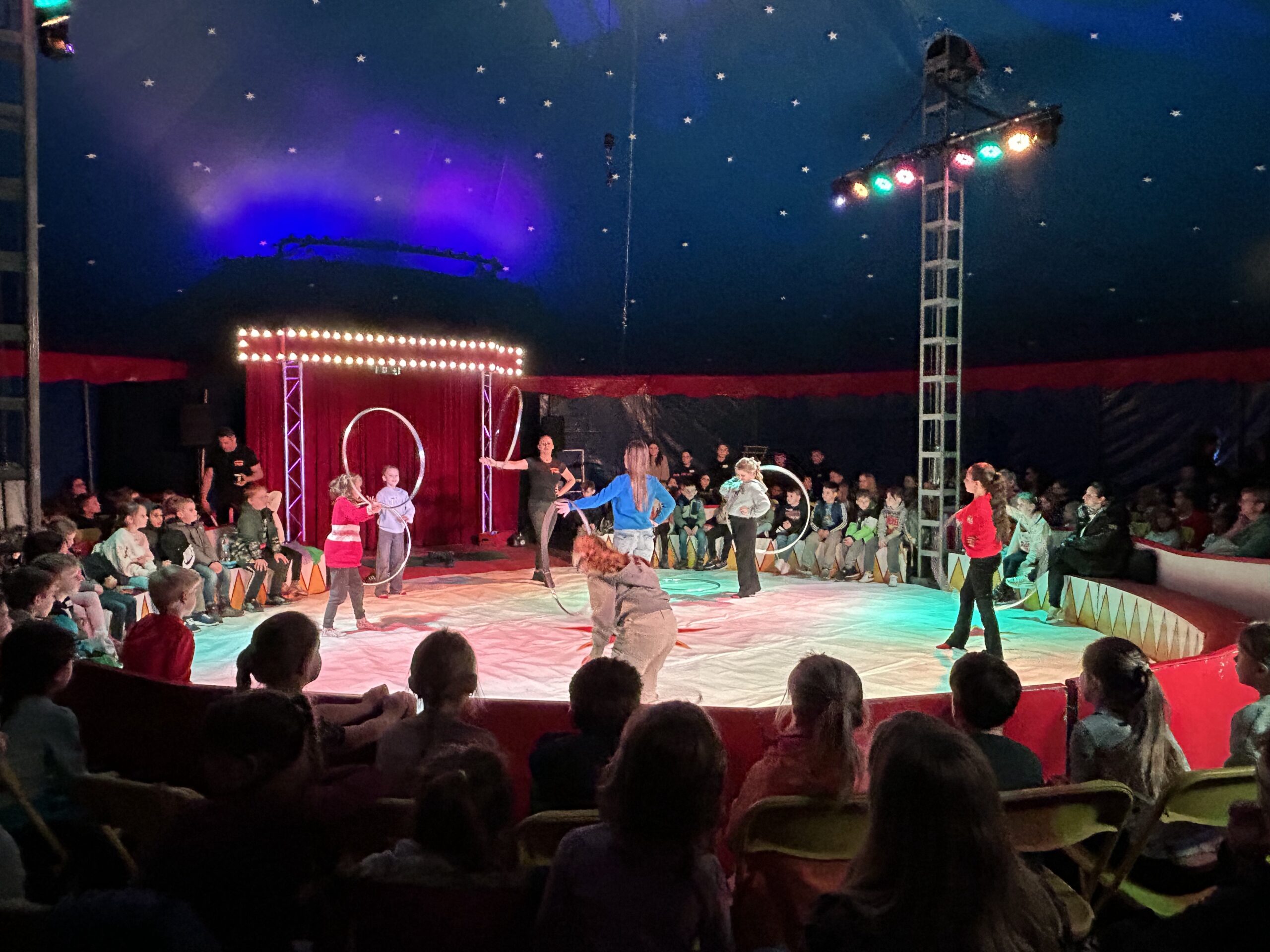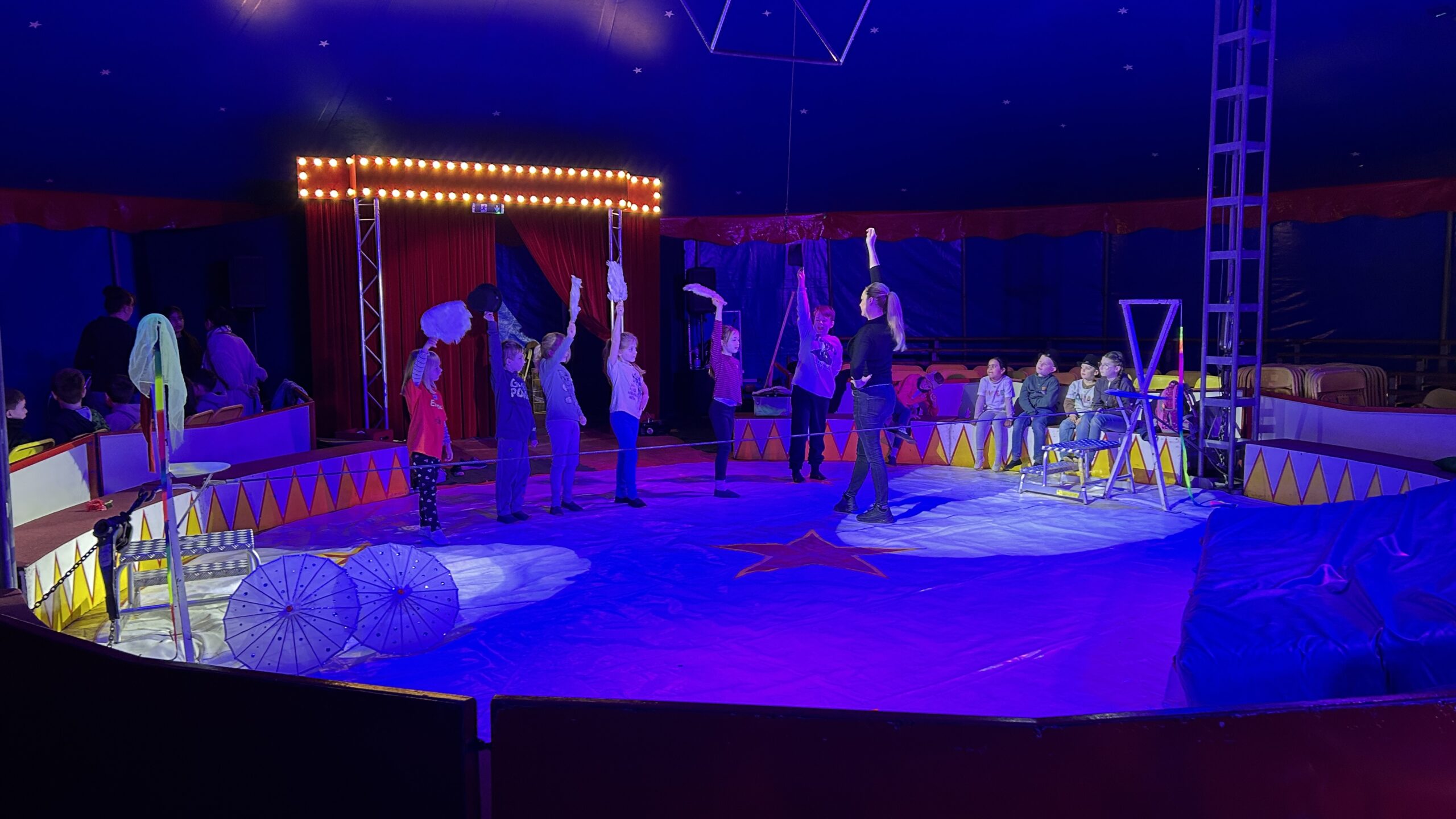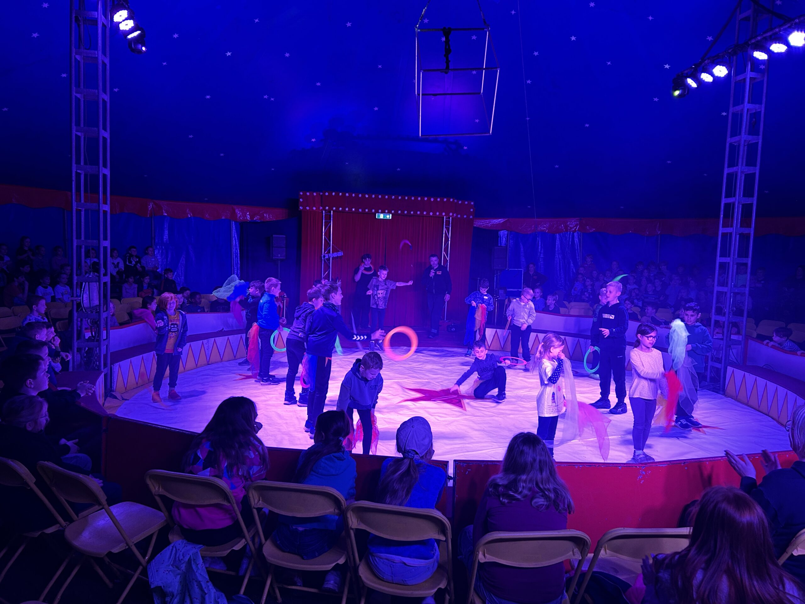 Am Montag sind wir mit allen Kindern der Grundschule und mit den Vorschulkindern aus den Kindertagesstätten in das Zirkuszelt gegangen. Dort begrüßte uns das Zirkusteam und stellte uns die Darbietungen vor. Bereits bei der Schnupperstunde konnten schon die ersten Kinder aktiv dabei sein.