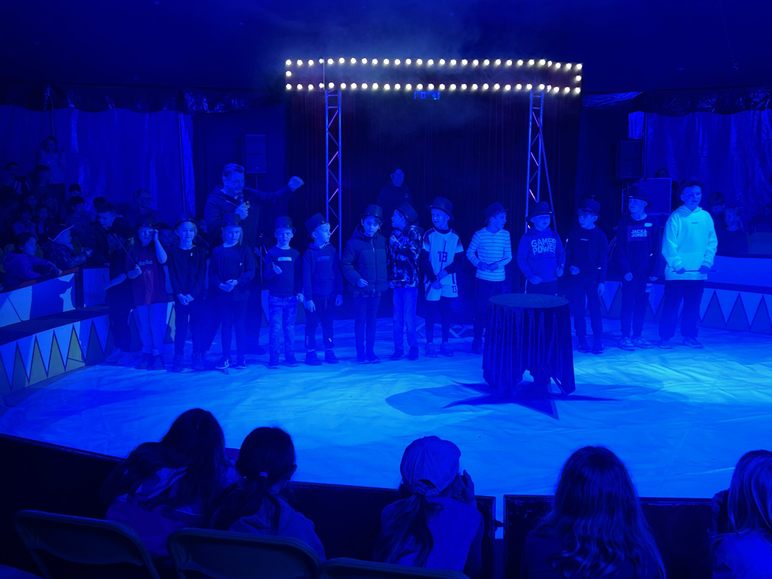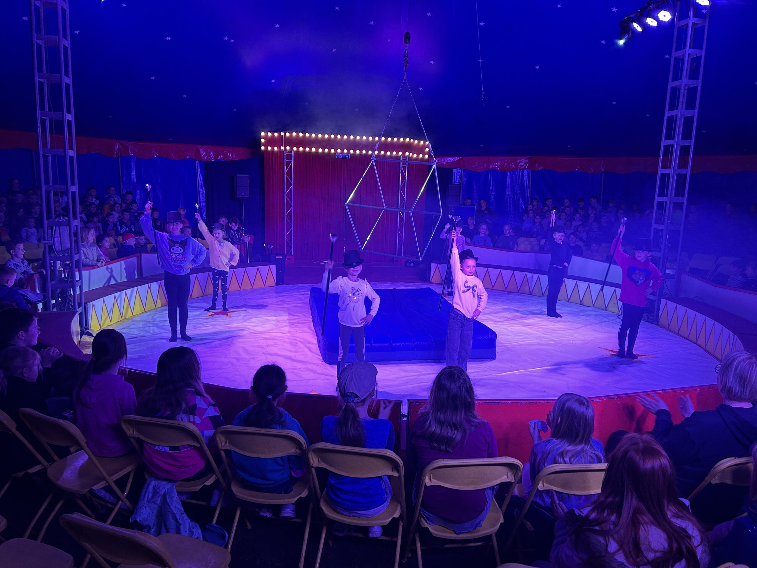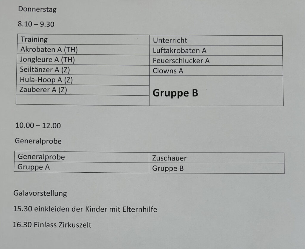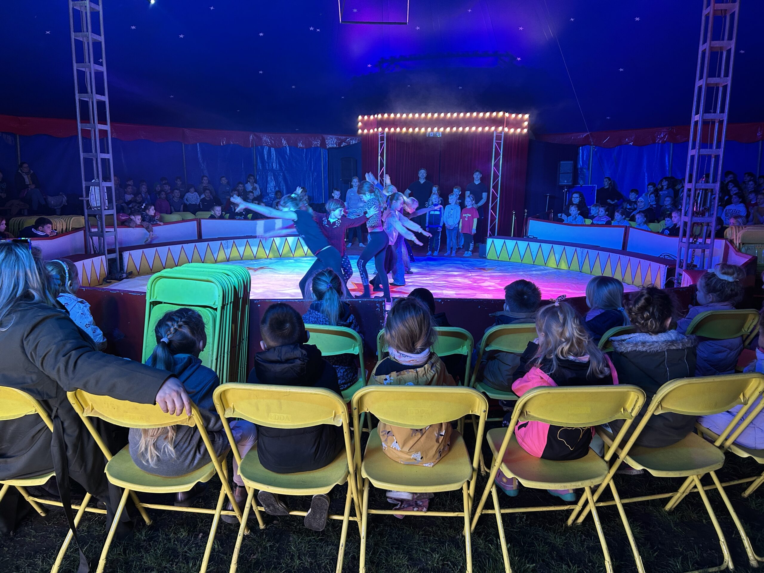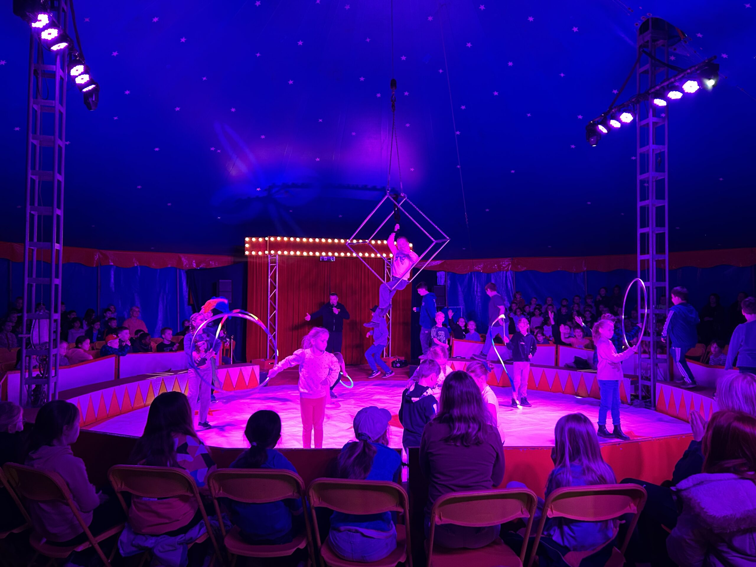 Am Montag sind wir mit allen Kindern der Grundschule und mit den Vorschulkindern aus den Kindertagesstätten in das Zirkuszelt gegangen. Dort begrüßte uns das Zirkusteam und stellte uns die Darbietungen vor. Bereits bei der Schnupperstunde konnten schon die ersten Kinder aktiv dabei sein.