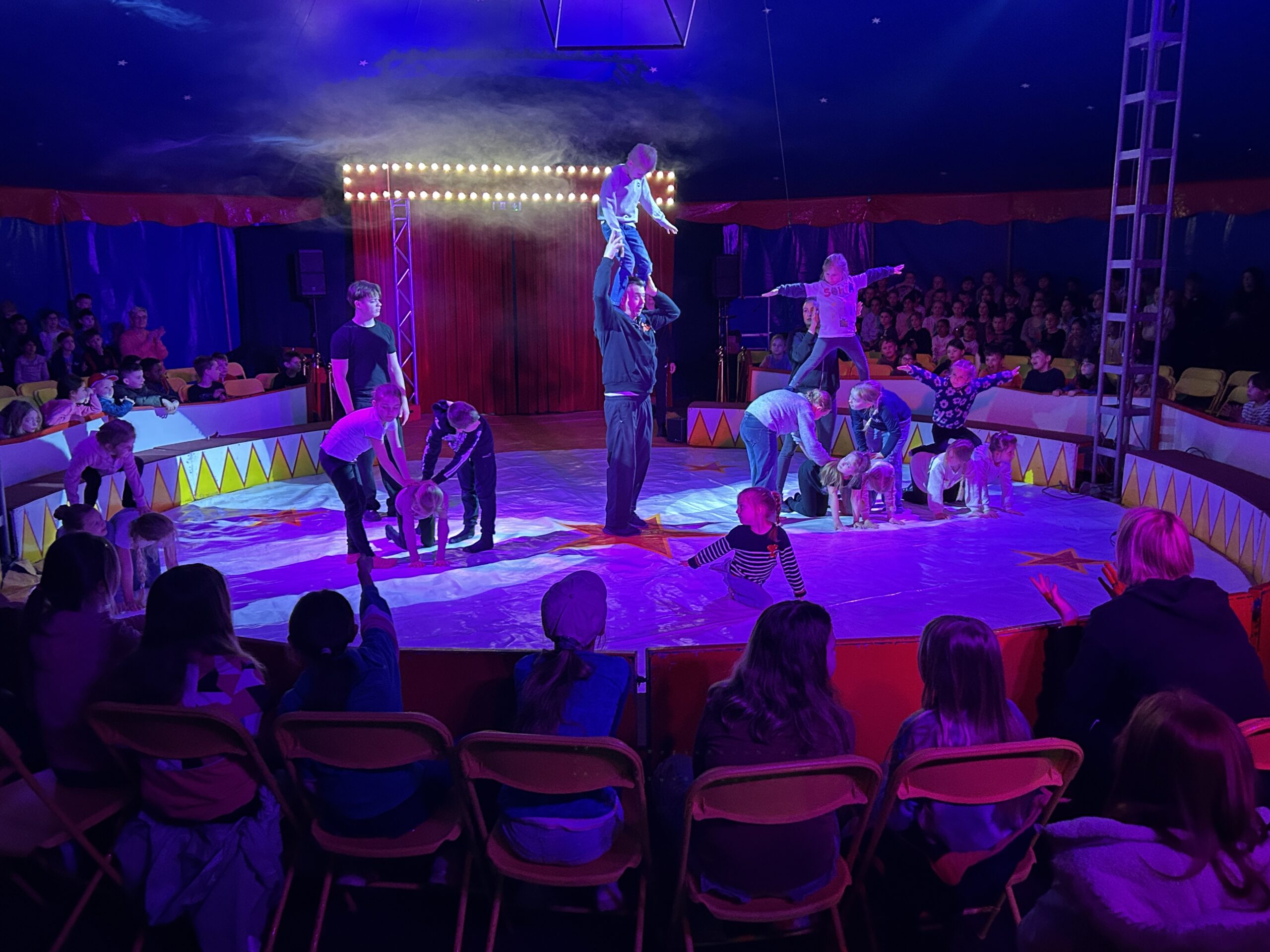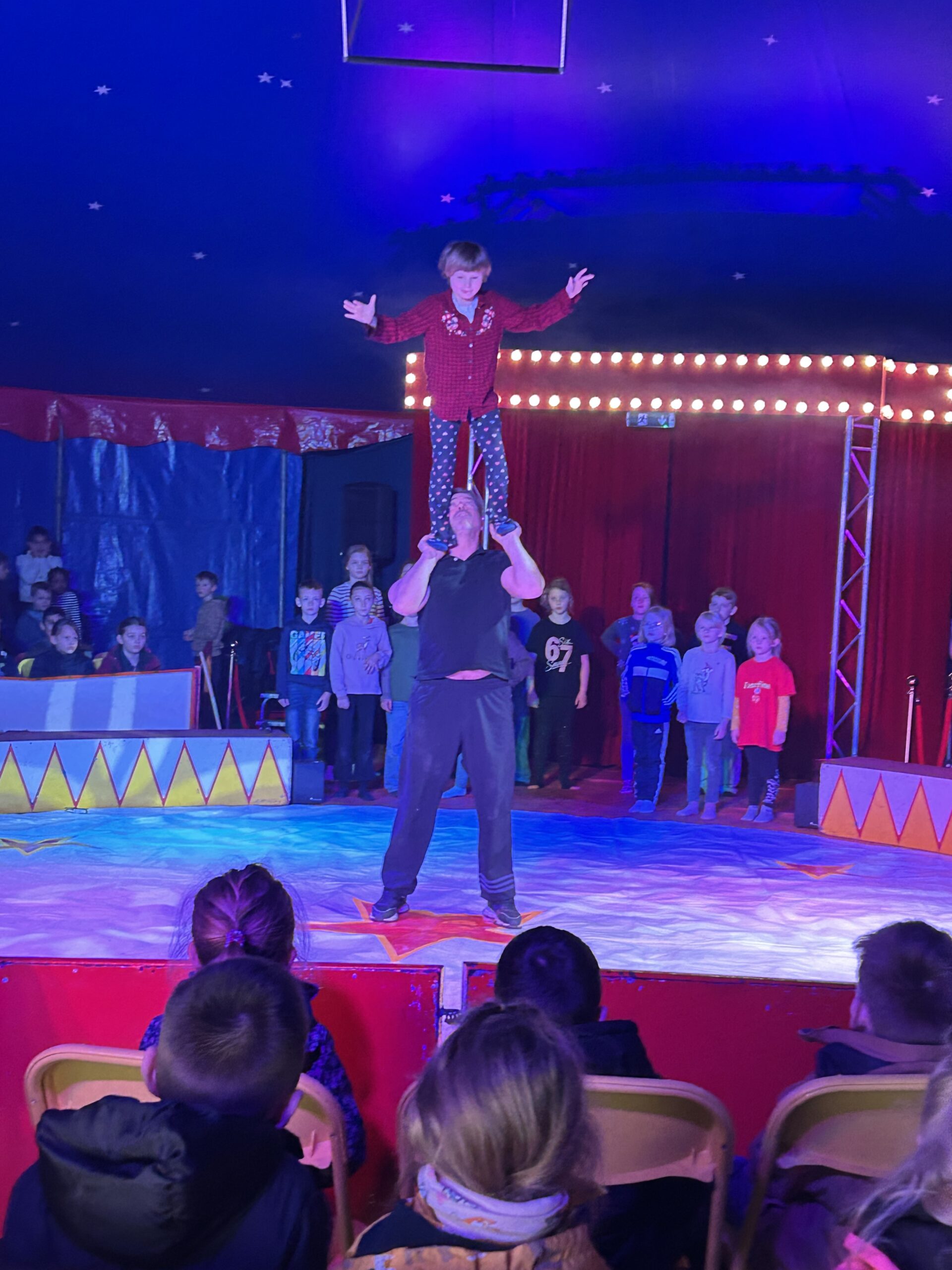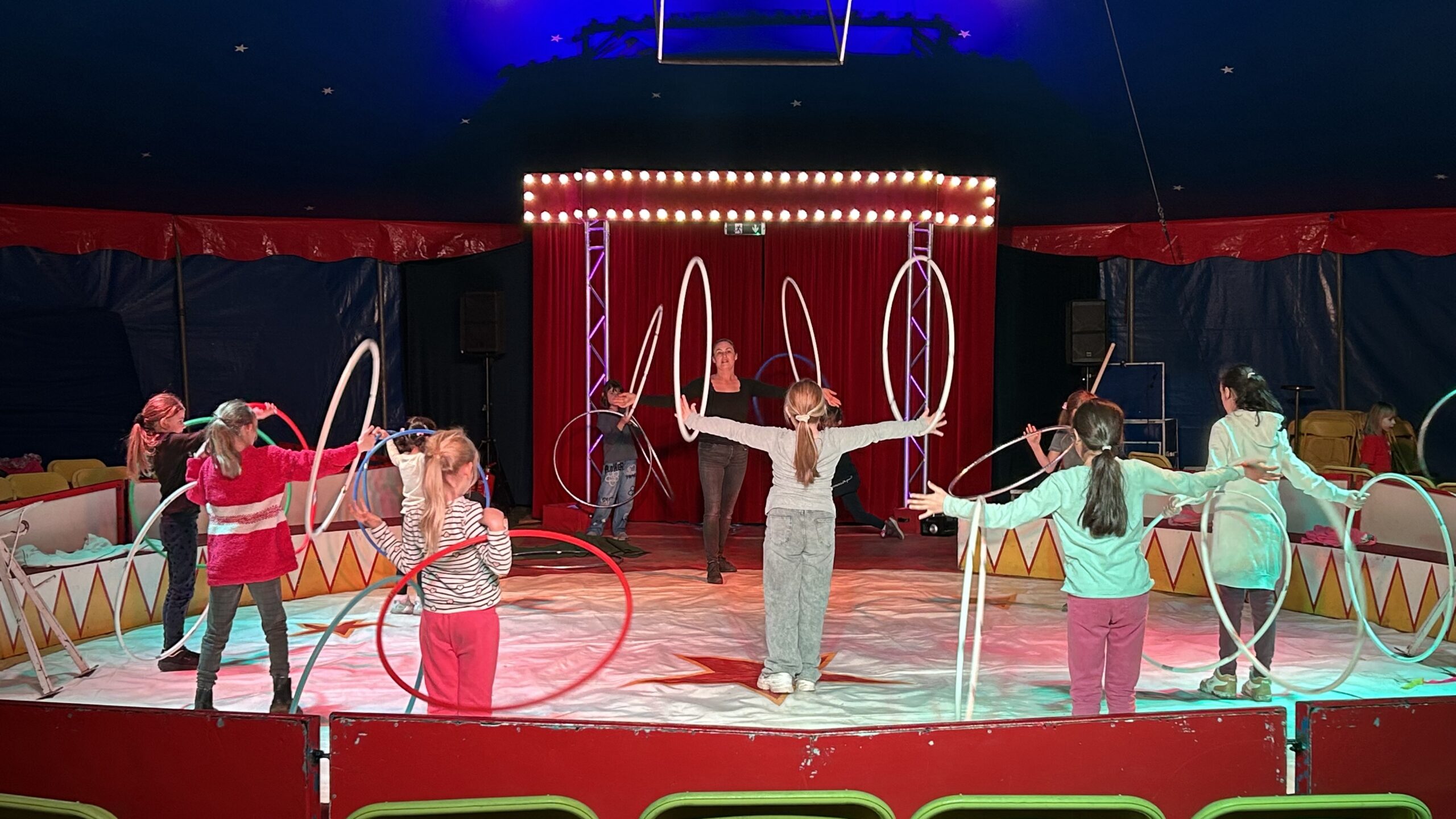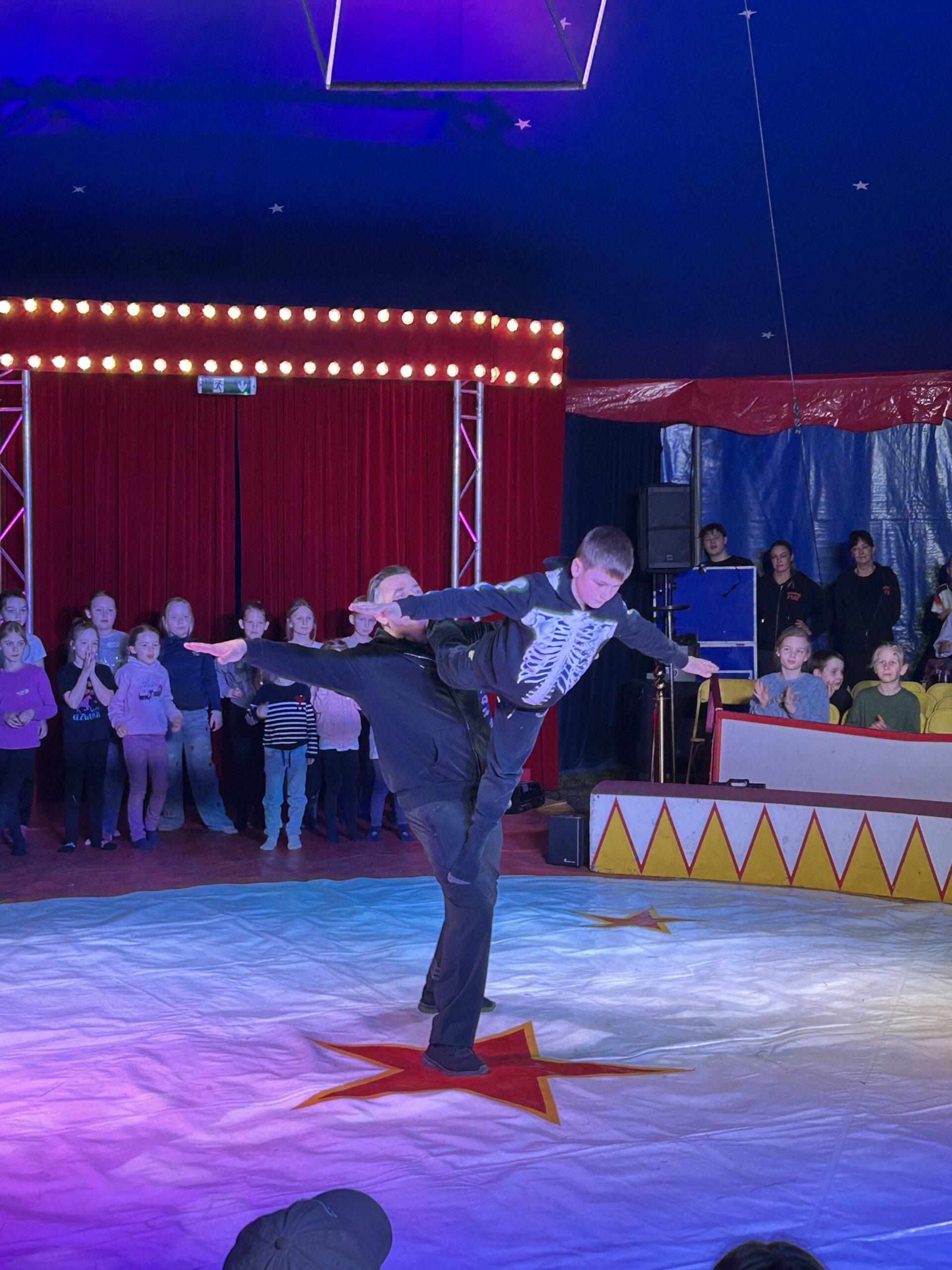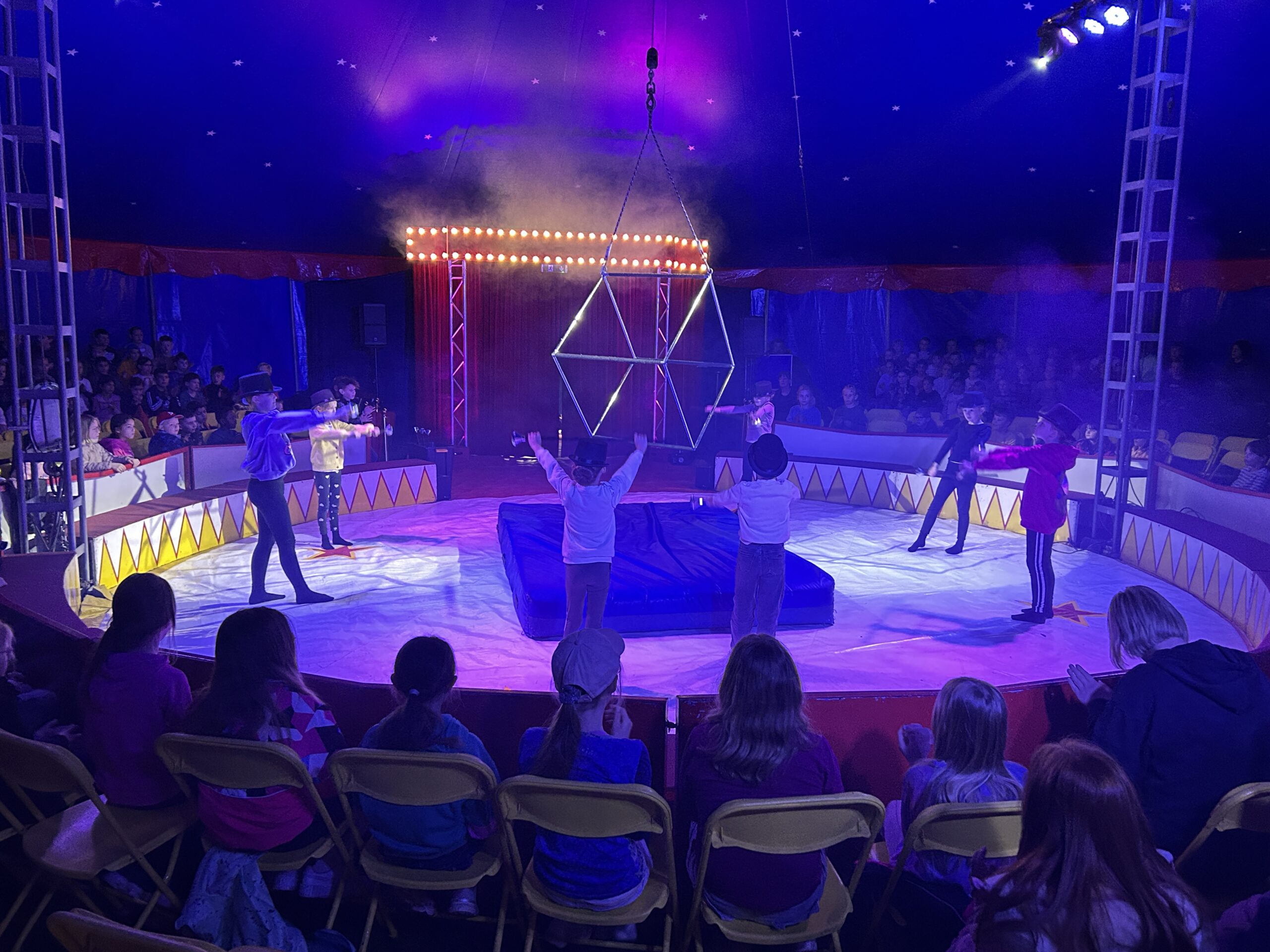 Am Montag sind wir mit allen Kindern der Grundschule und mit den Vorschulkindern aus den Kindertagesstätten in das Zirkuszelt gegangen. Dort begrüßte uns das Zirkusteam und stellte uns die Darbietungen vor. Bereits bei der Schnupperstunde konnten schon die ersten Kinder aktiv dabei sein.