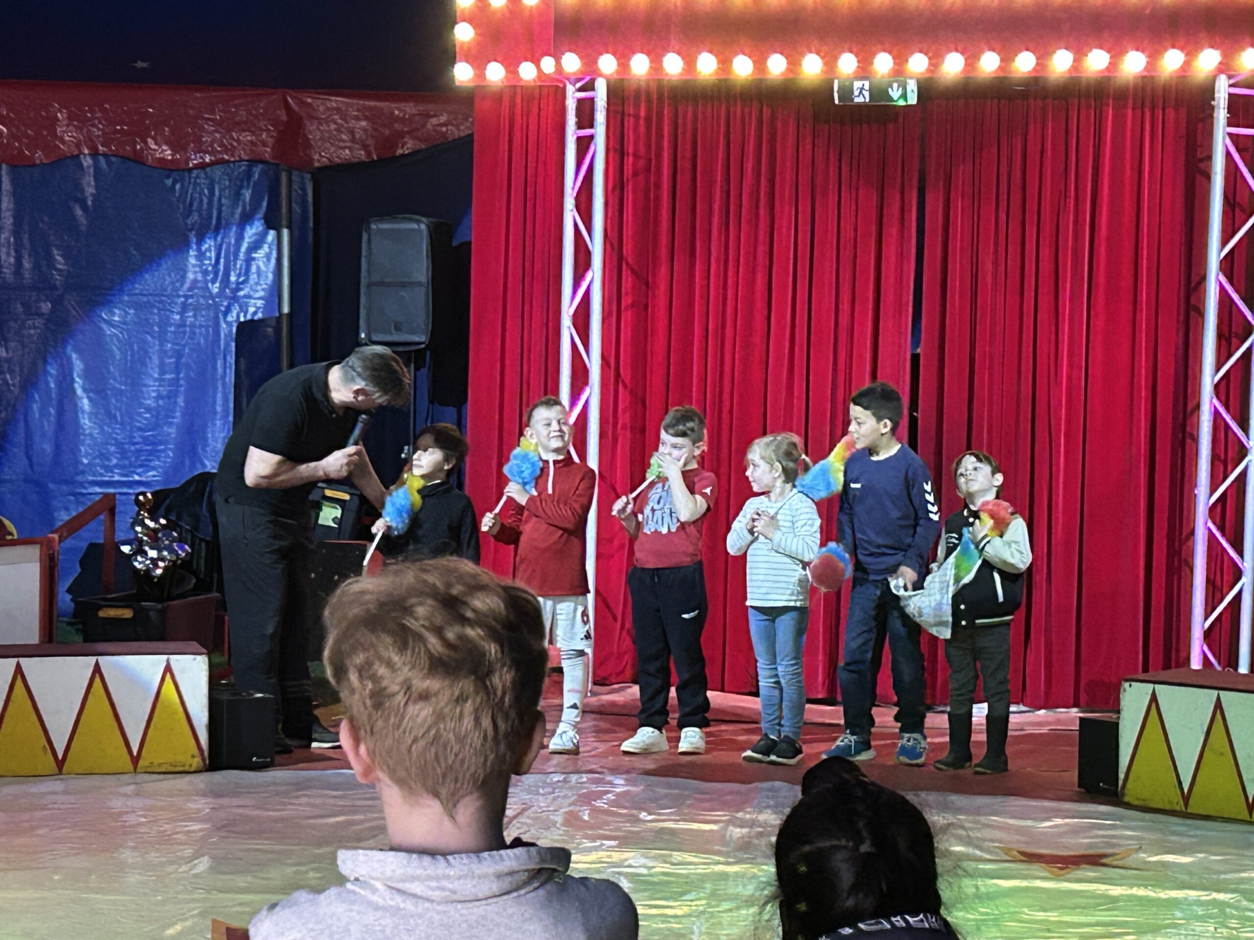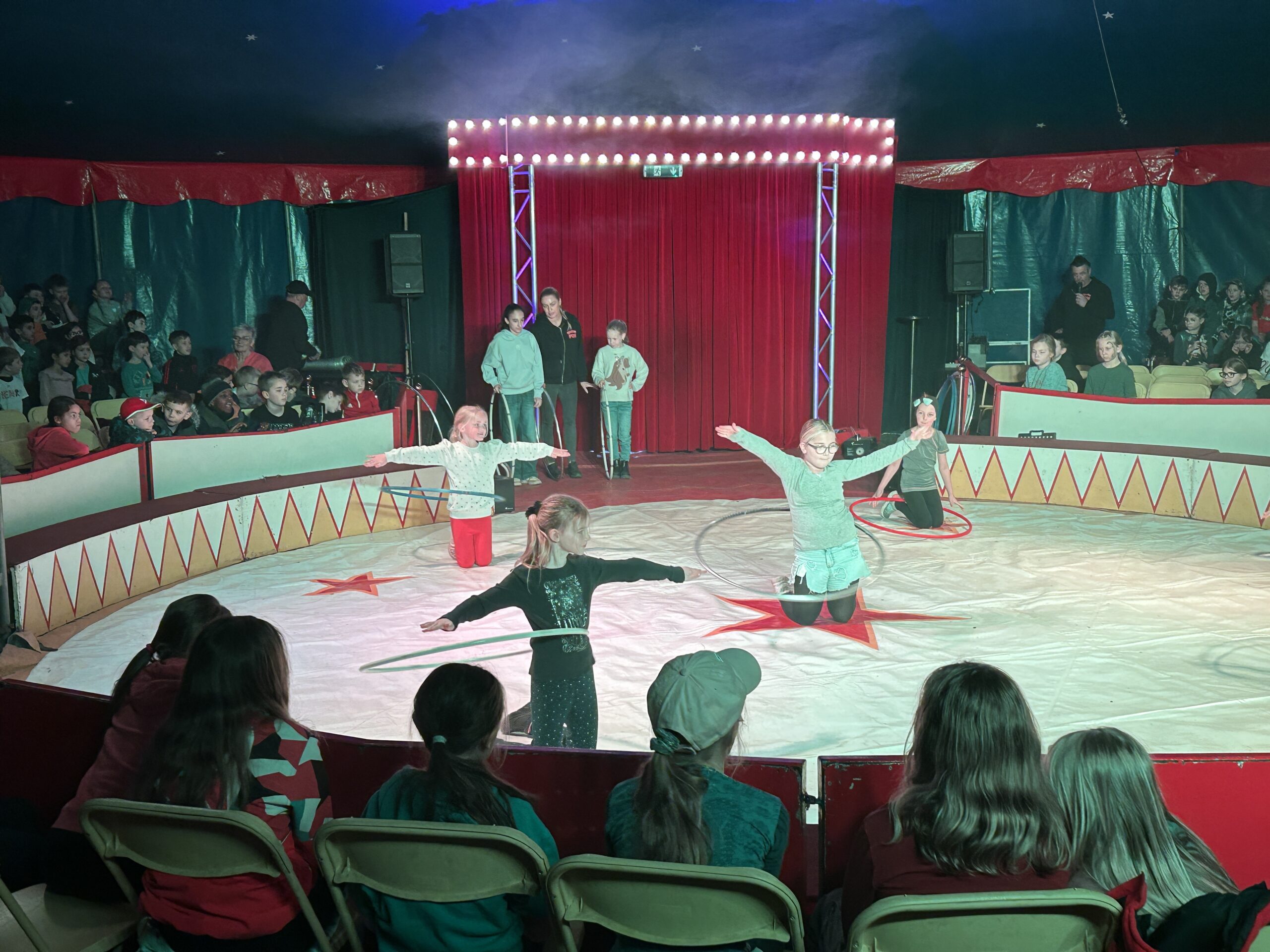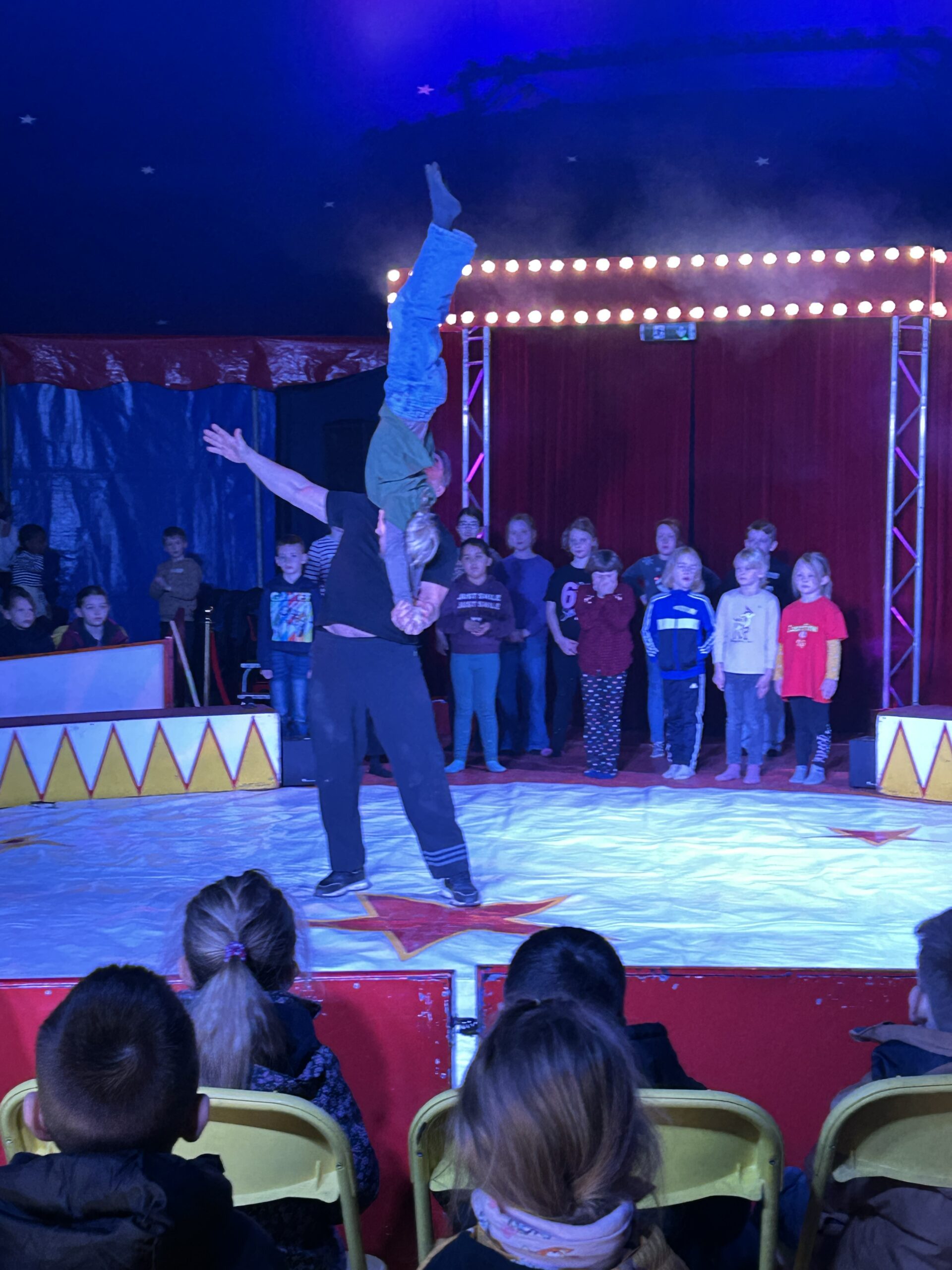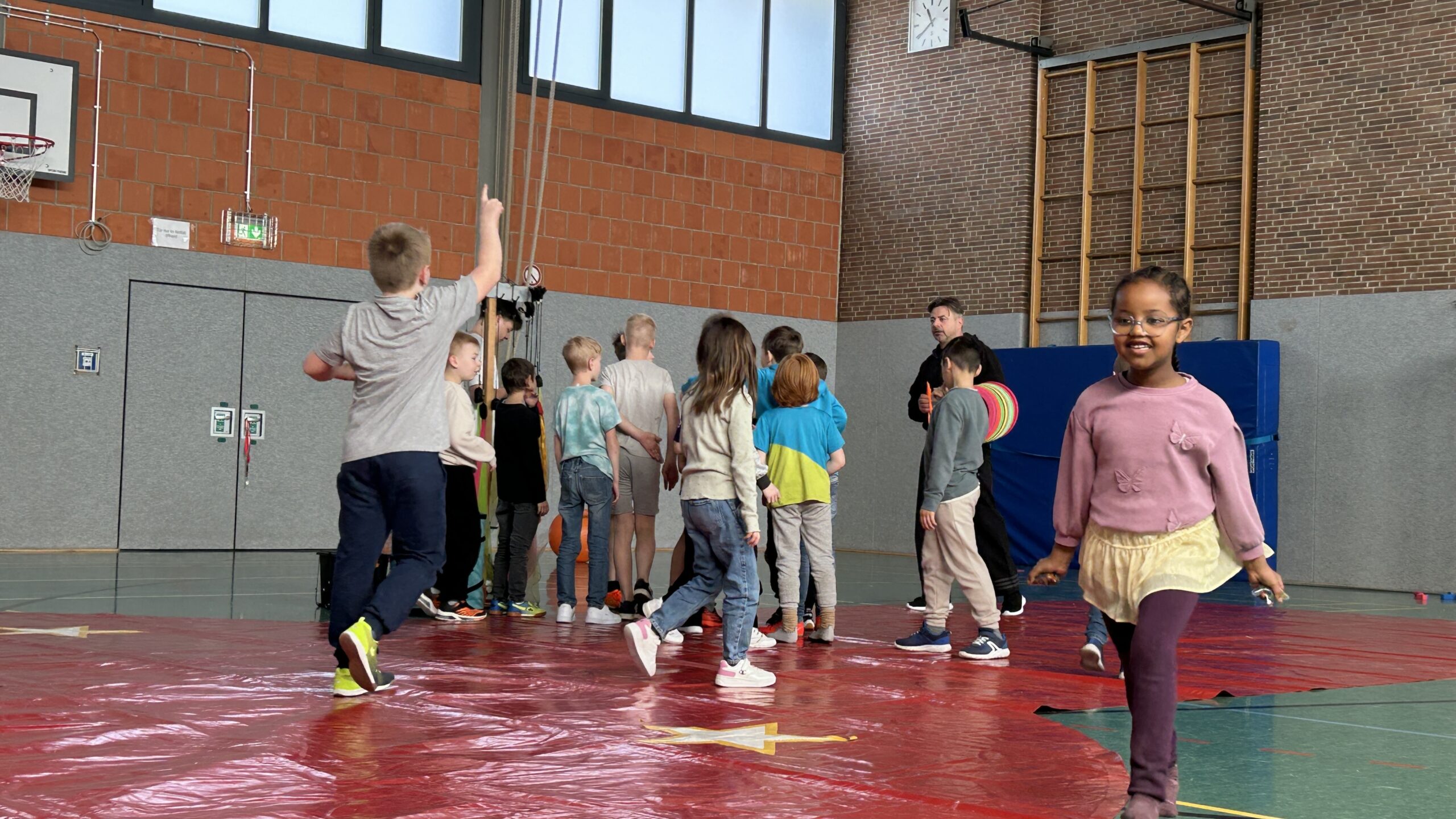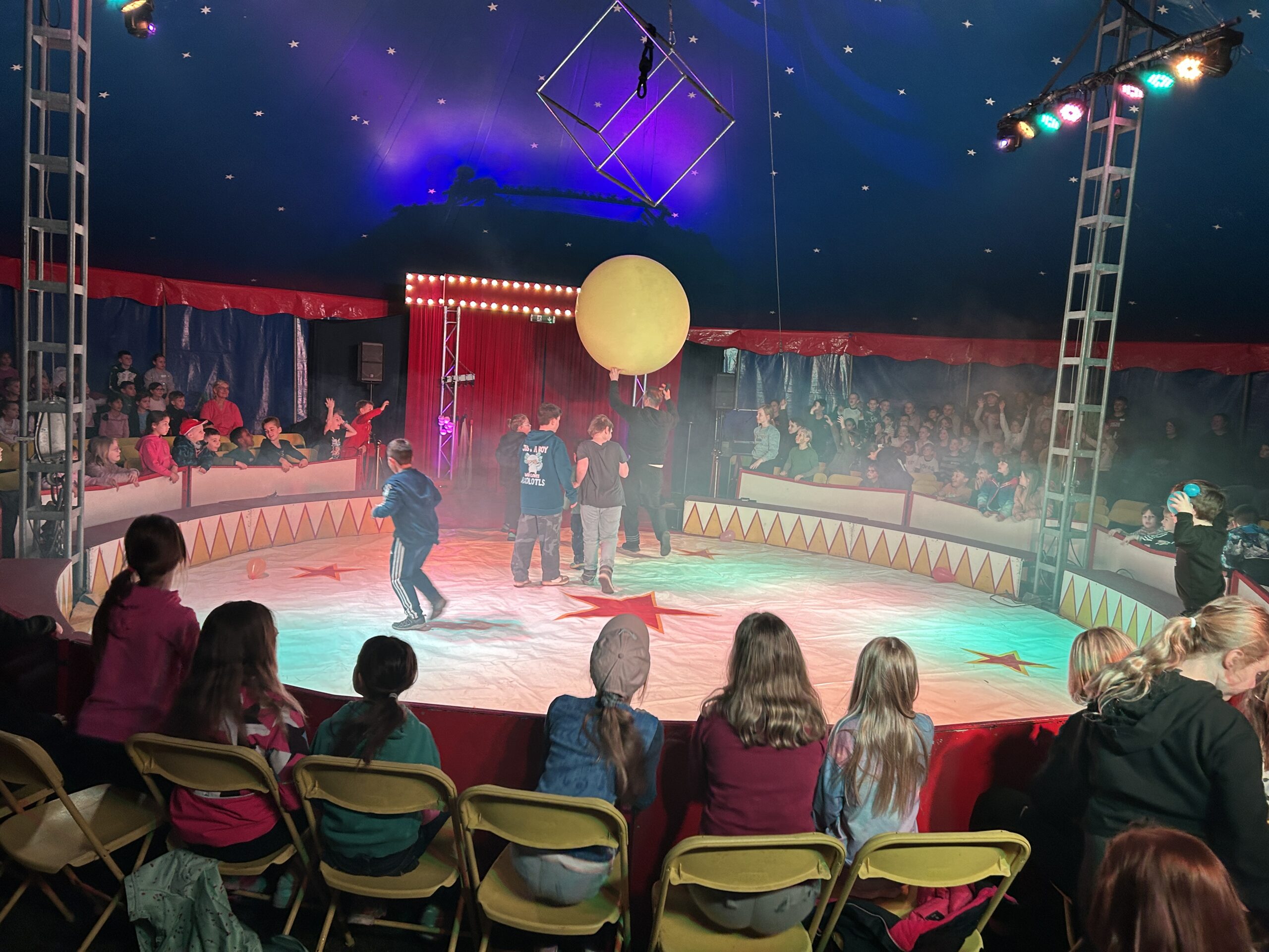 Am Montag sind wir mit allen Kindern der Grundschule und mit den Vorschulkindern aus den Kindertagesstätten in das Zirkuszelt gegangen. Dort begrüßte uns das Zirkusteam und stellte uns die Darbietungen vor. Bereits bei der Schnupperstunde konnten schon die ersten Kinder aktiv dabei sein.
