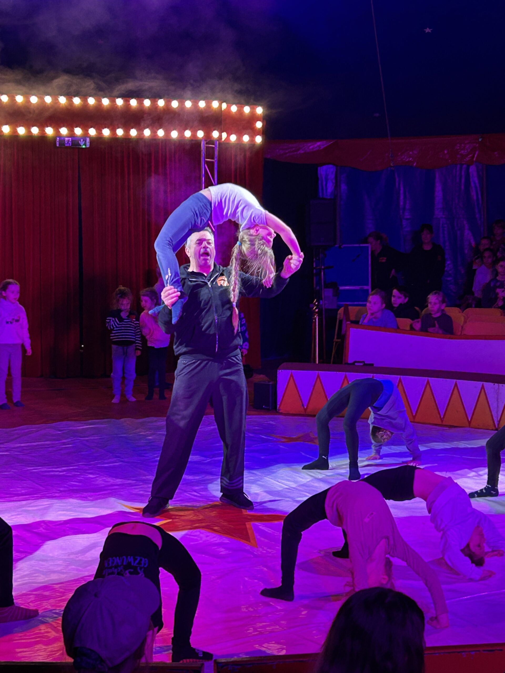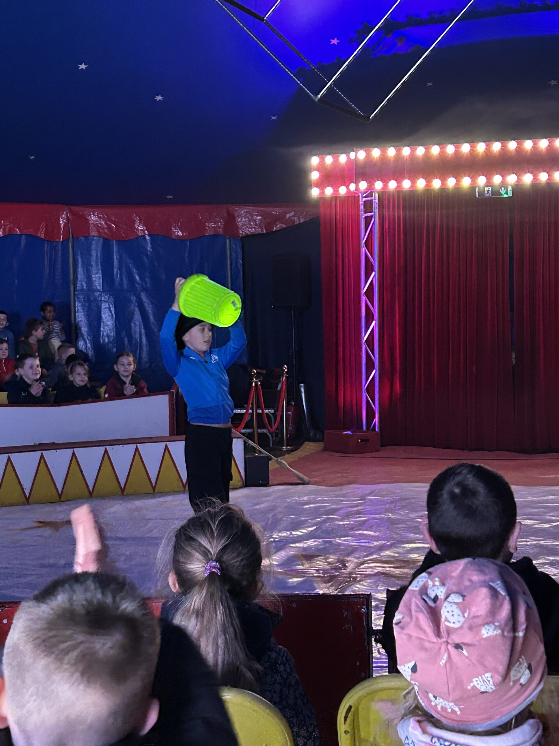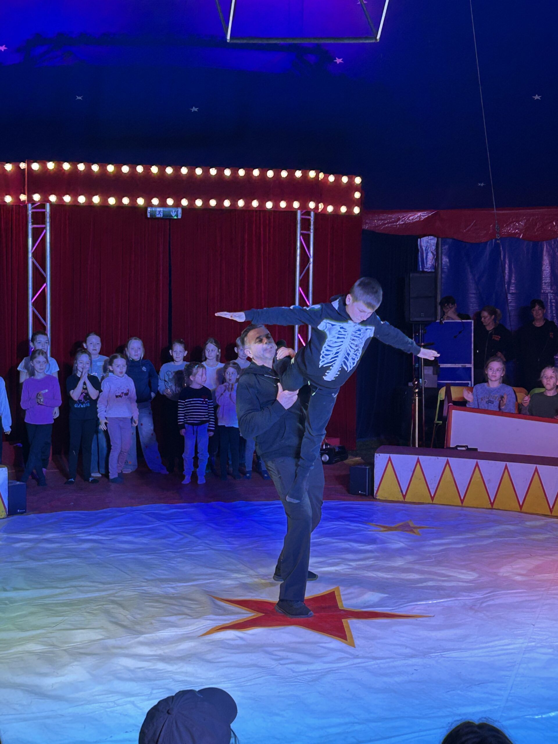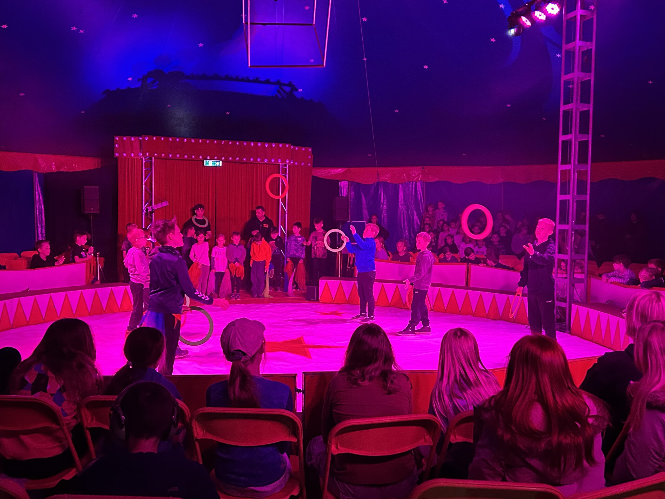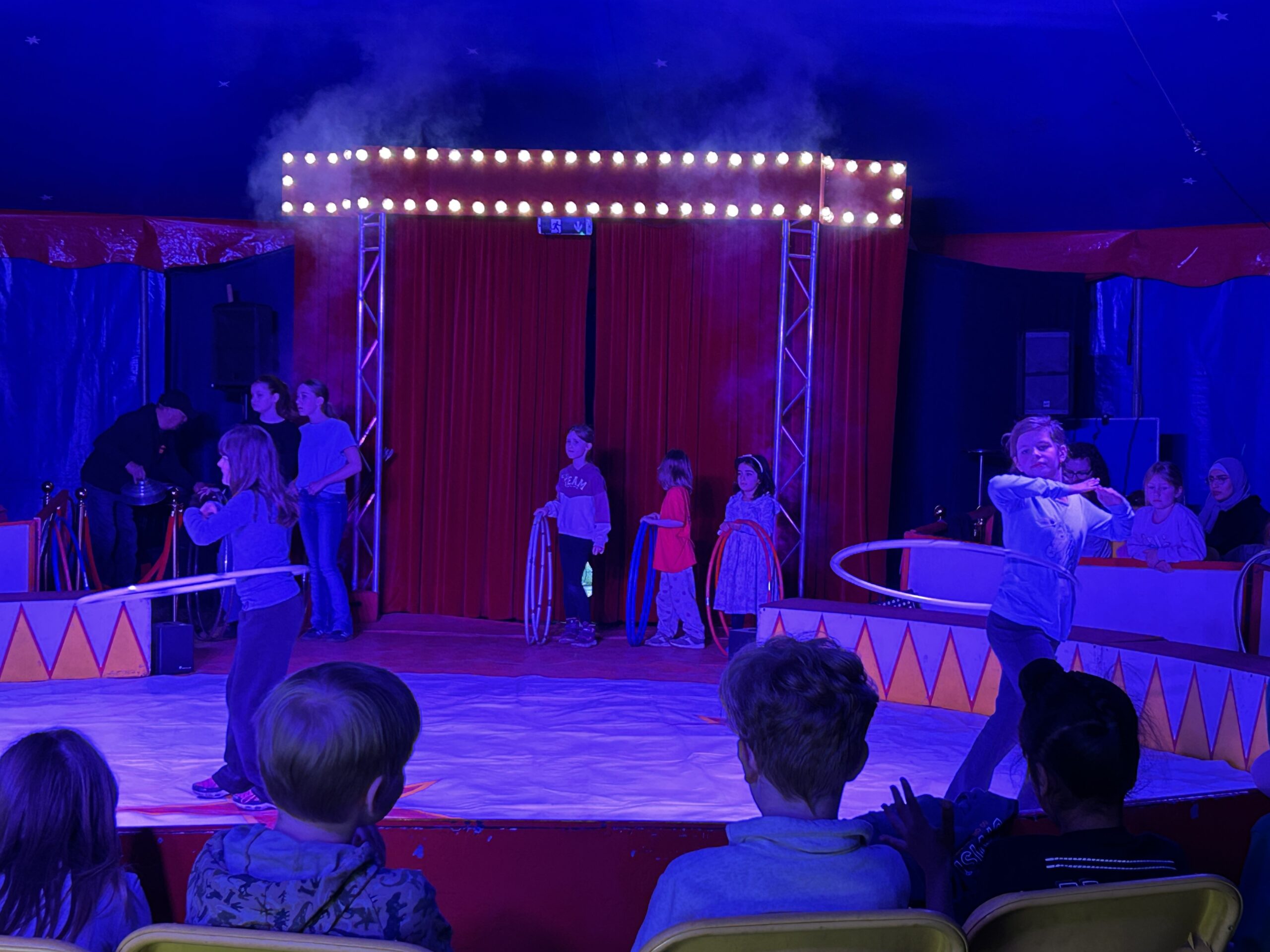 Am Montag sind wir mit allen Kindern der Grundschule und mit den Vorschulkindern aus den Kindertagesstätten in das Zirkuszelt gegangen. Dort begrüßte uns das Zirkusteam und stellte uns die Darbietungen vor. Bereits bei der Schnupperstunde konnten schon die ersten Kinder aktiv dabei sein.