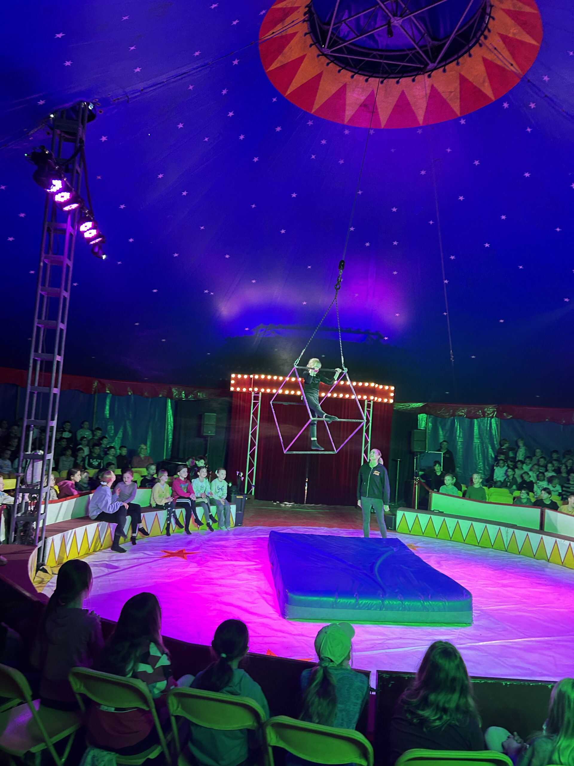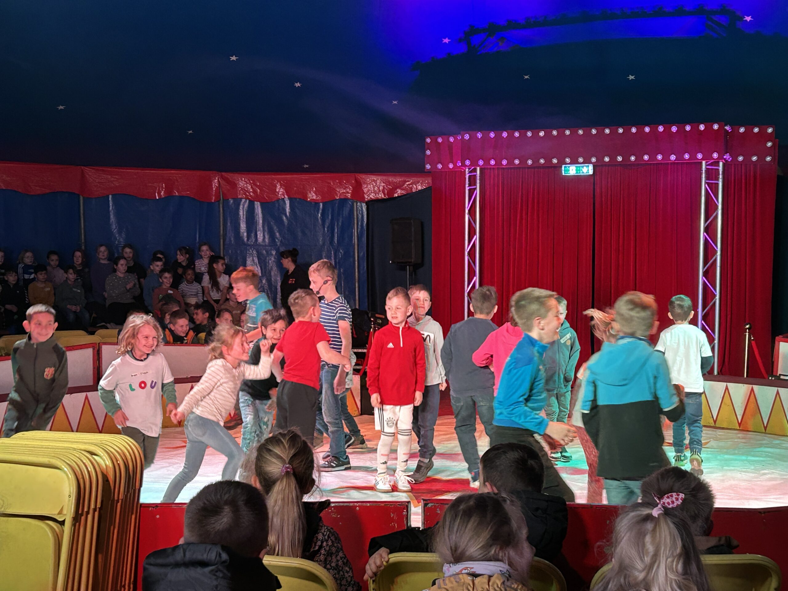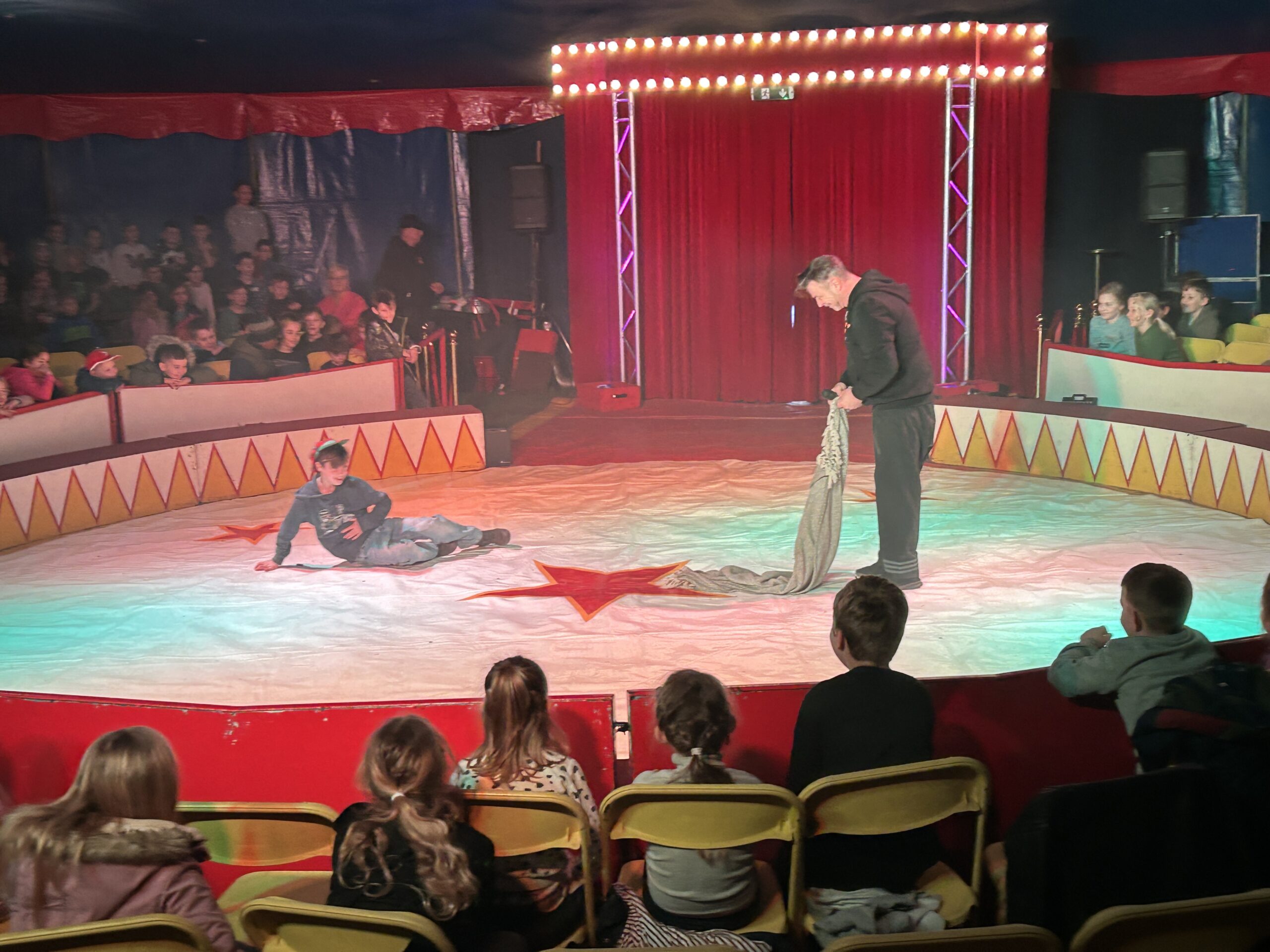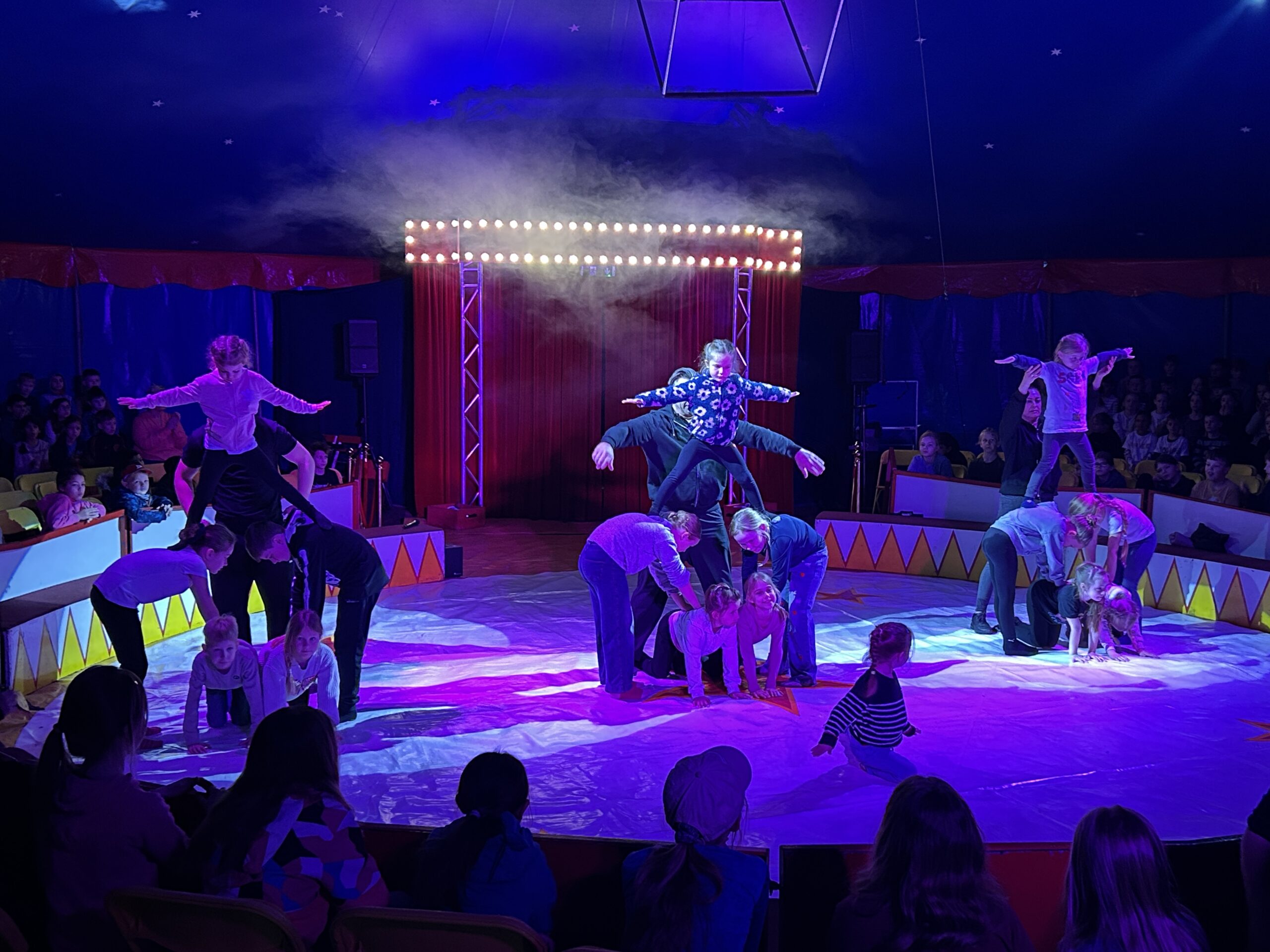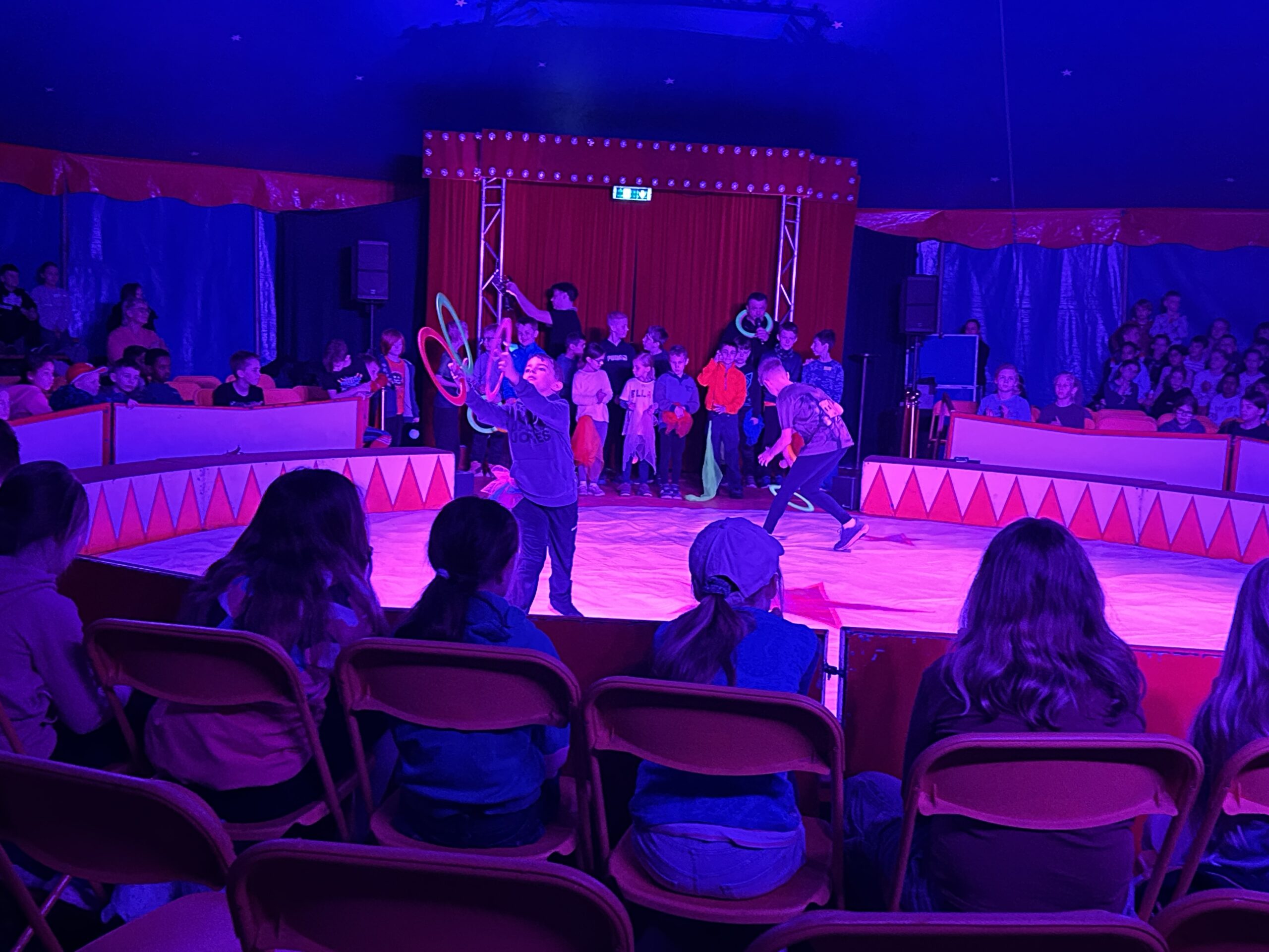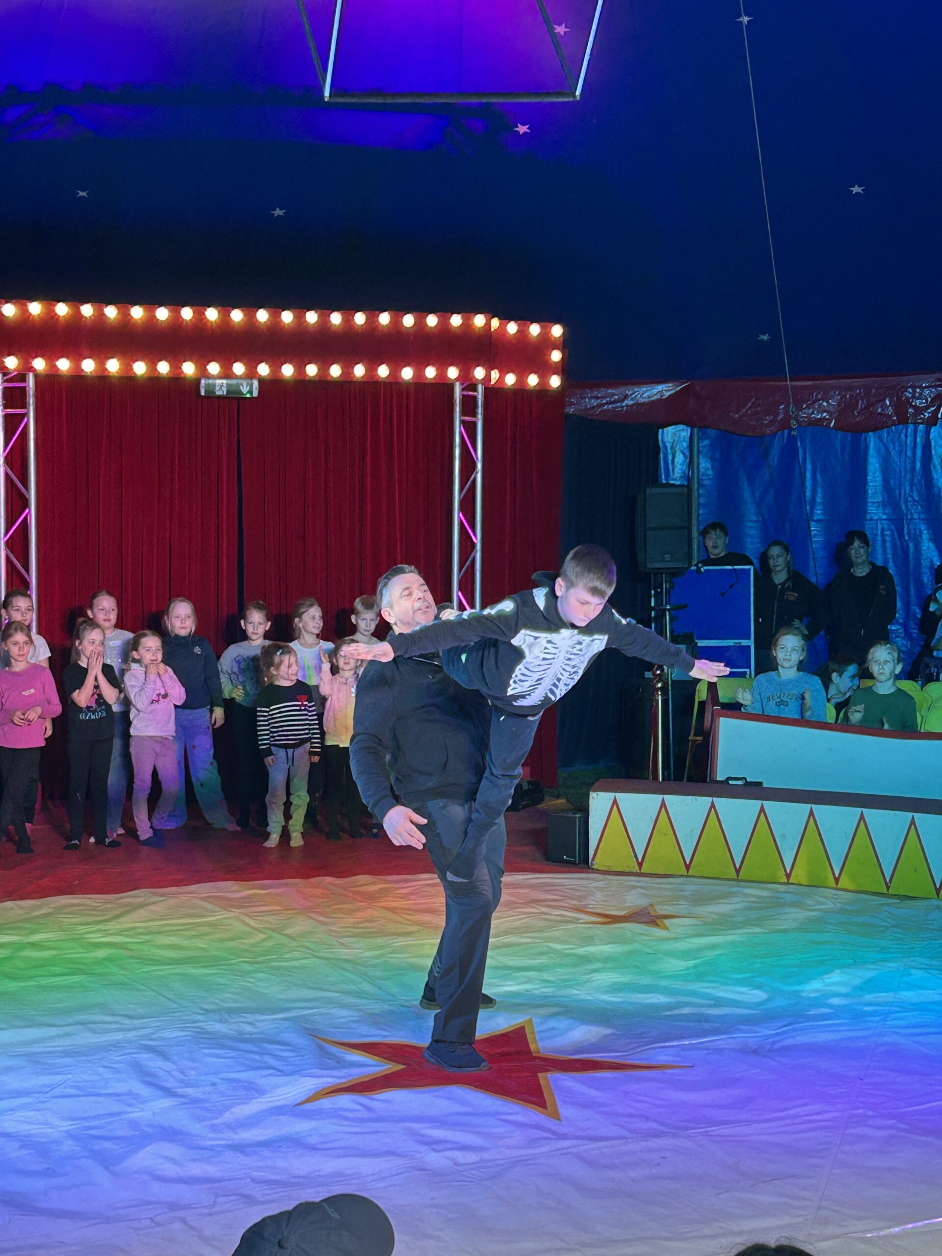 Am Montag sind wir mit allen Kindern der Grundschule und mit den Vorschulkindern aus den Kindertagesstätten in das Zirkuszelt gegangen. Dort begrüßte uns das Zirkusteam und stellte uns die Darbietungen vor. Bereits bei der Schnupperstunde konnten schon die ersten Kinder aktiv dabei sein.