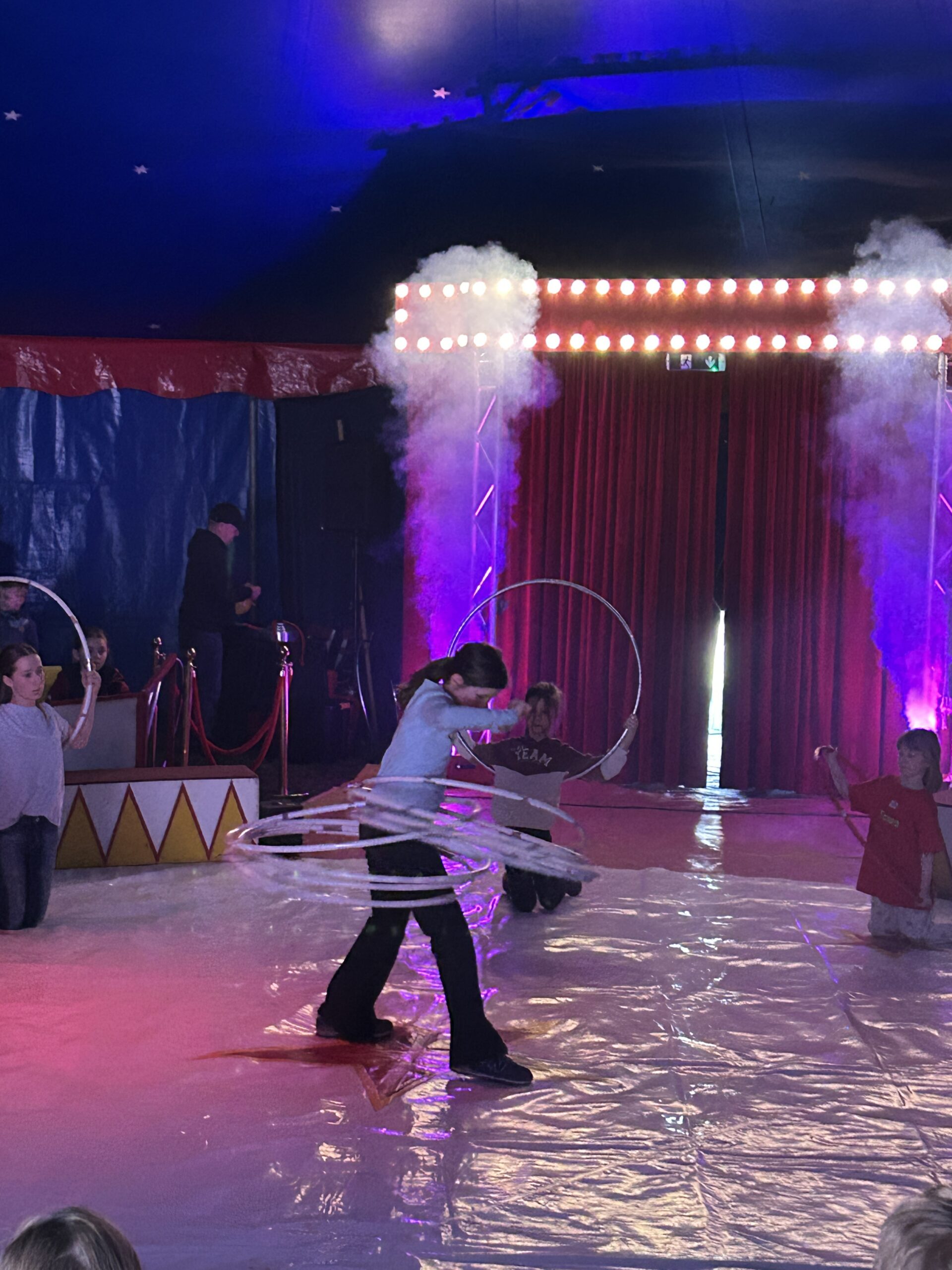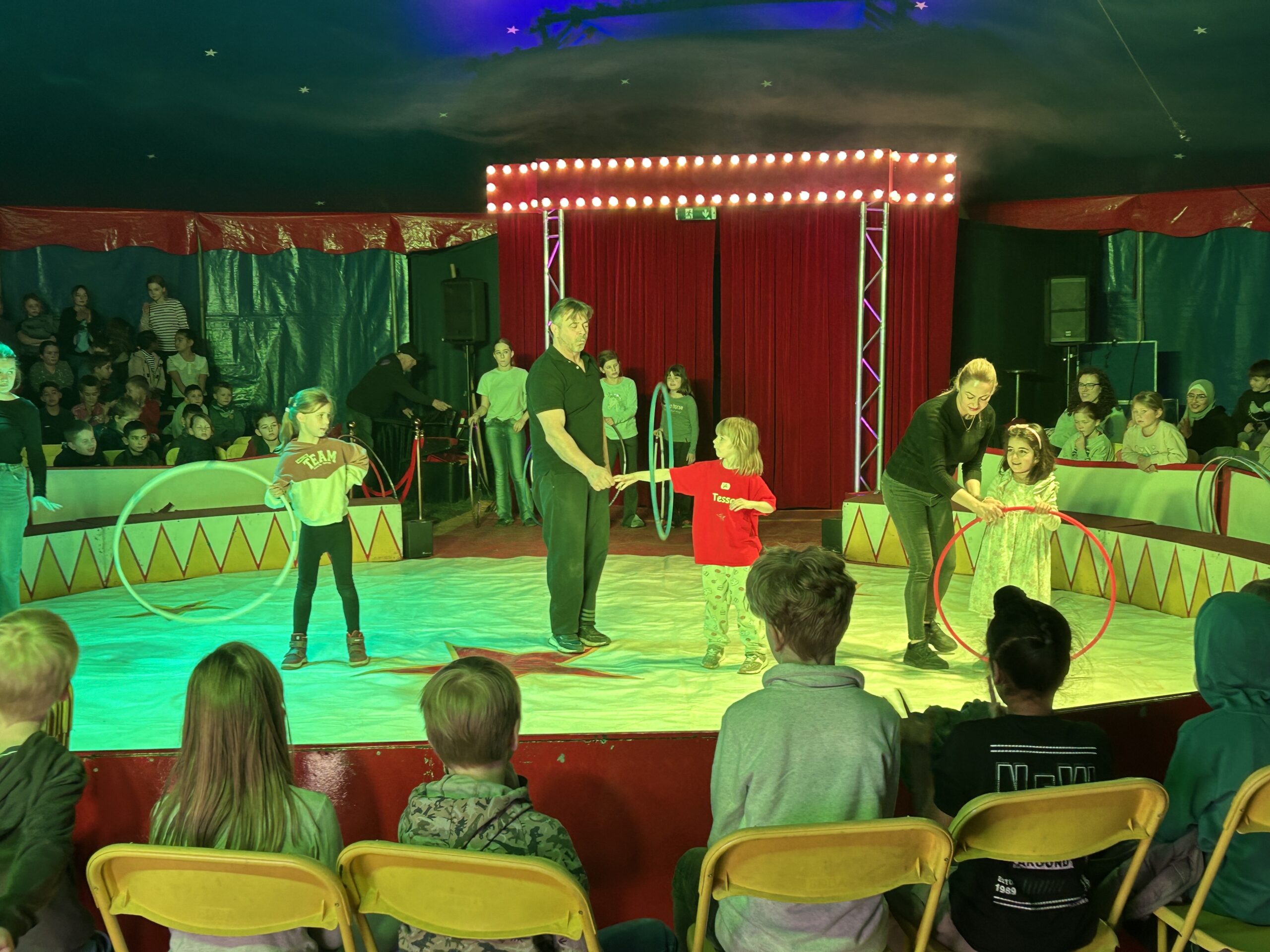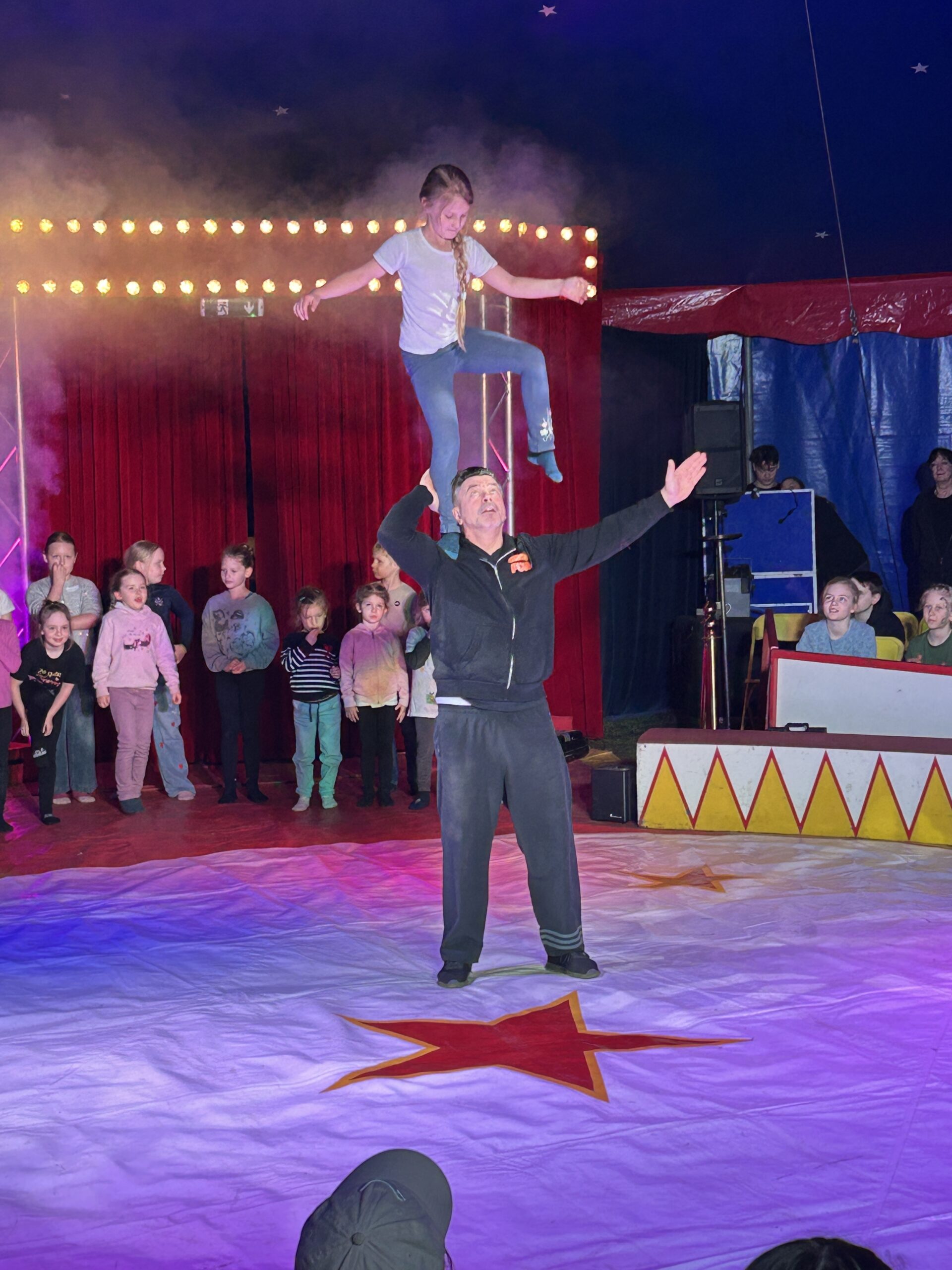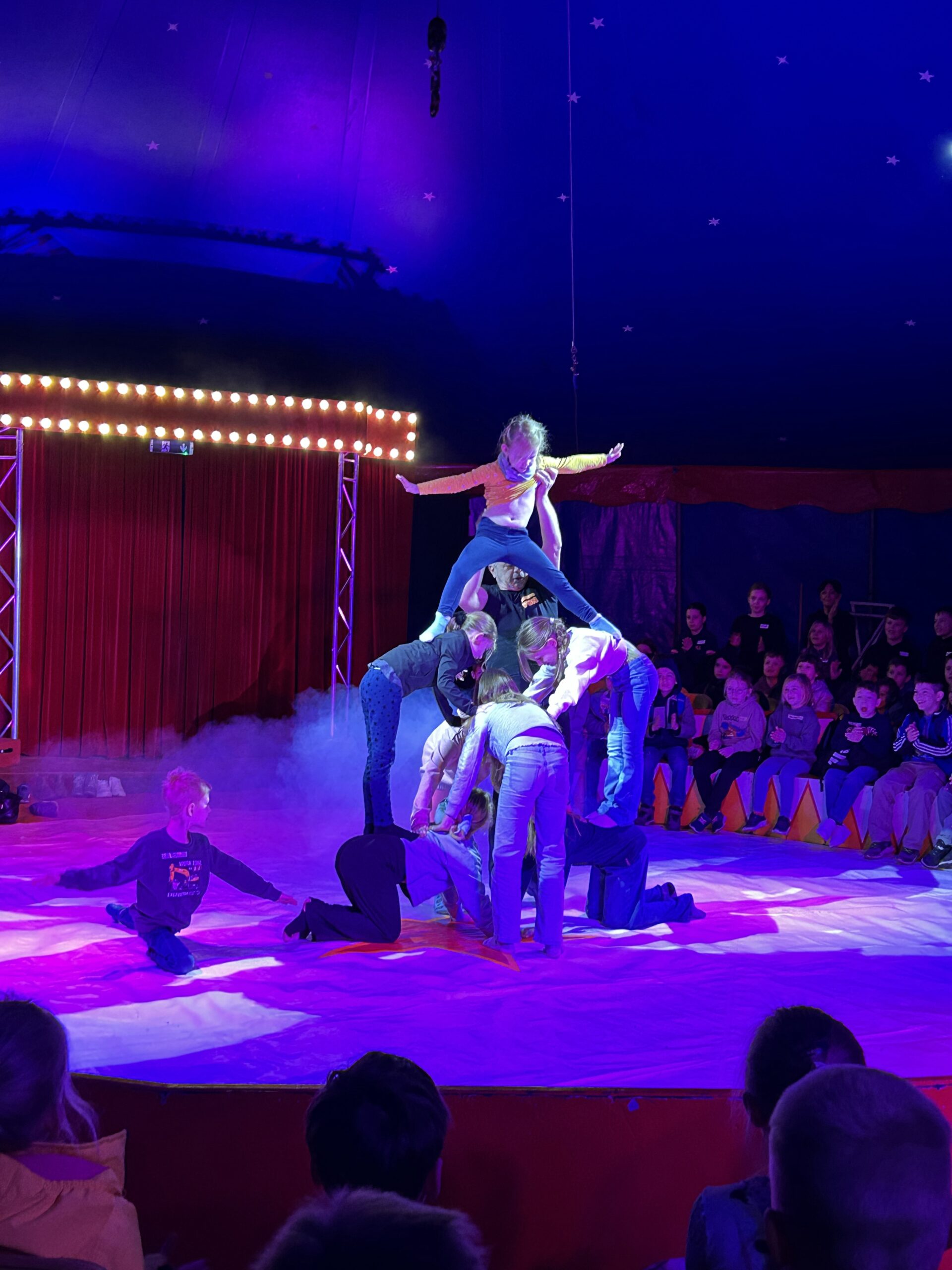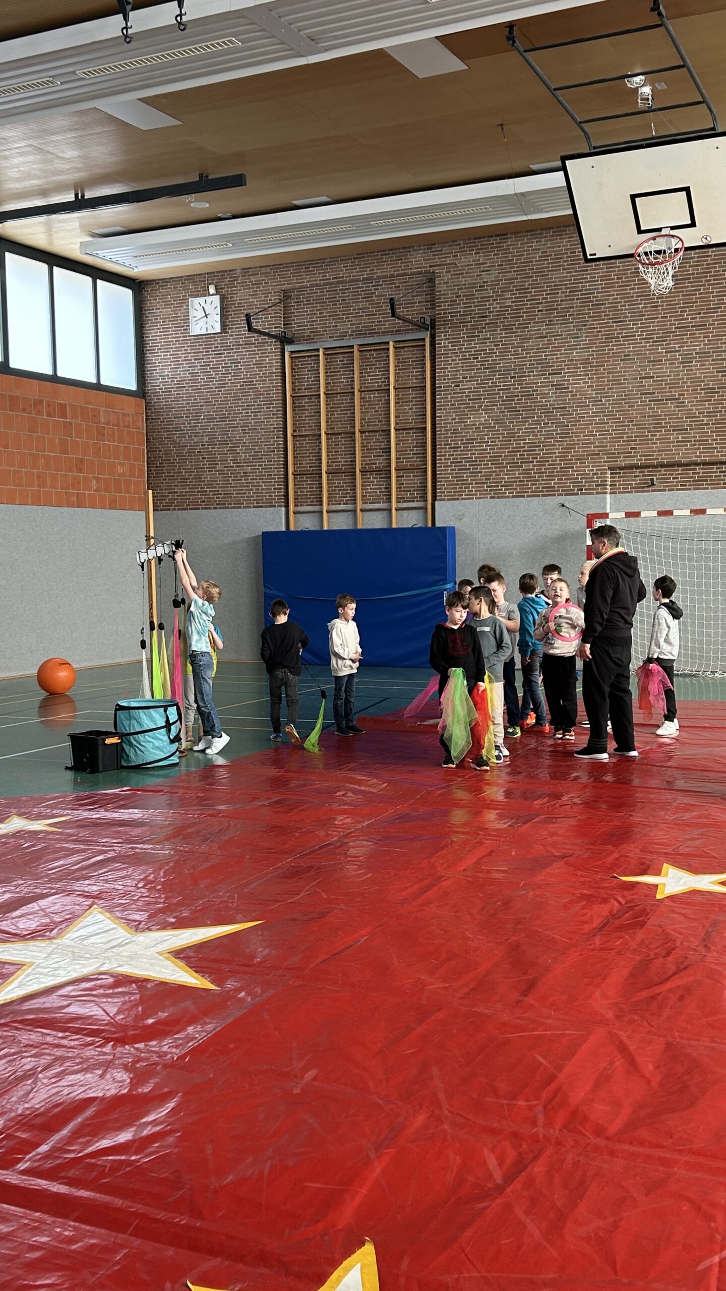 Am Montag sind wir mit allen Kindern der Grundschule und mit den Vorschulkindern aus den Kindertagesstätten in das Zirkuszelt gegangen. Dort begrüßte uns das Zirkusteam und stellte uns die Darbietungen vor. Bereits bei der Schnupperstunde konnten schon die ersten Kinder aktiv dabei sein.