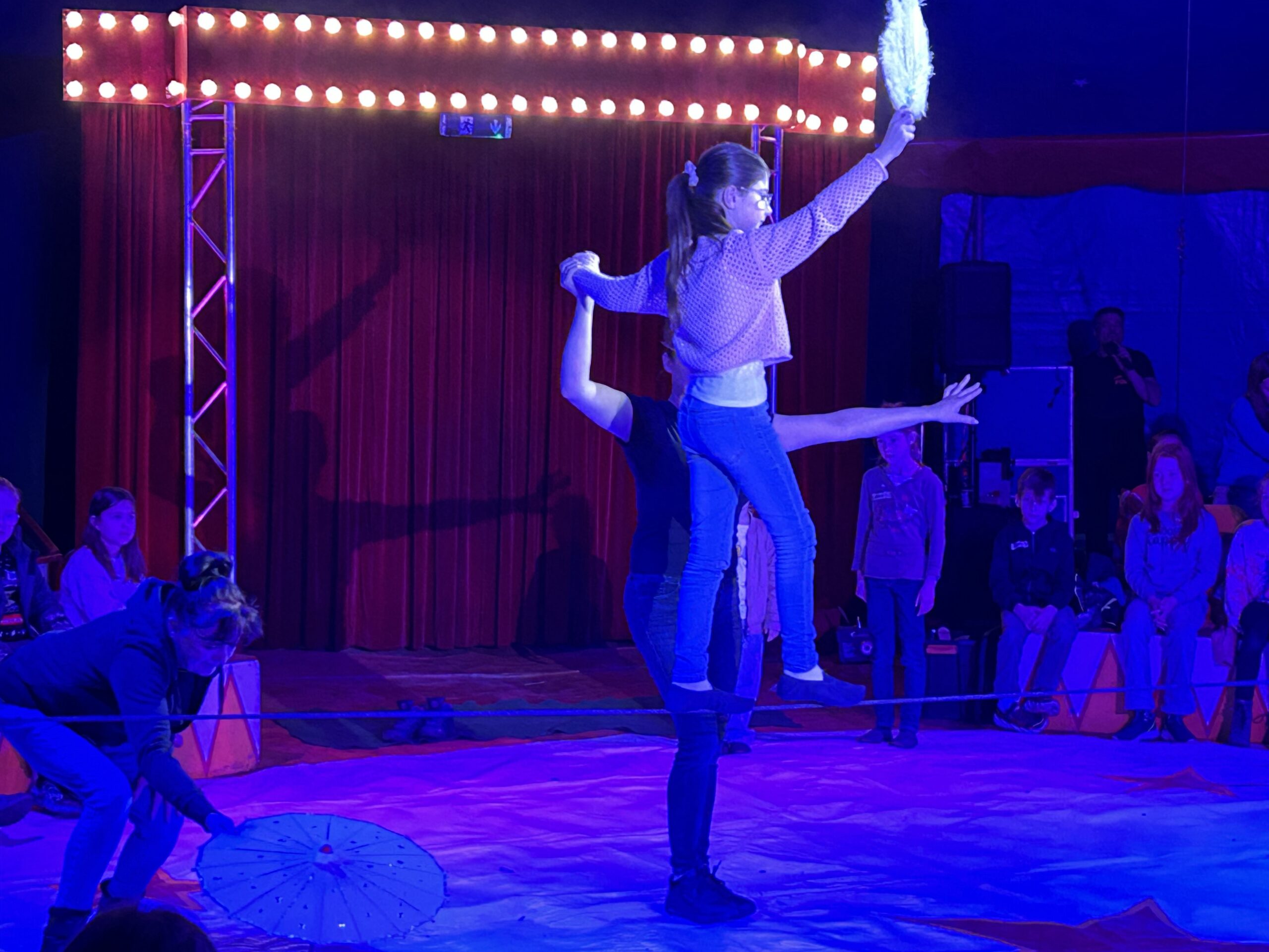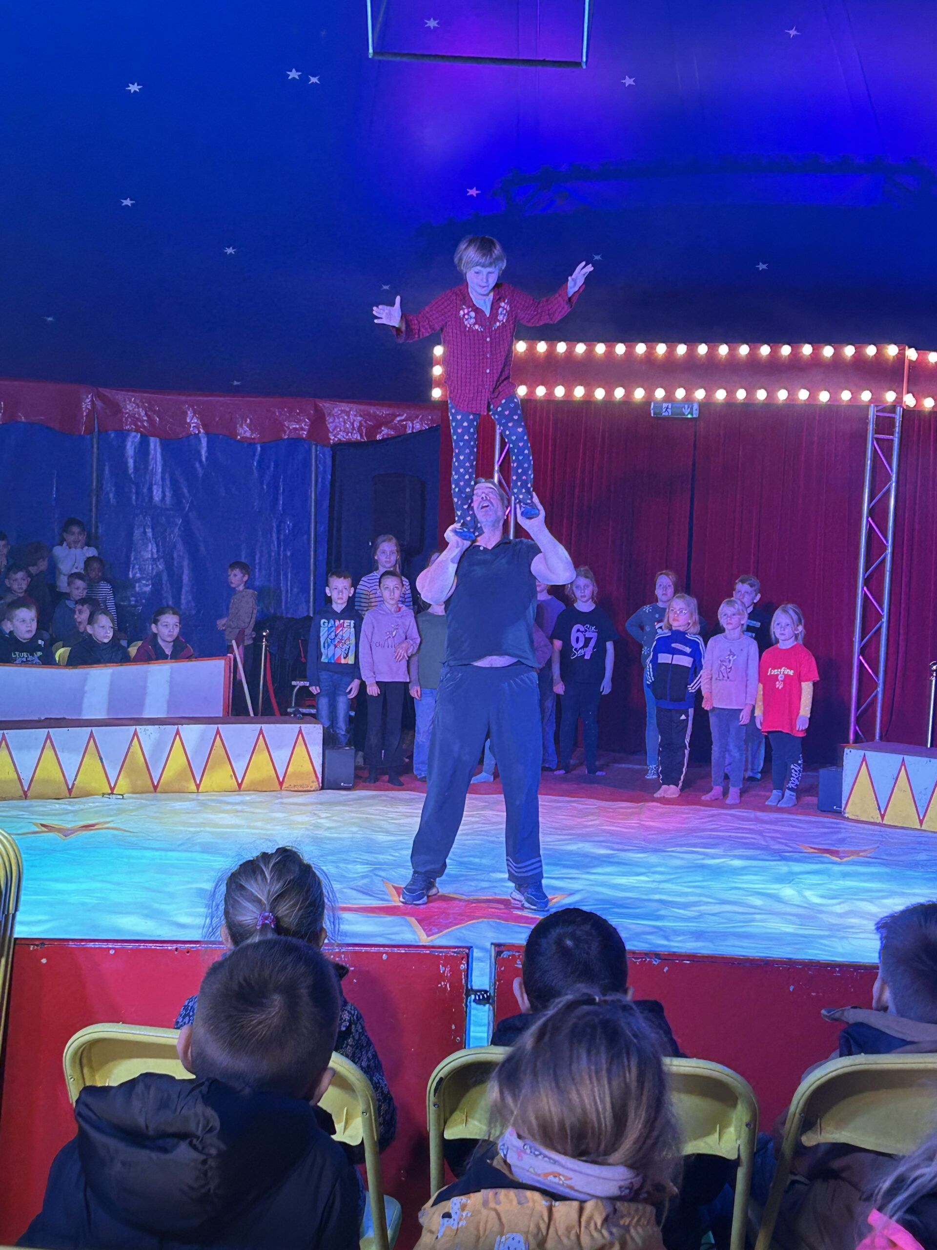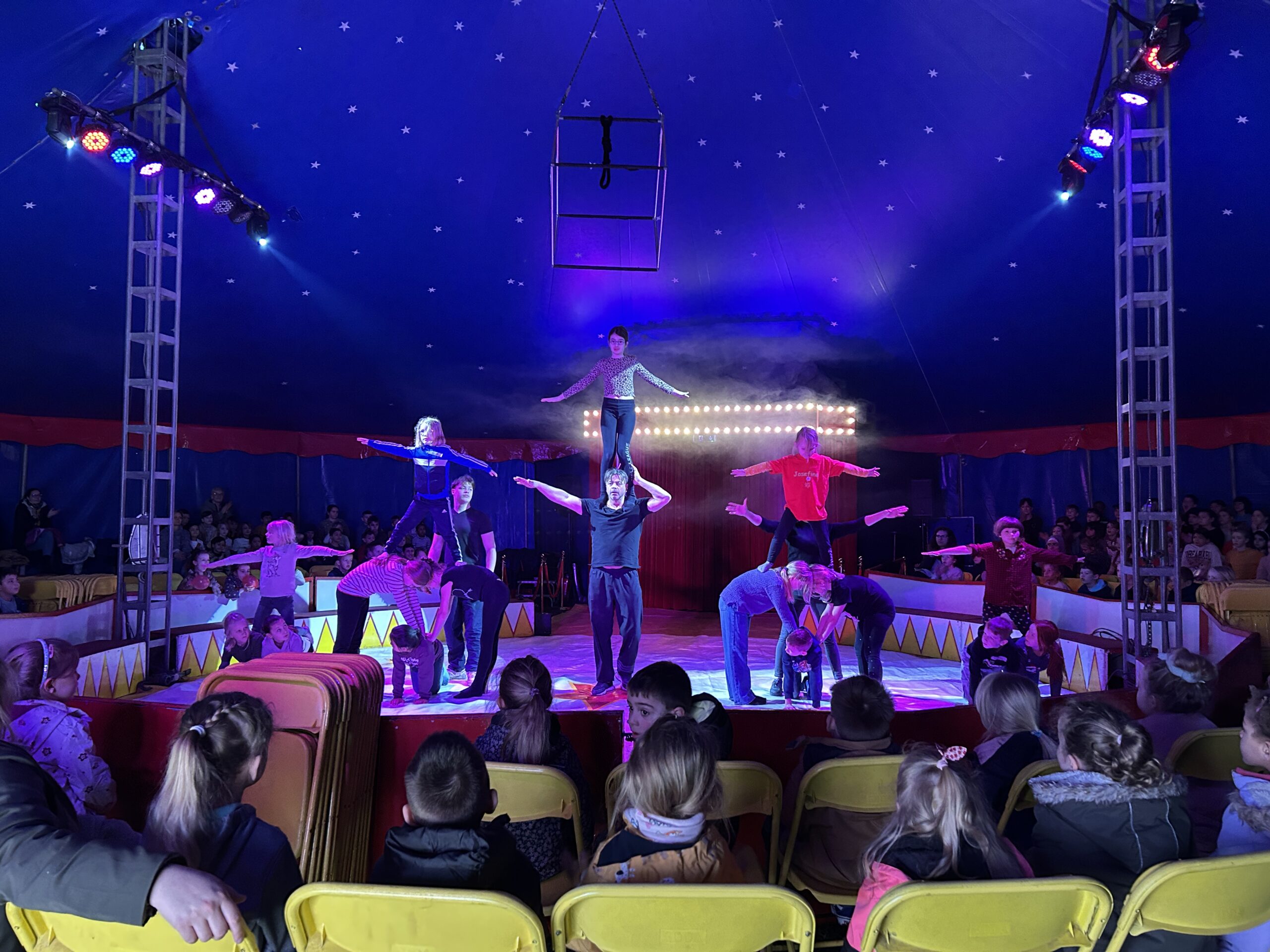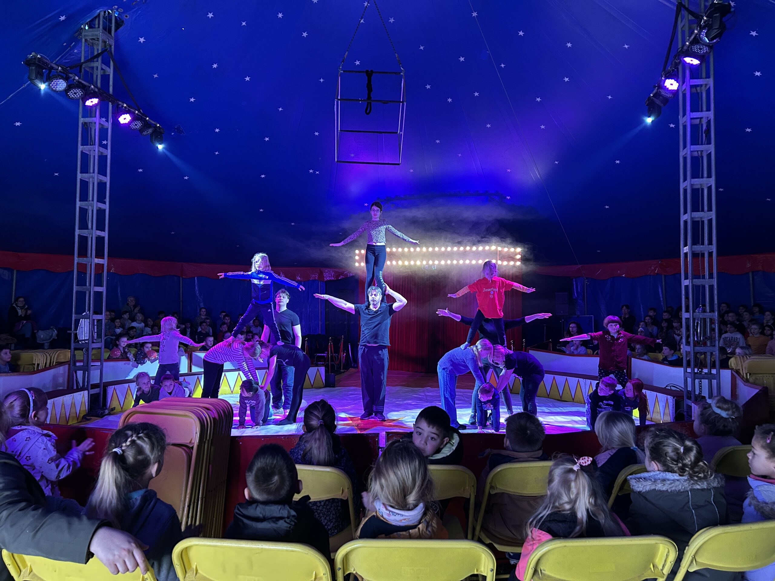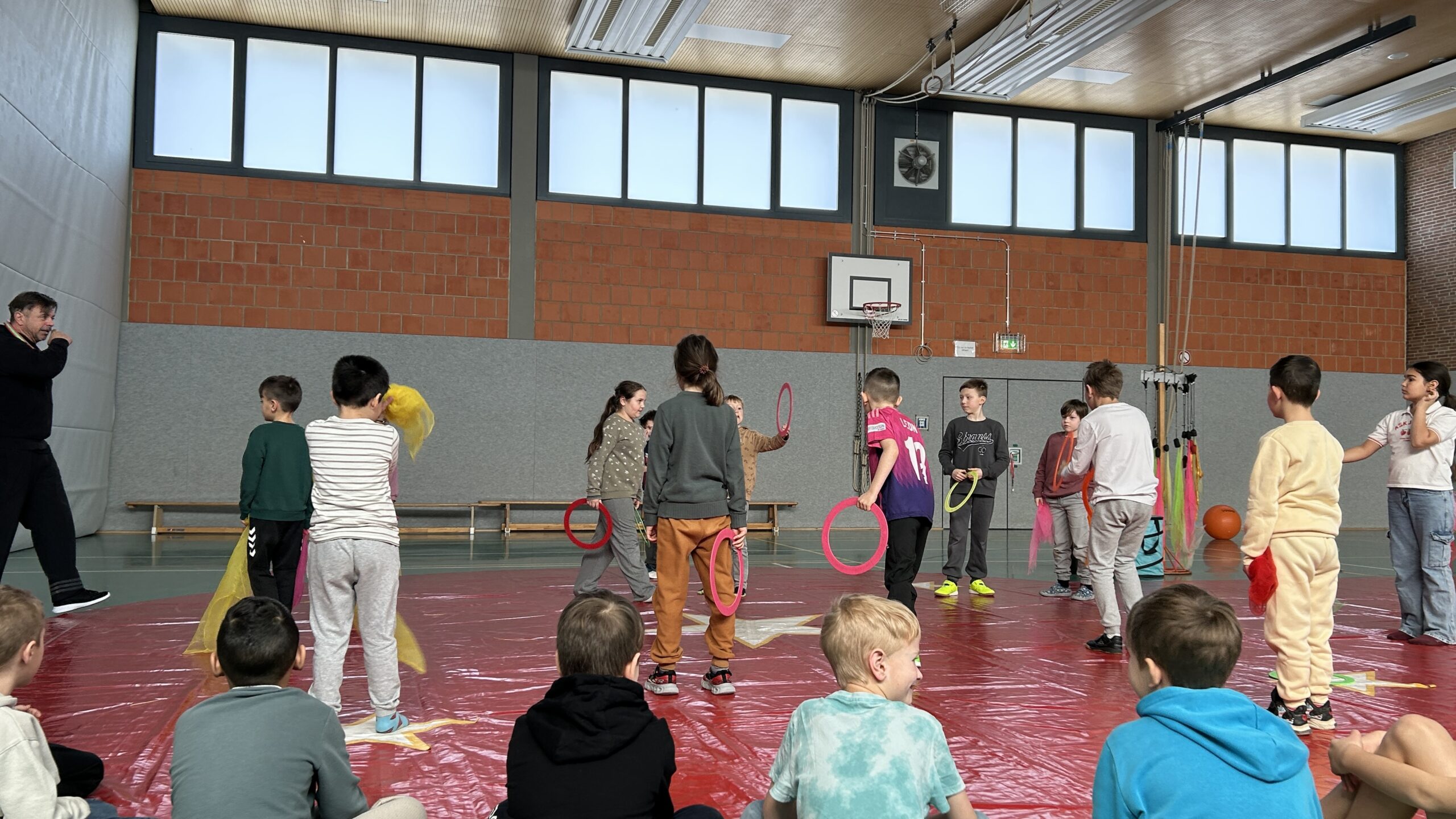 Am Montag sind wir mit allen Kindern der Grundschule und mit den Vorschulkindern aus den Kindertagesstätten in das Zirkuszelt gegangen. Dort begrüßte uns das Zirkusteam und stellte uns die Darbietungen vor. Bereits bei der Schnupperstunde konnten schon die ersten Kinder aktiv dabei sein.
