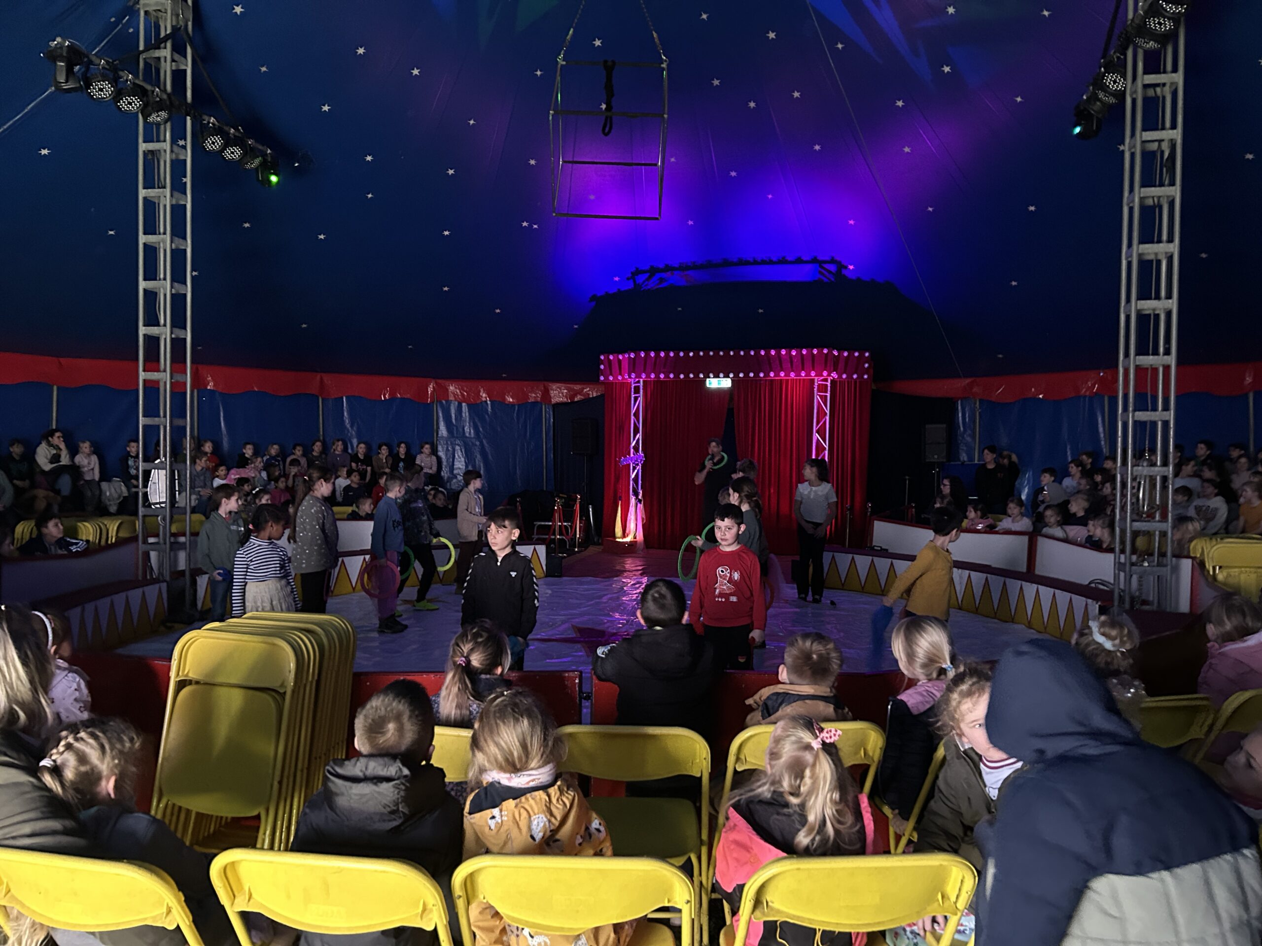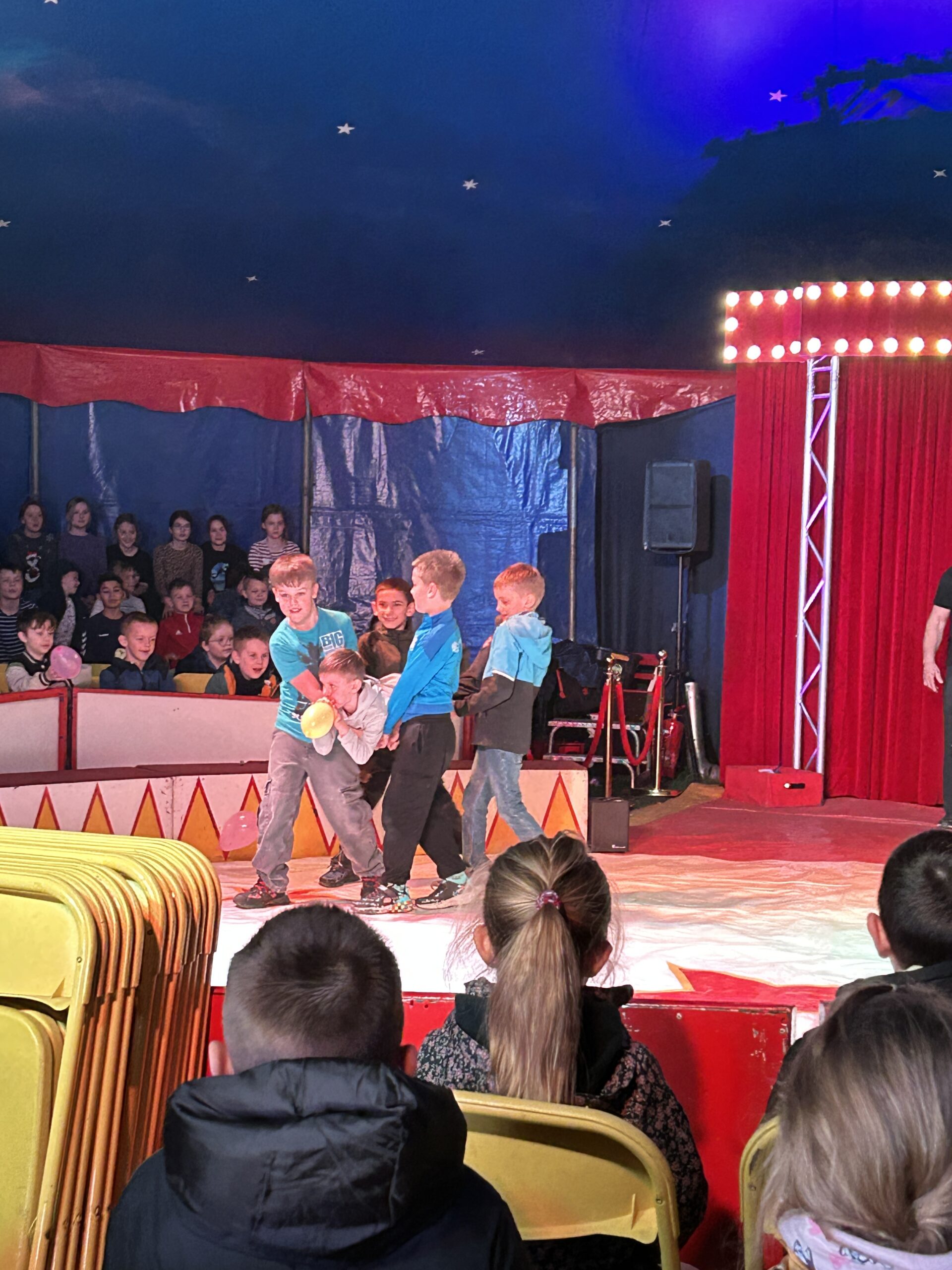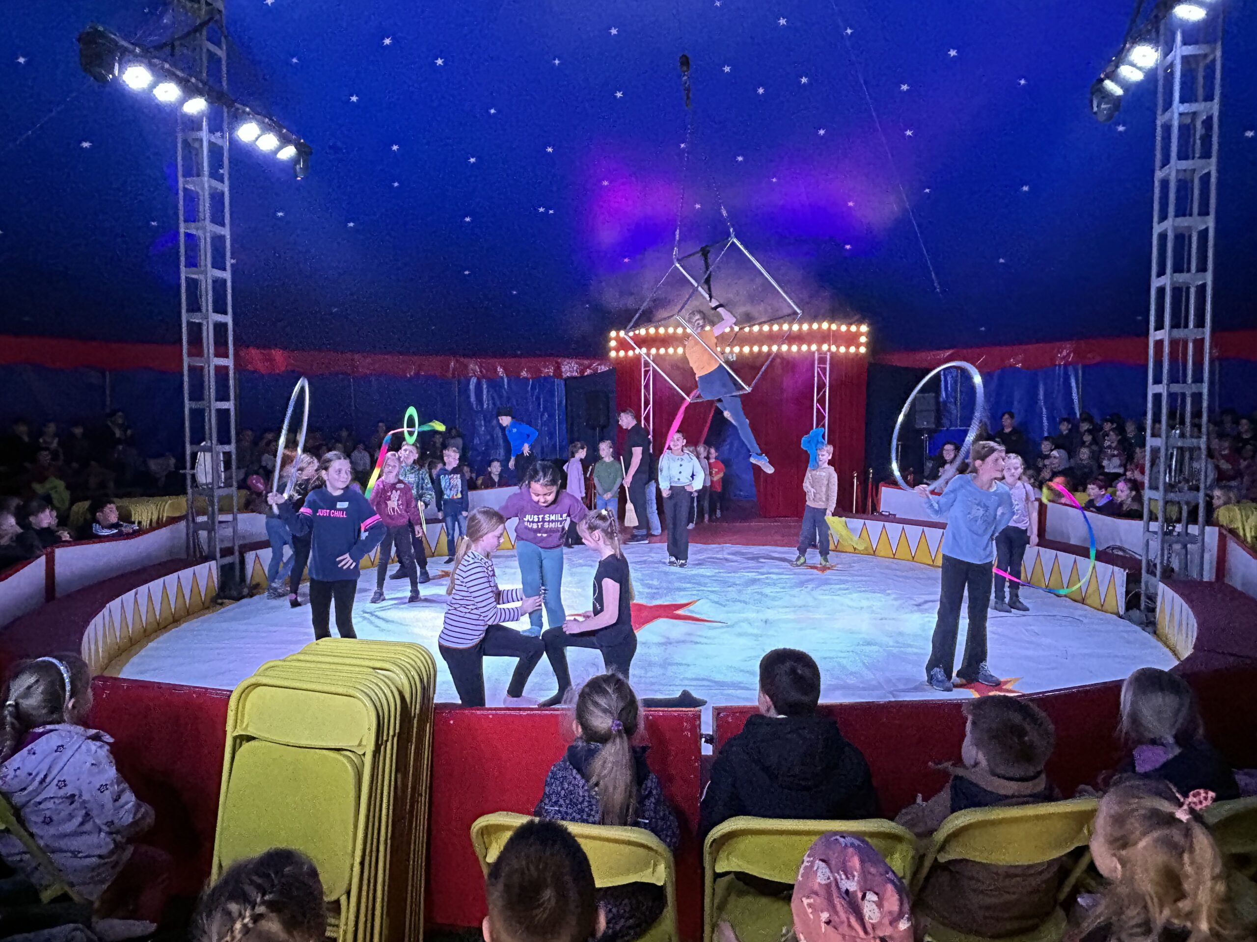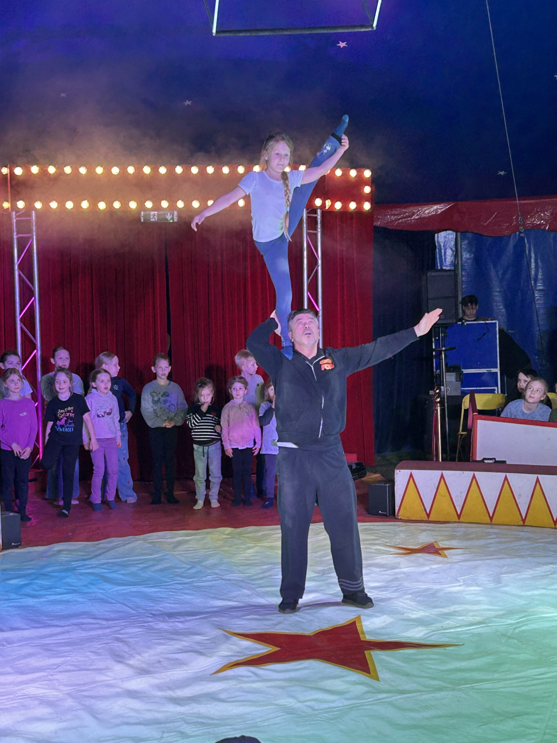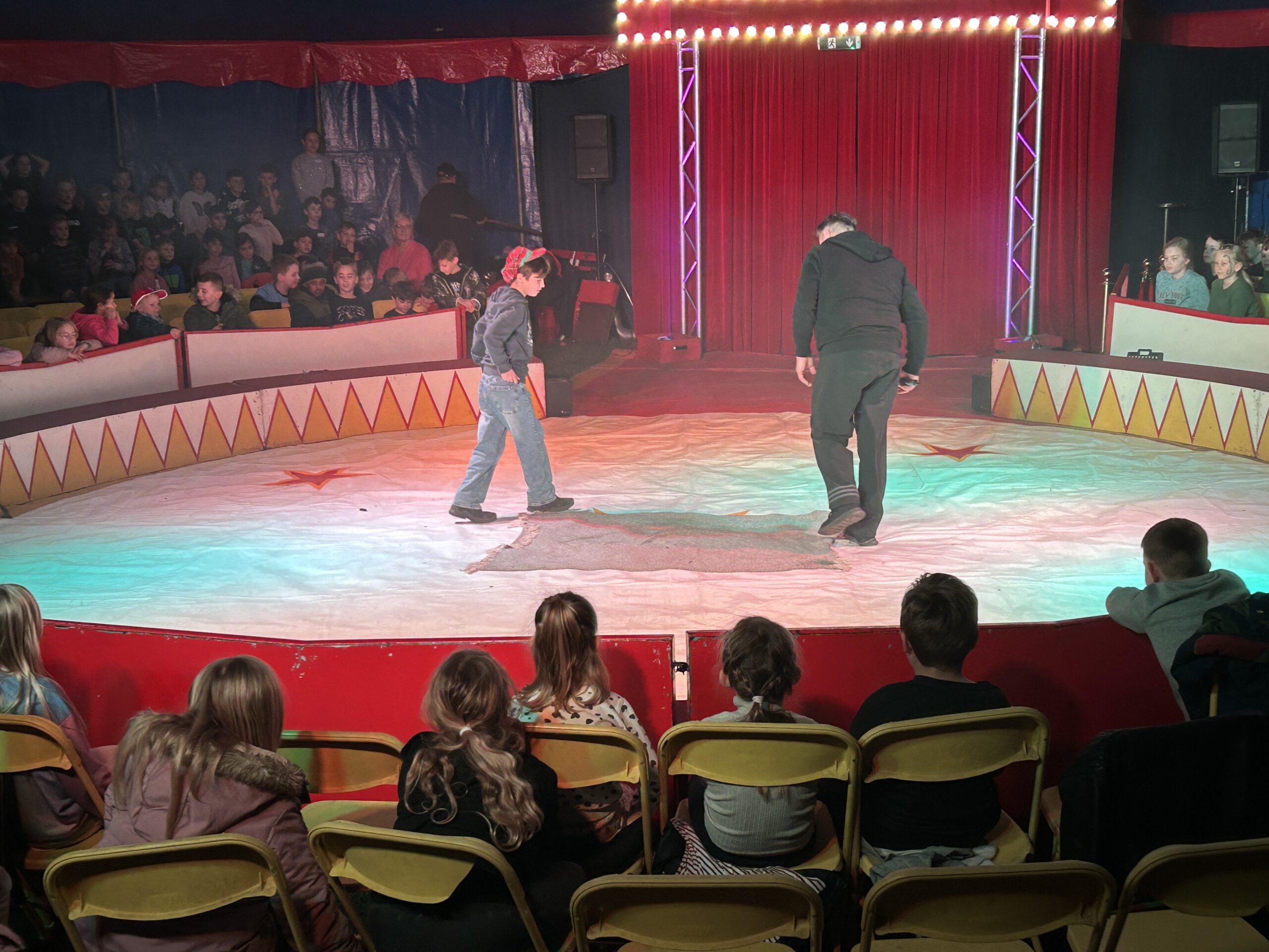 Am Montag sind wir mit allen Kindern der Grundschule und mit den Vorschulkindern aus den Kindertagesstätten in das Zirkuszelt gegangen. Dort begrüßte uns das Zirkusteam und stellte uns die Darbietungen vor. Bereits bei der Schnupperstunde konnten schon die ersten Kinder aktiv dabei sein.