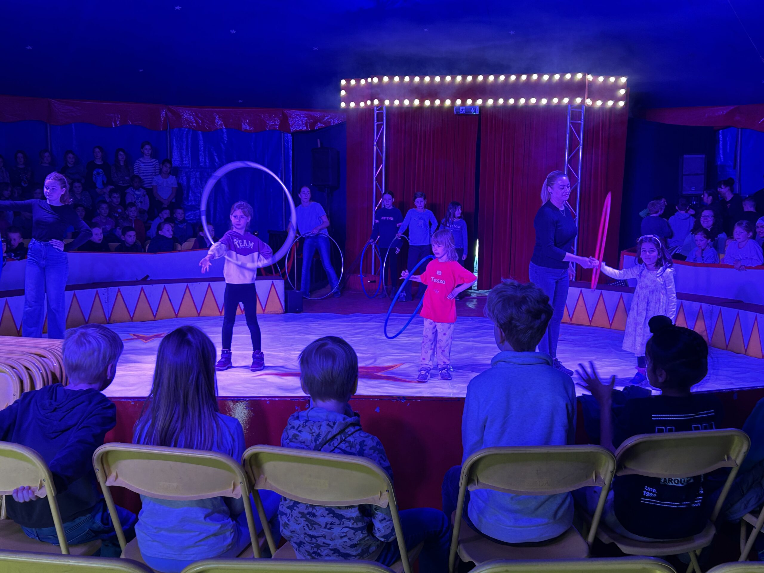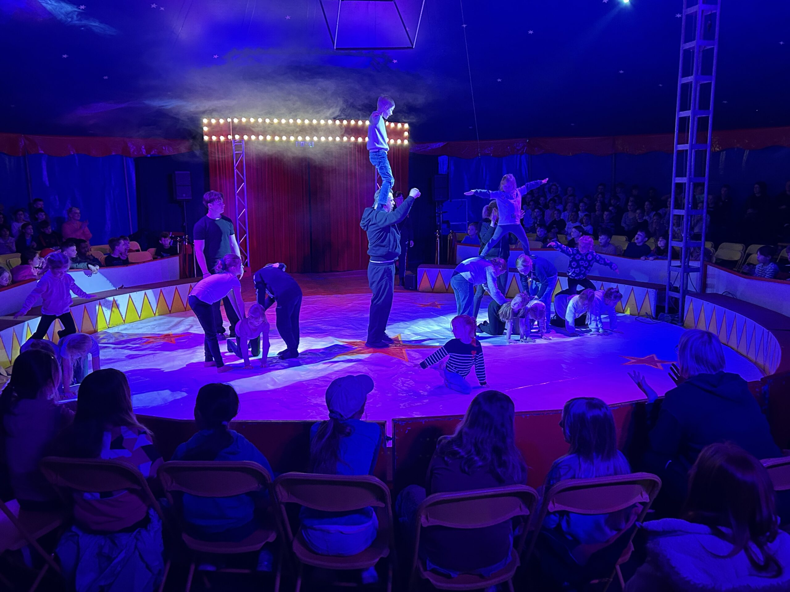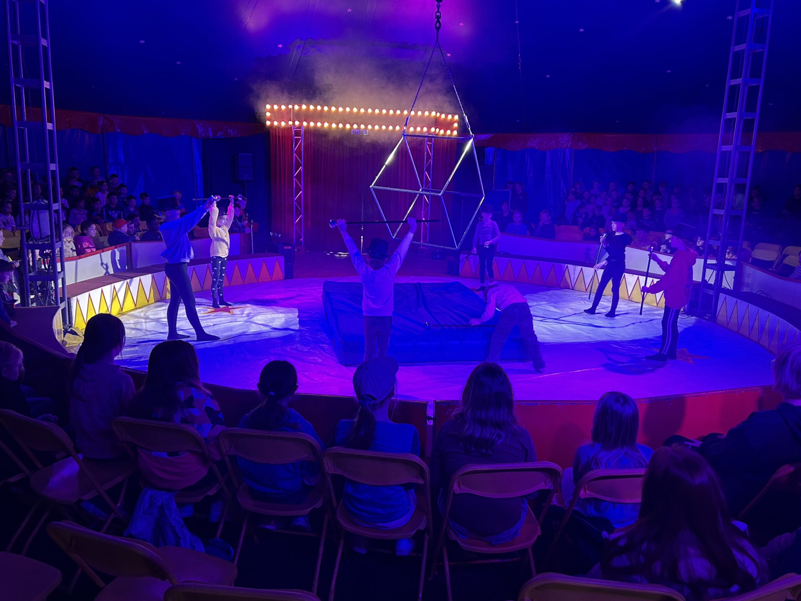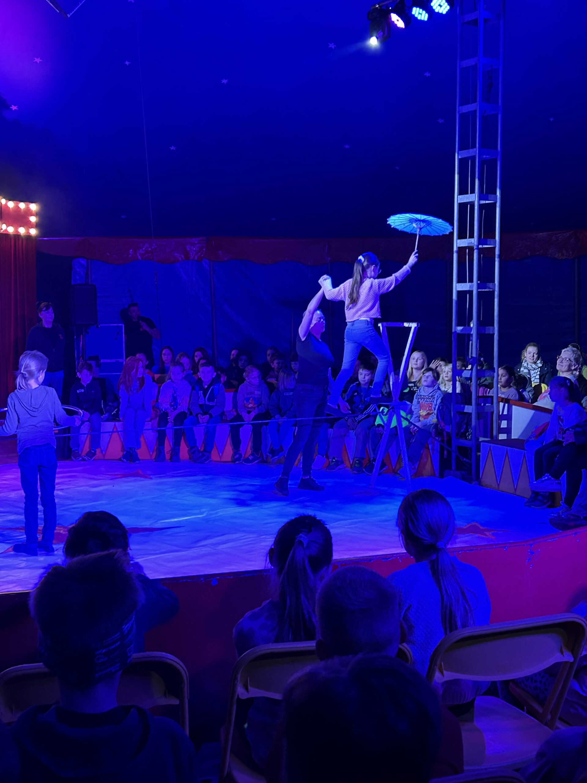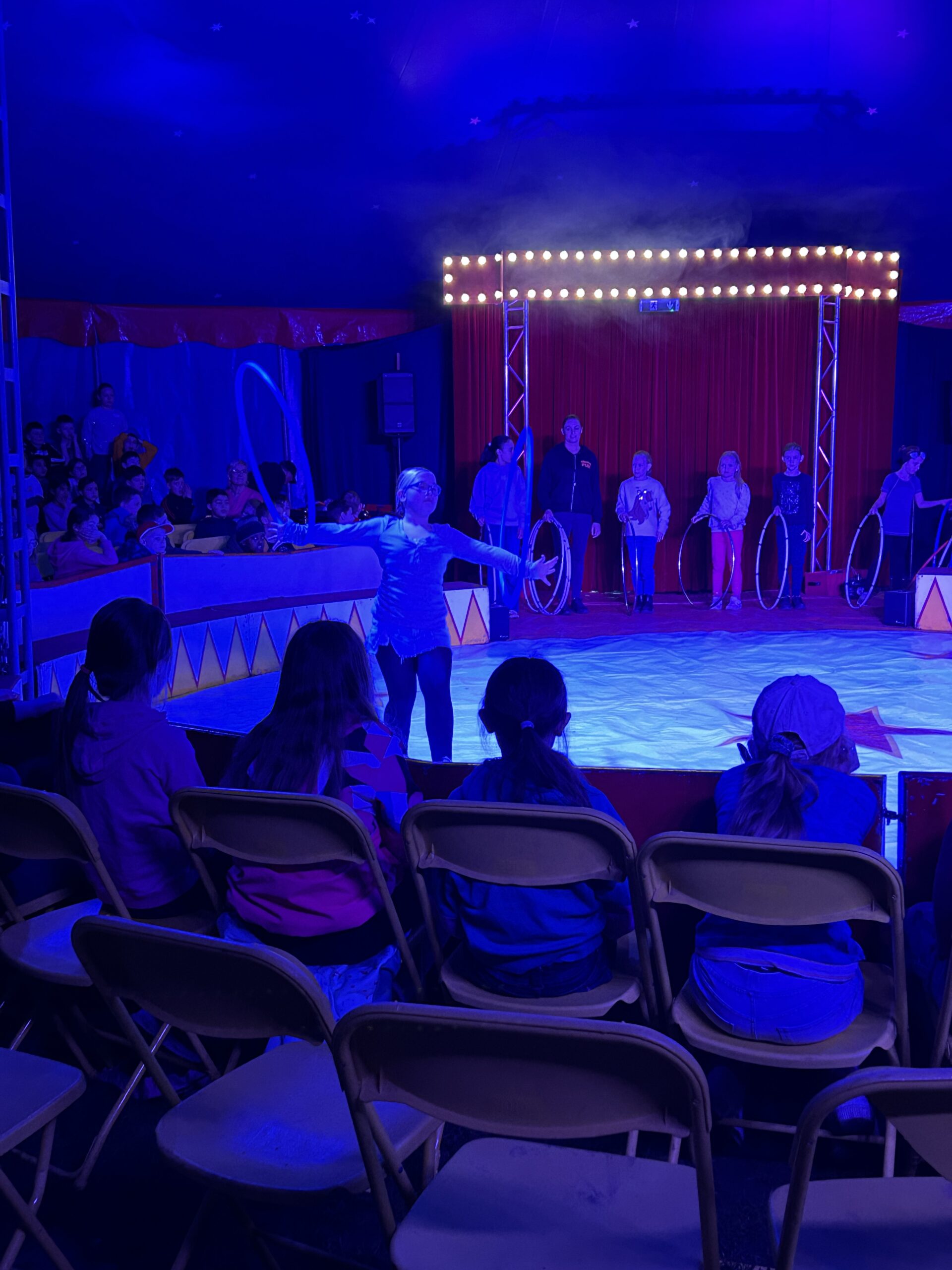 Am Montag sind wir mit allen Kindern der Grundschule und mit den Vorschulkindern aus den Kindertagesstätten in das Zirkuszelt gegangen. Dort begrüßte uns das Zirkusteam und stellte uns die Darbietungen vor. Bereits bei der Schnupperstunde konnten schon die ersten Kinder aktiv dabei sein.