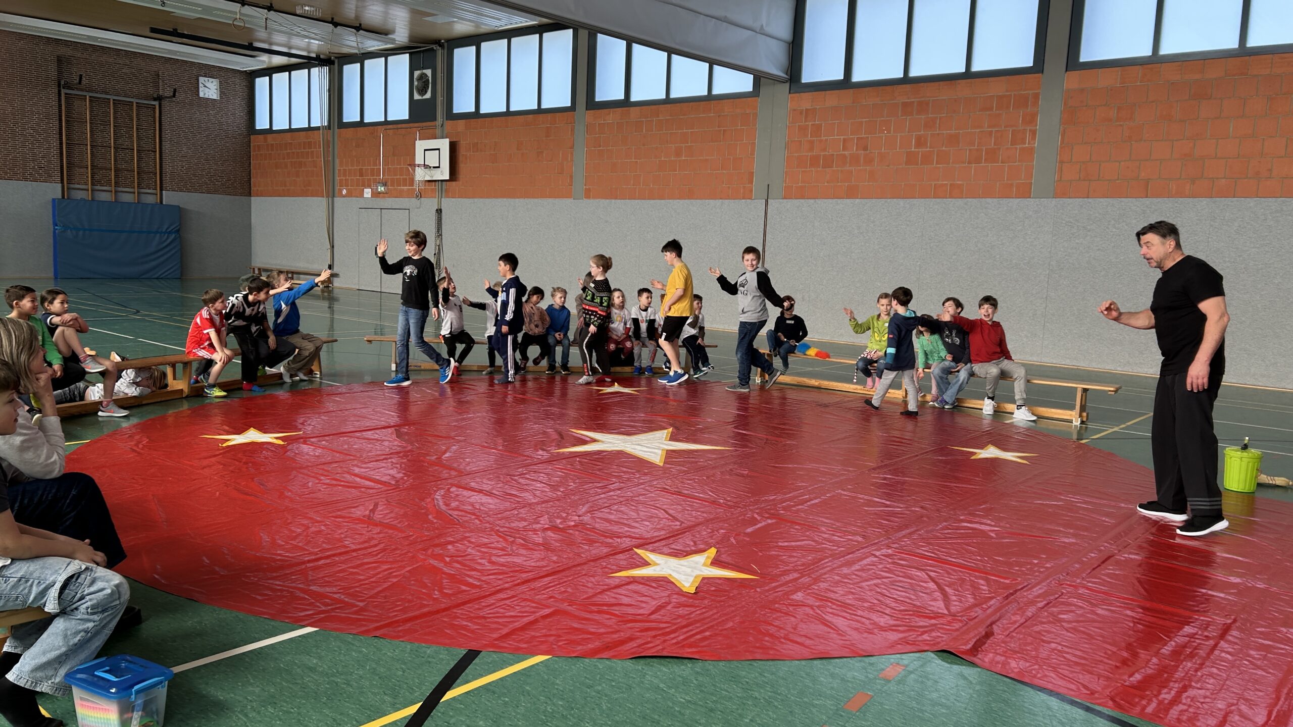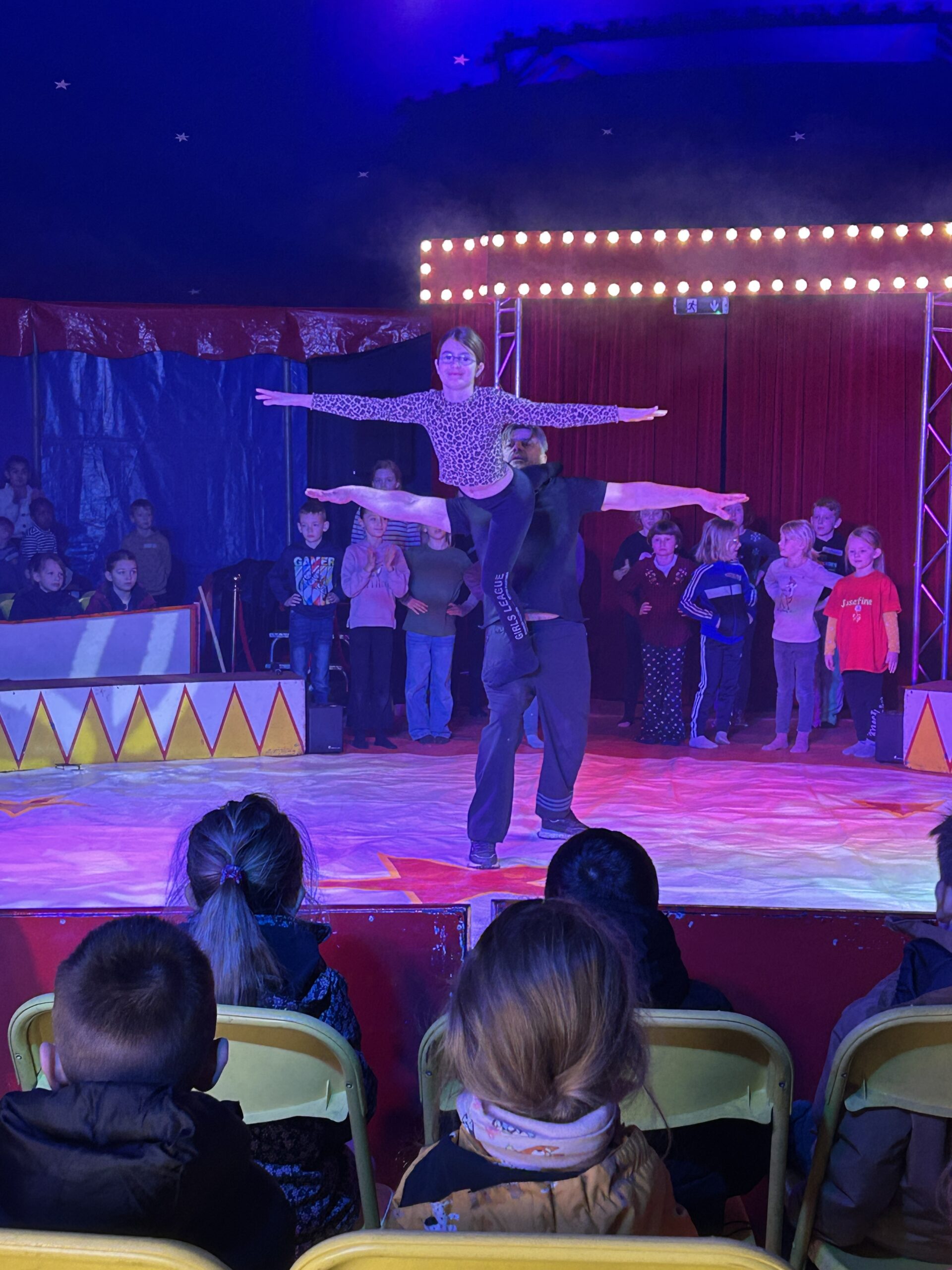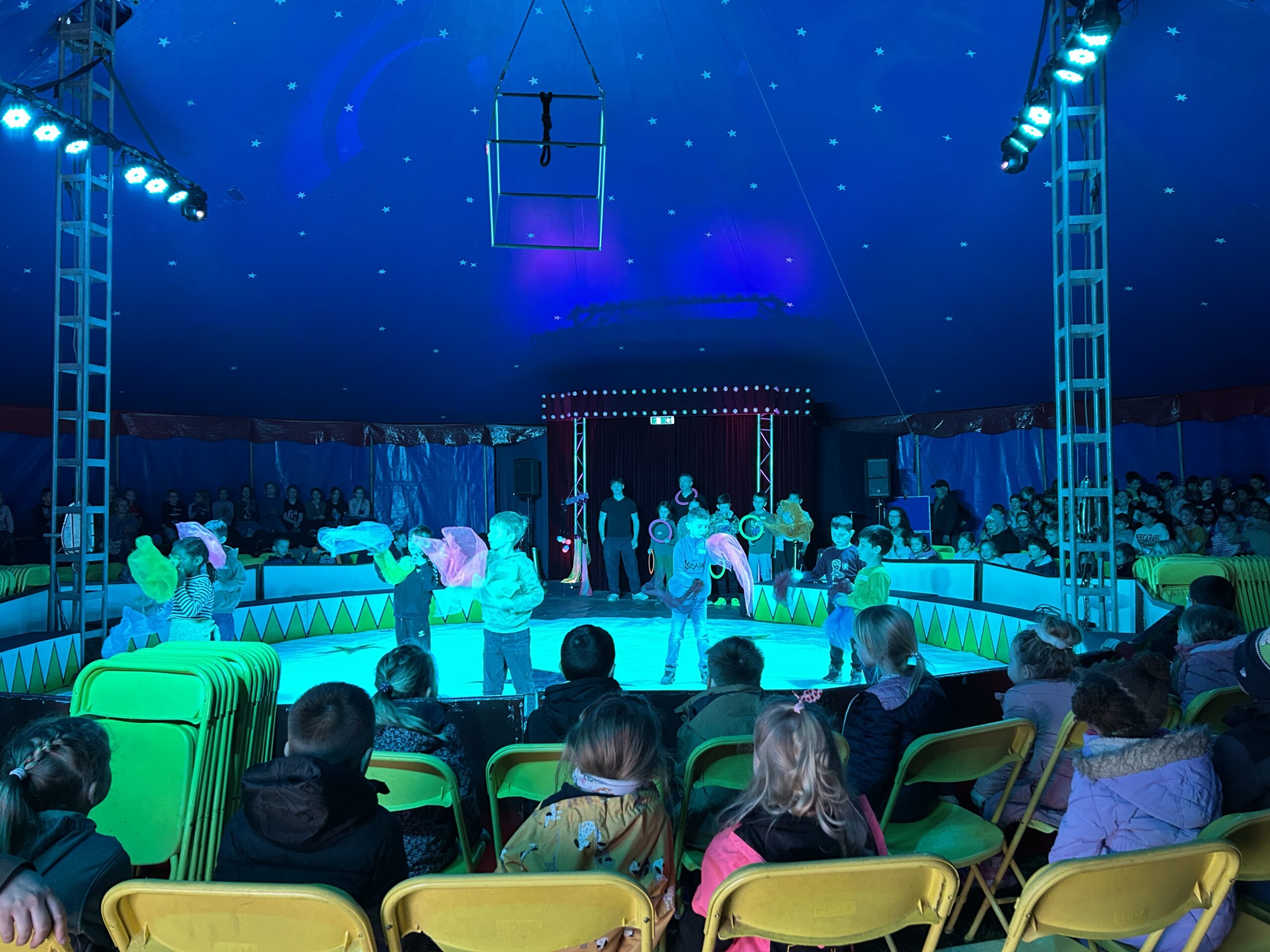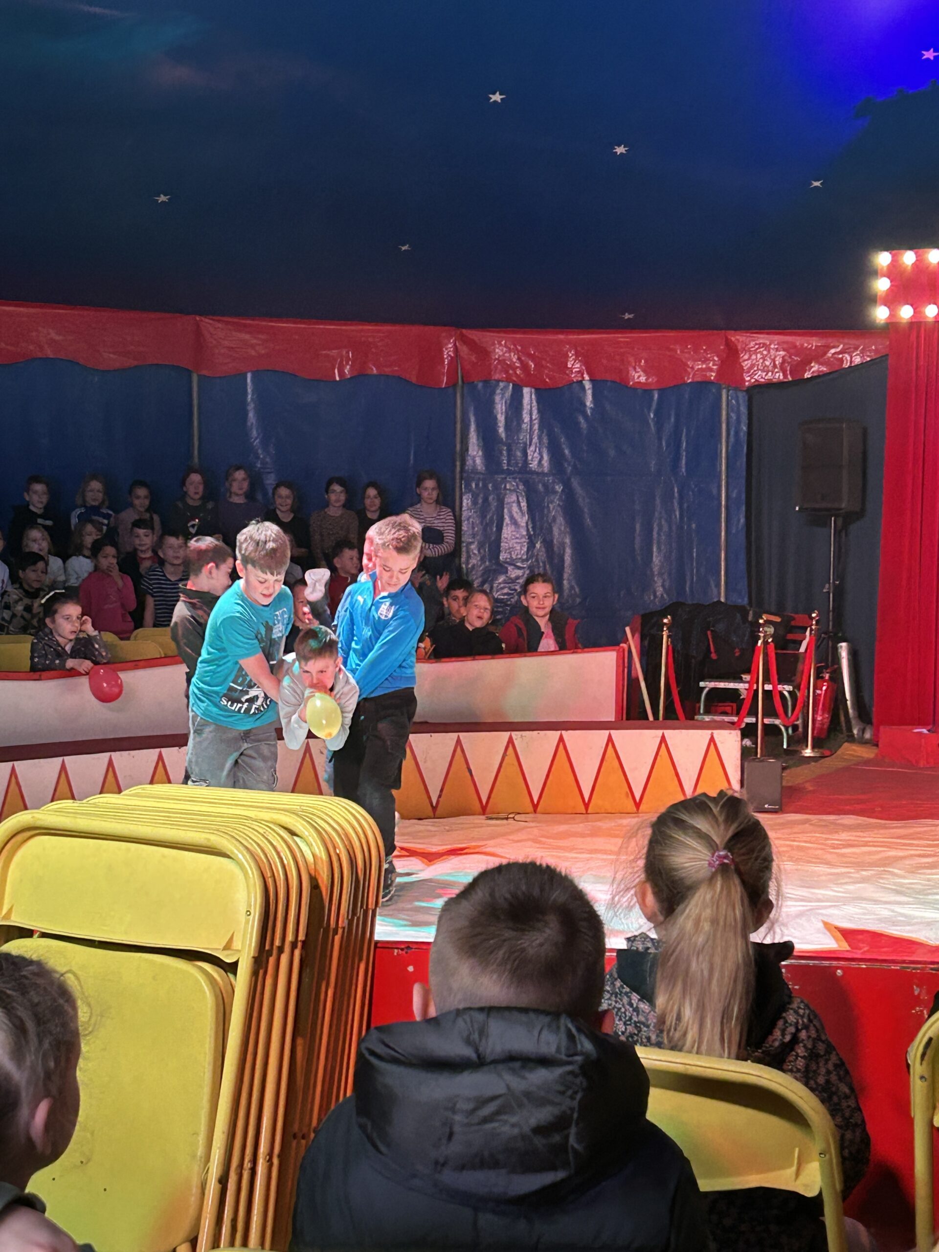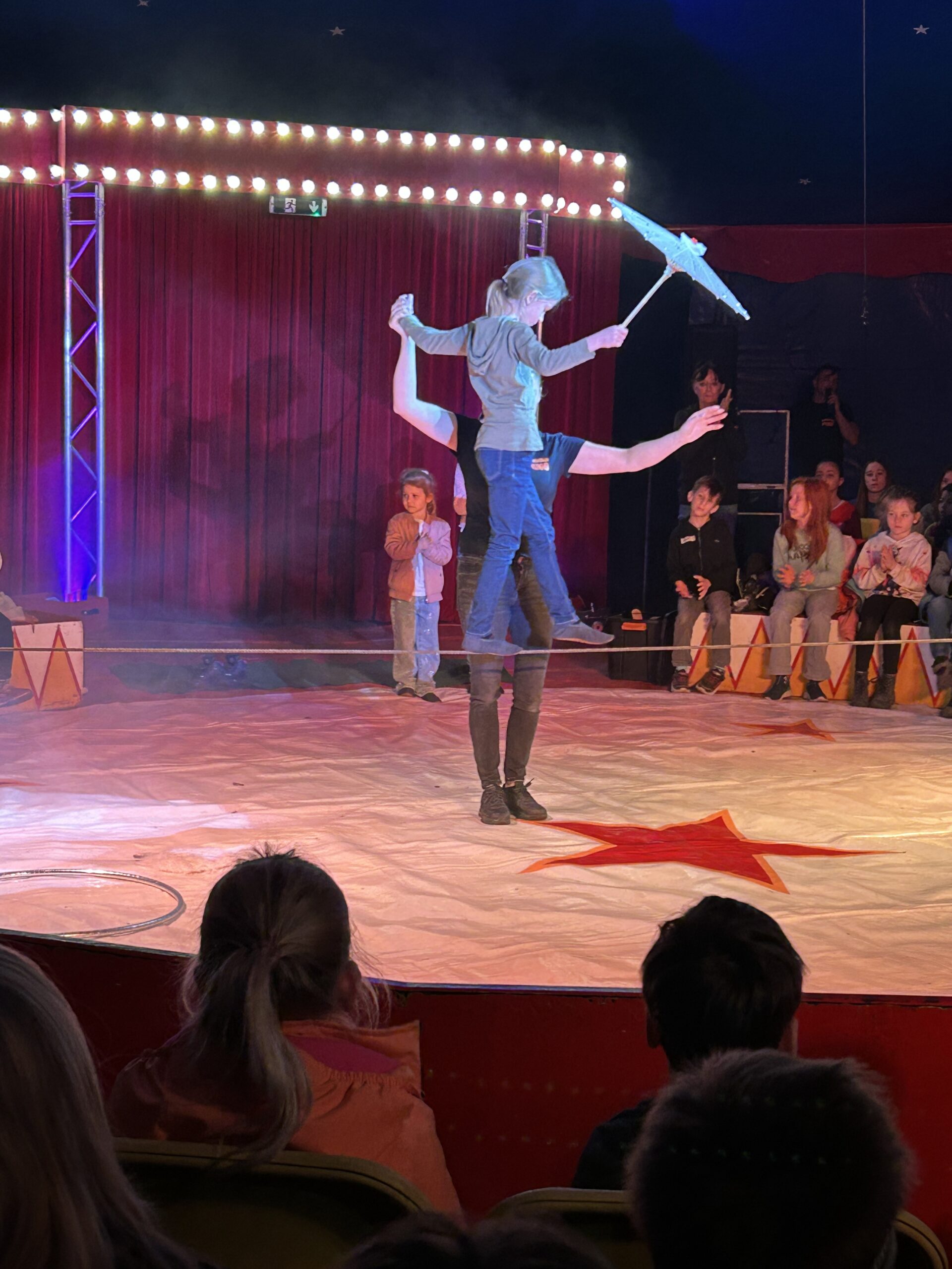 Am Montag sind wir mit allen Kindern der Grundschule und mit den Vorschulkindern aus den Kindertagesstätten in das Zirkuszelt gegangen. Dort begrüßte uns das Zirkusteam und stellte uns die Darbietungen vor. Bereits bei der Schnupperstunde konnten schon die ersten Kinder aktiv dabei sein.