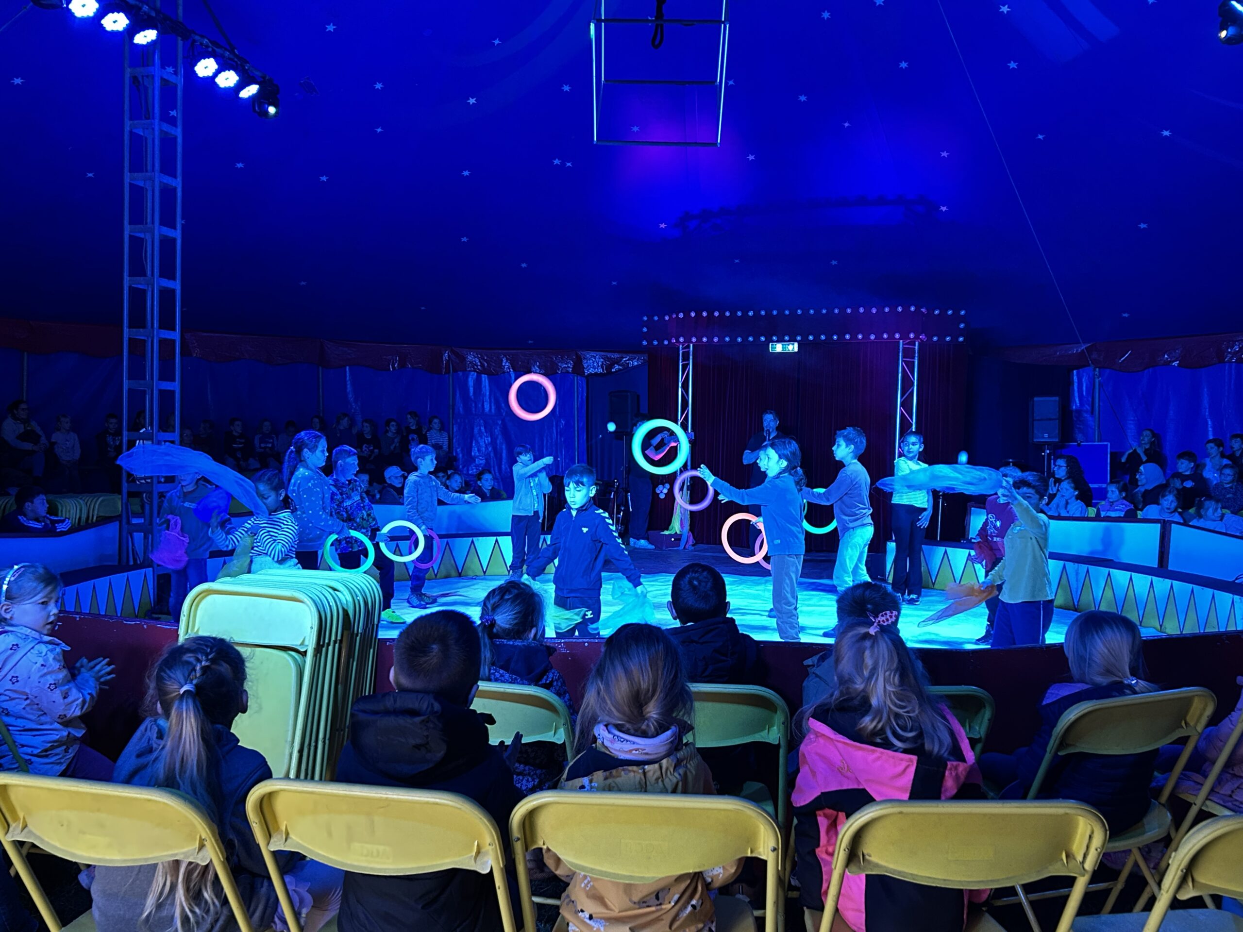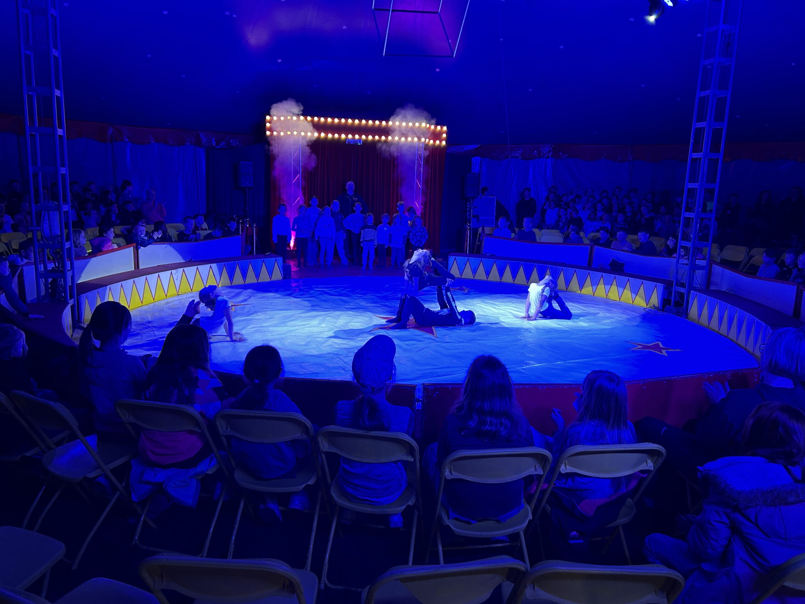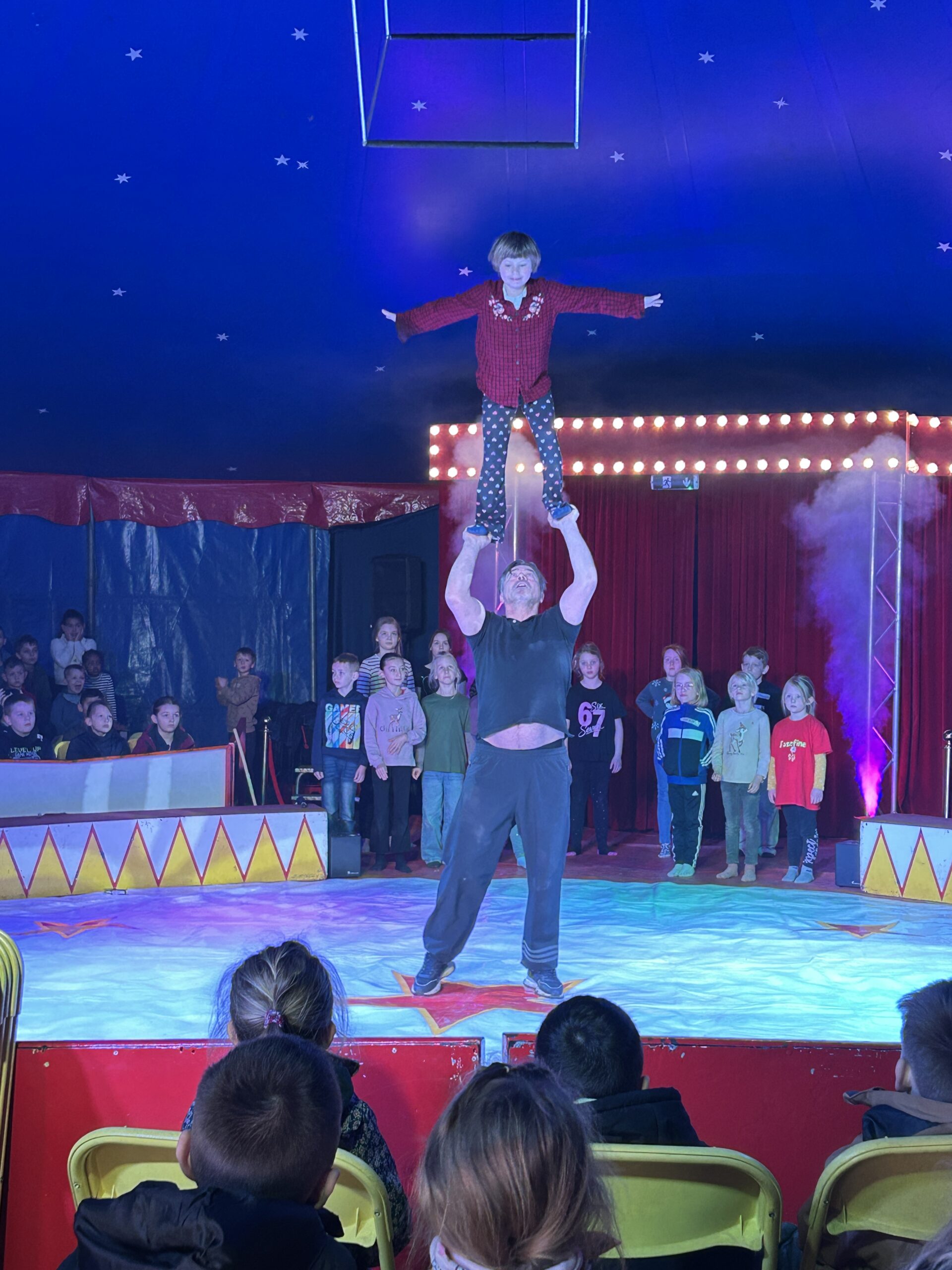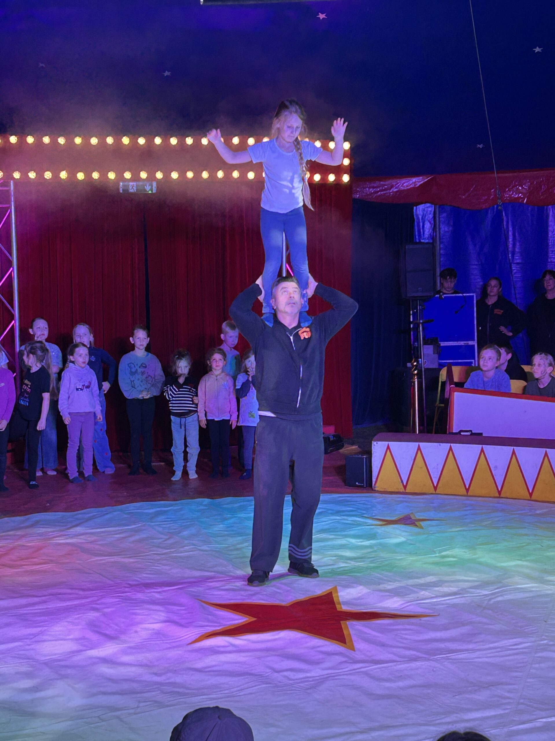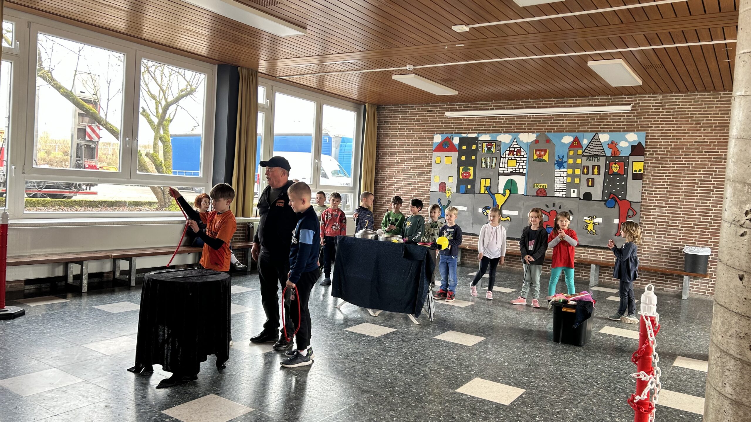 Am Montag sind wir mit allen Kindern der Grundschule und mit den Vorschulkindern aus den Kindertagesstätten in das Zirkuszelt gegangen. Dort begrüßte uns das Zirkusteam und stellte uns die Darbietungen vor. Bereits bei der Schnupperstunde konnten schon die ersten Kinder aktiv dabei sein.