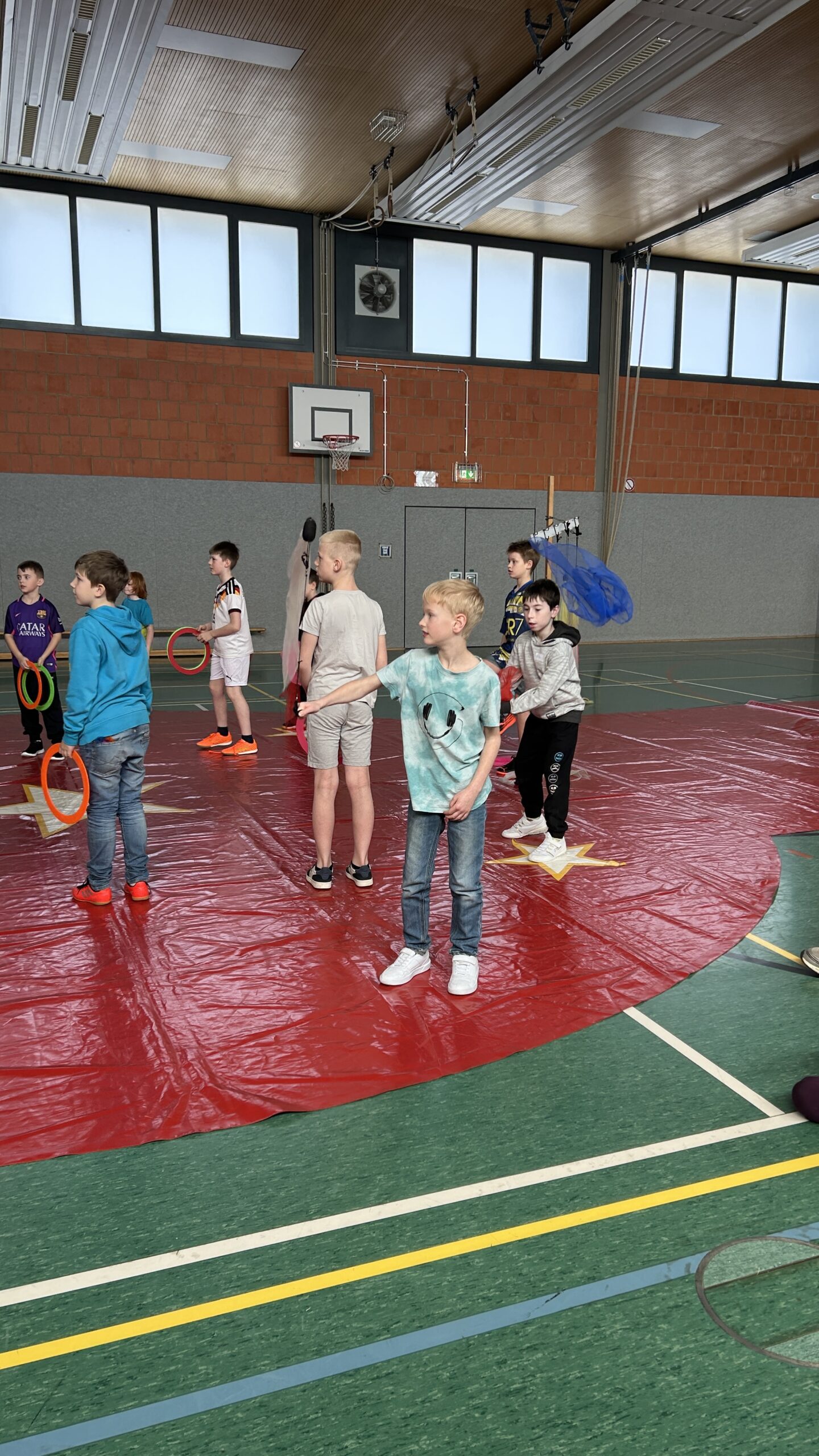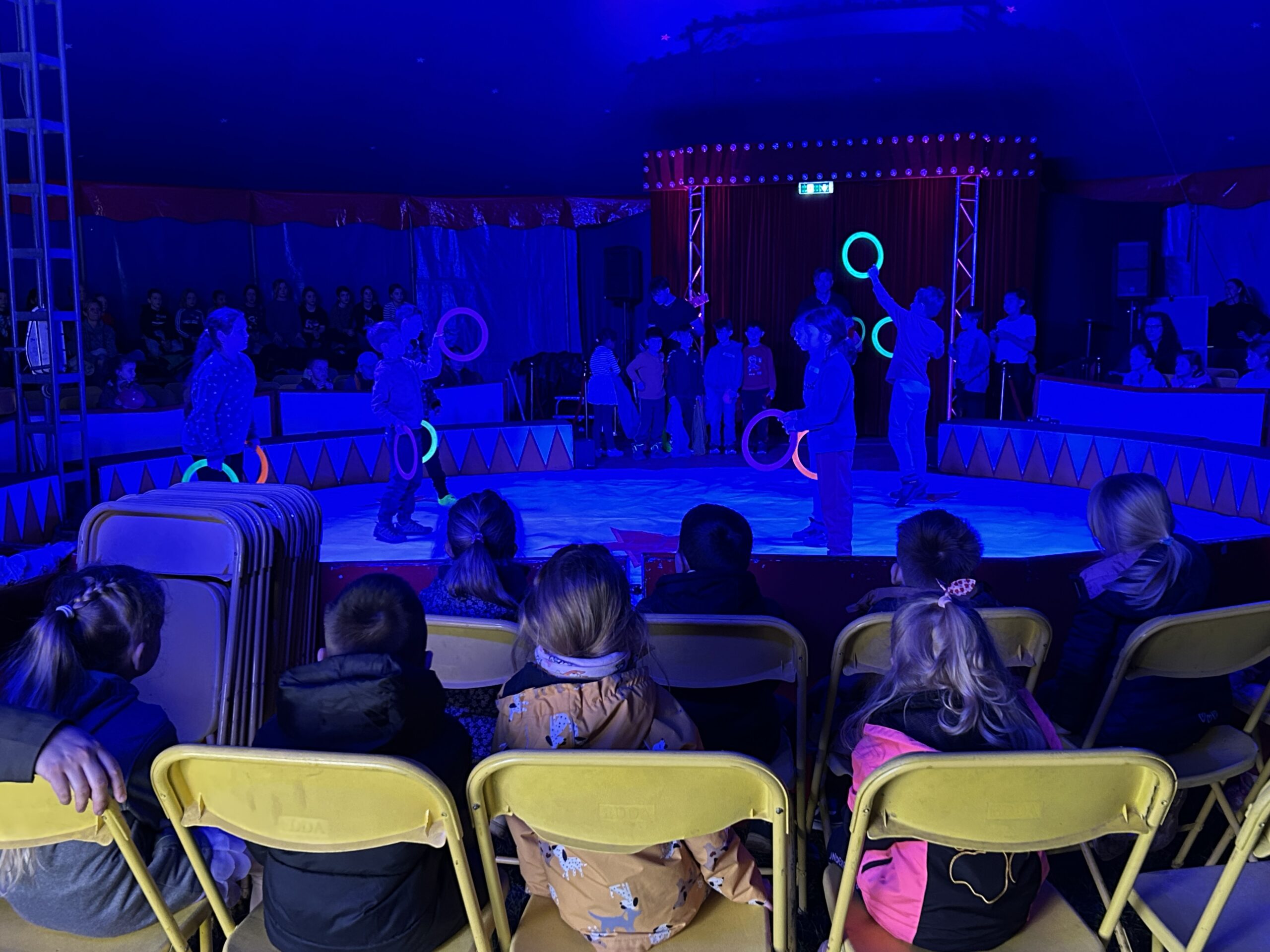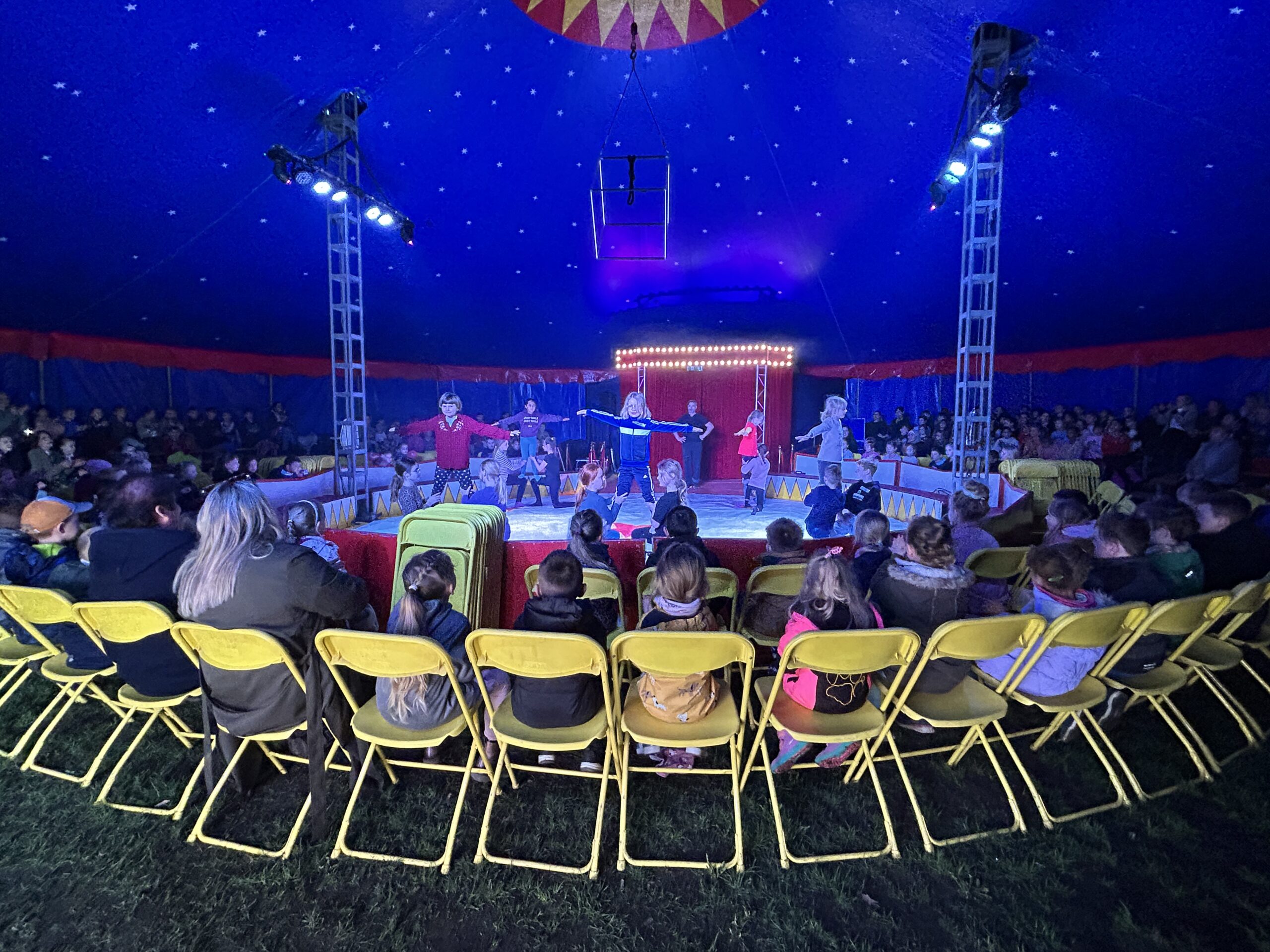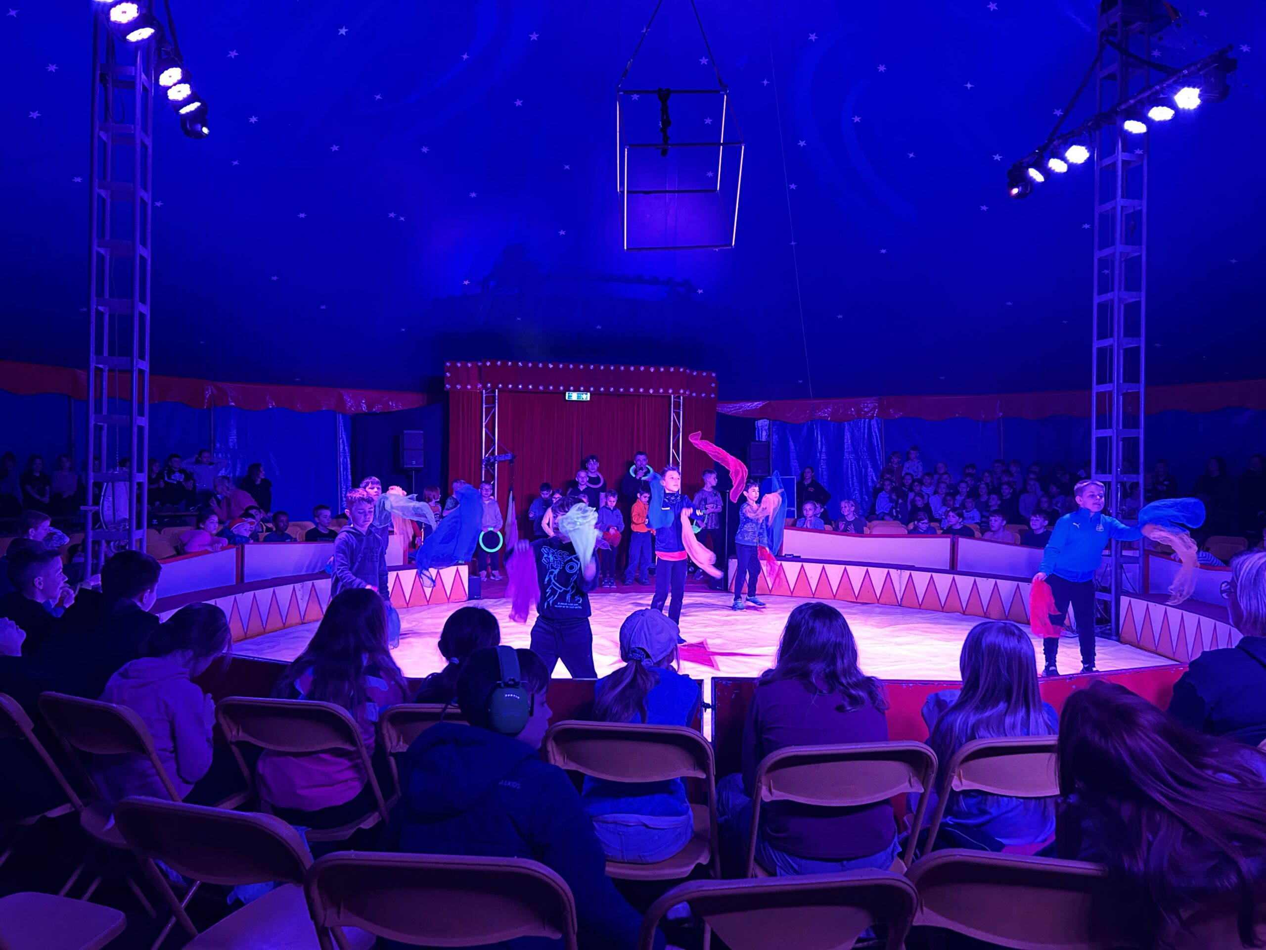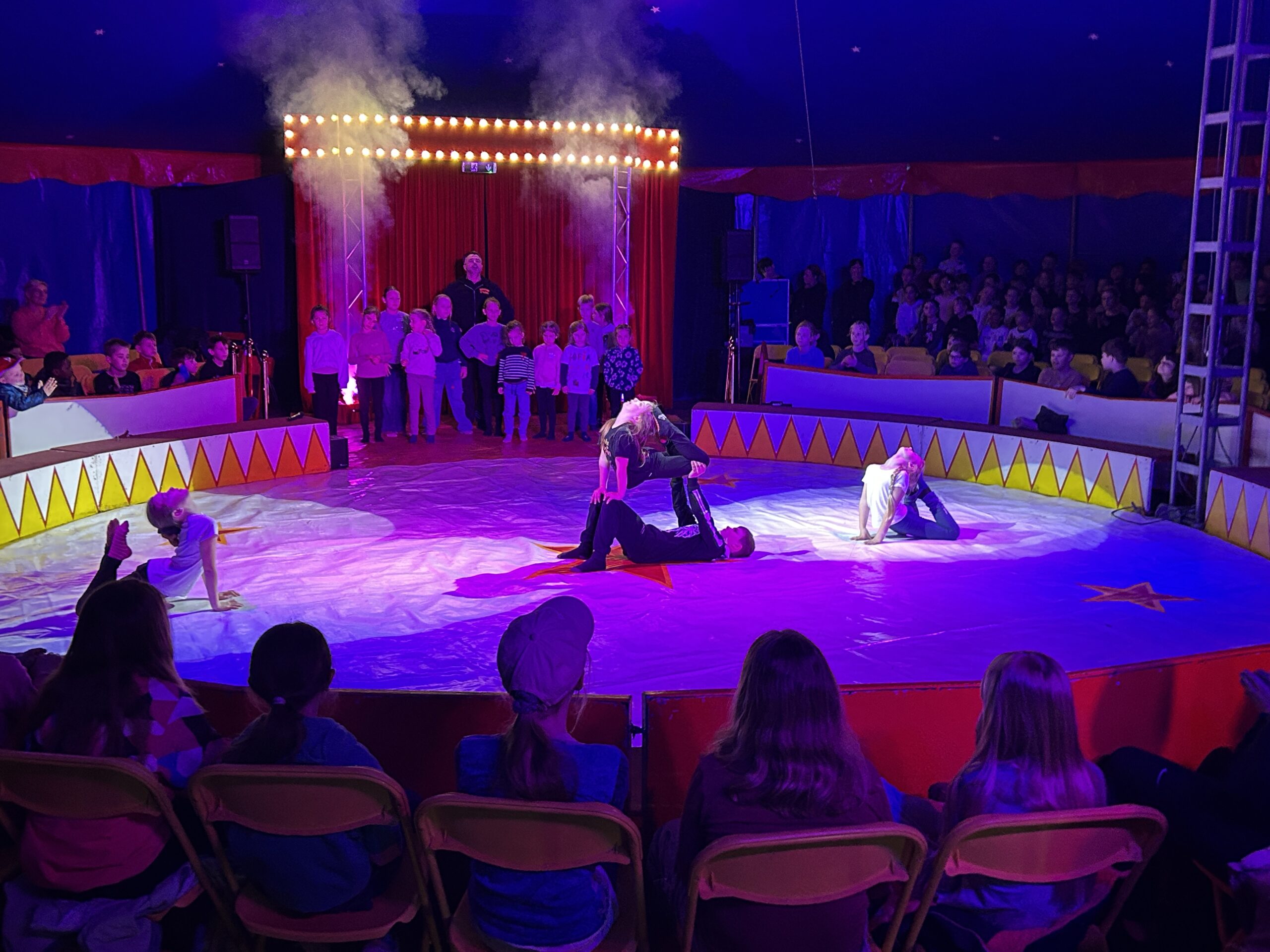 Am Montag sind wir mit allen Kindern der Grundschule und mit den Vorschulkindern aus den Kindertagesstätten in das Zirkuszelt gegangen. Dort begrüßte uns das Zirkusteam und stellte uns die Darbietungen vor. Bereits bei der Schnupperstunde konnten schon die ersten Kinder aktiv dabei sein.