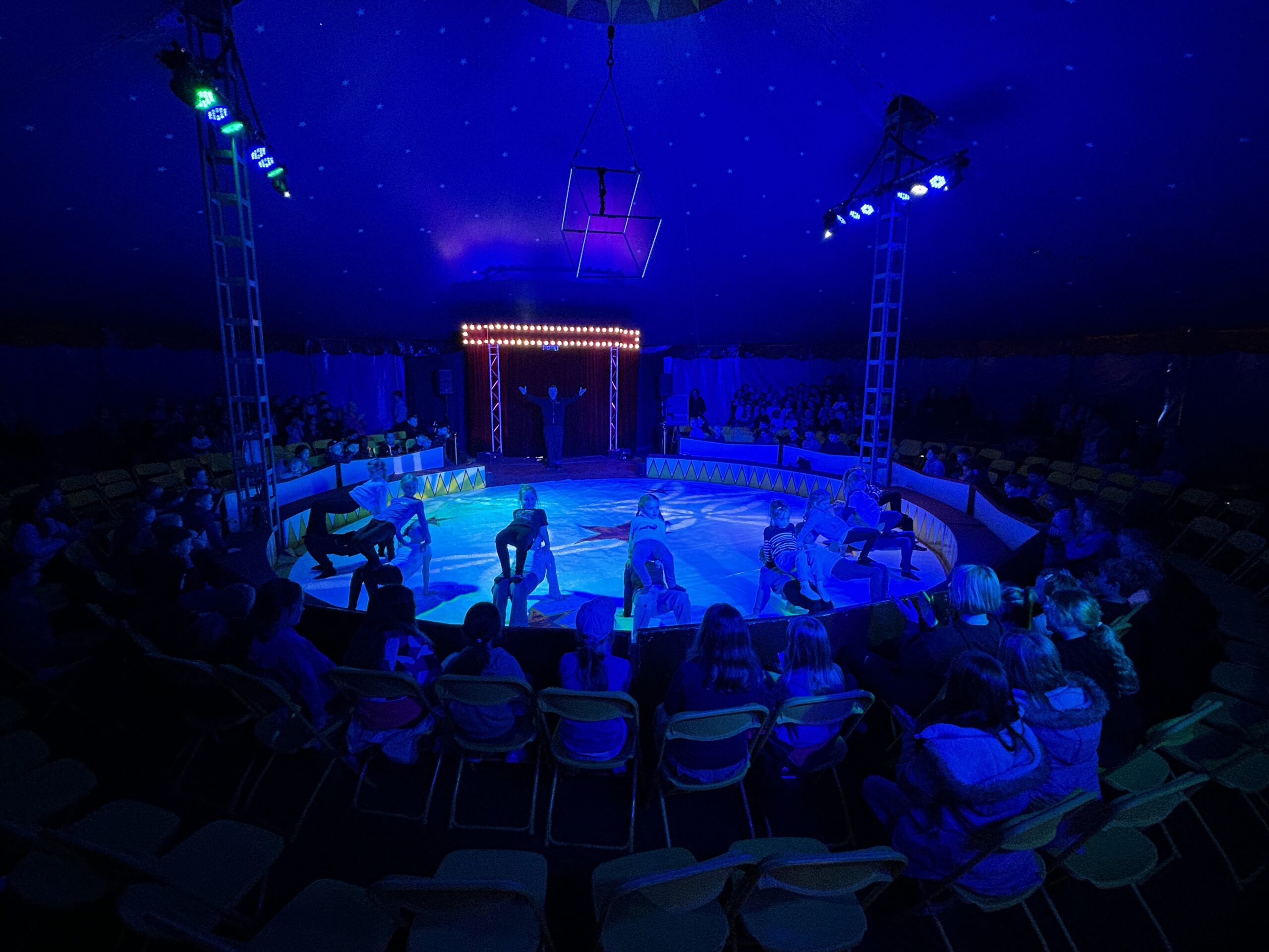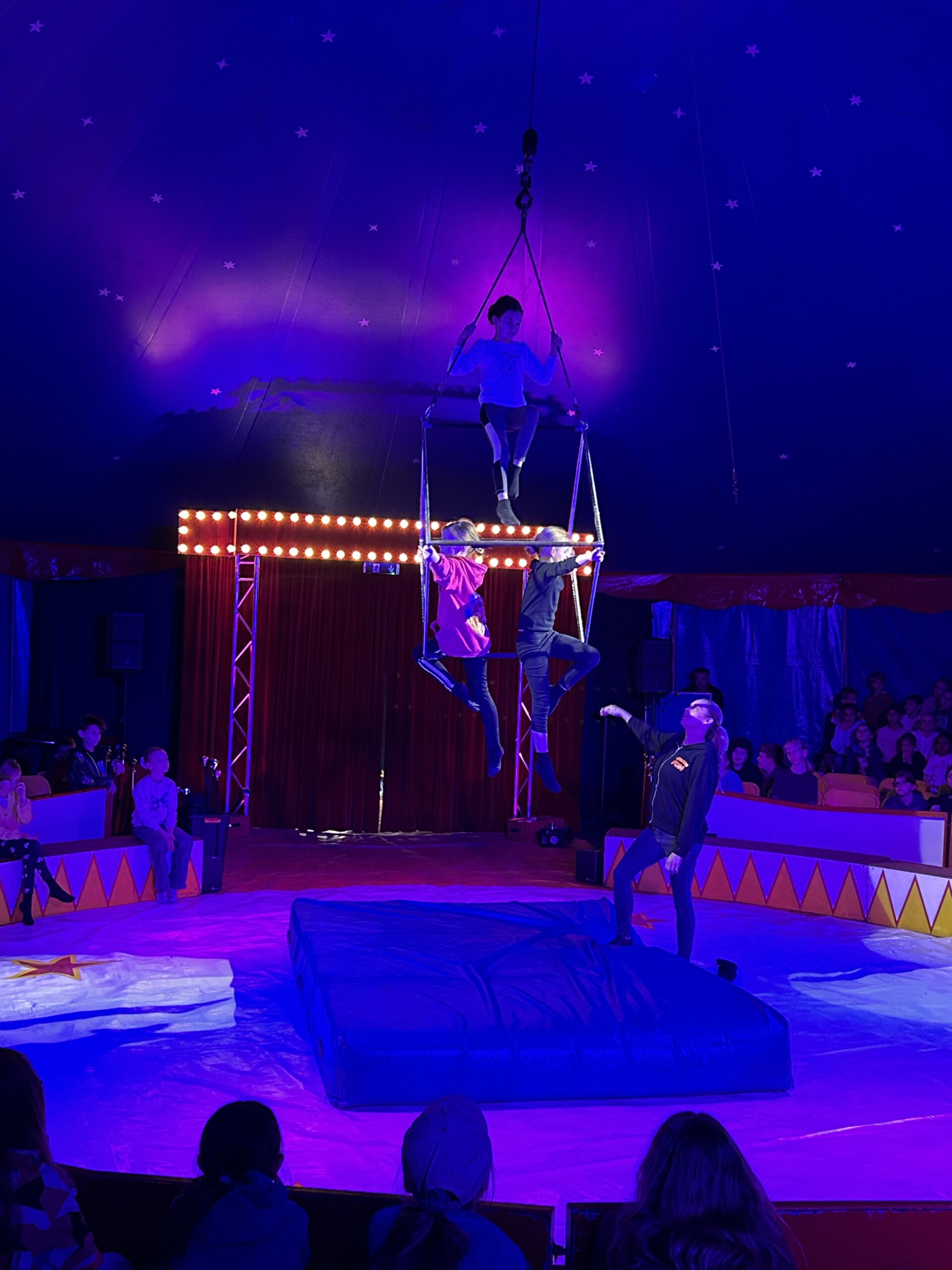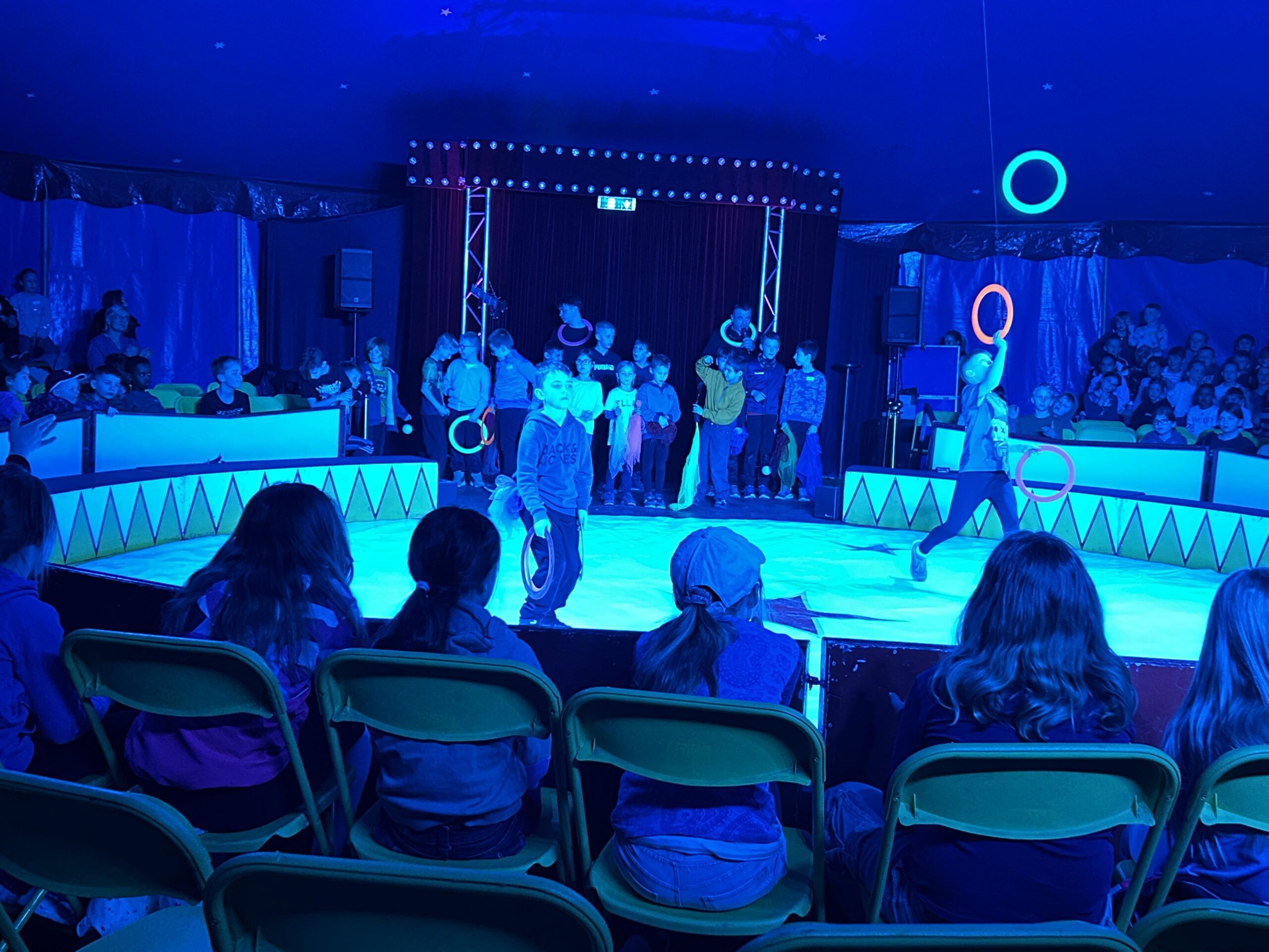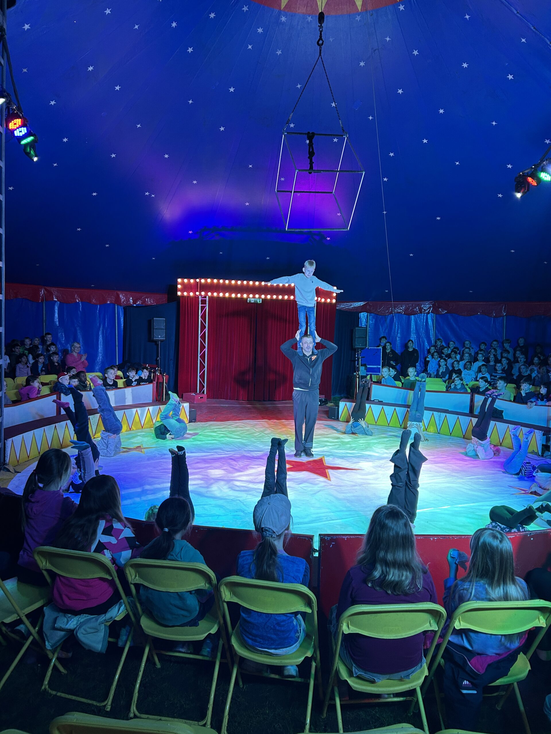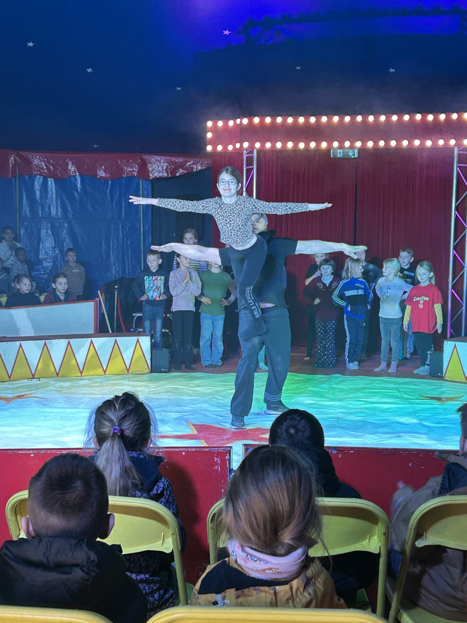 Am Montag sind wir mit allen Kindern der Grundschule und mit den Vorschulkindern aus den Kindertagesstätten in das Zirkuszelt gegangen. Dort begrüßte uns das Zirkusteam und stellte uns die Darbietungen vor. Bereits bei der Schnupperstunde konnten schon die ersten Kinder aktiv dabei sein.