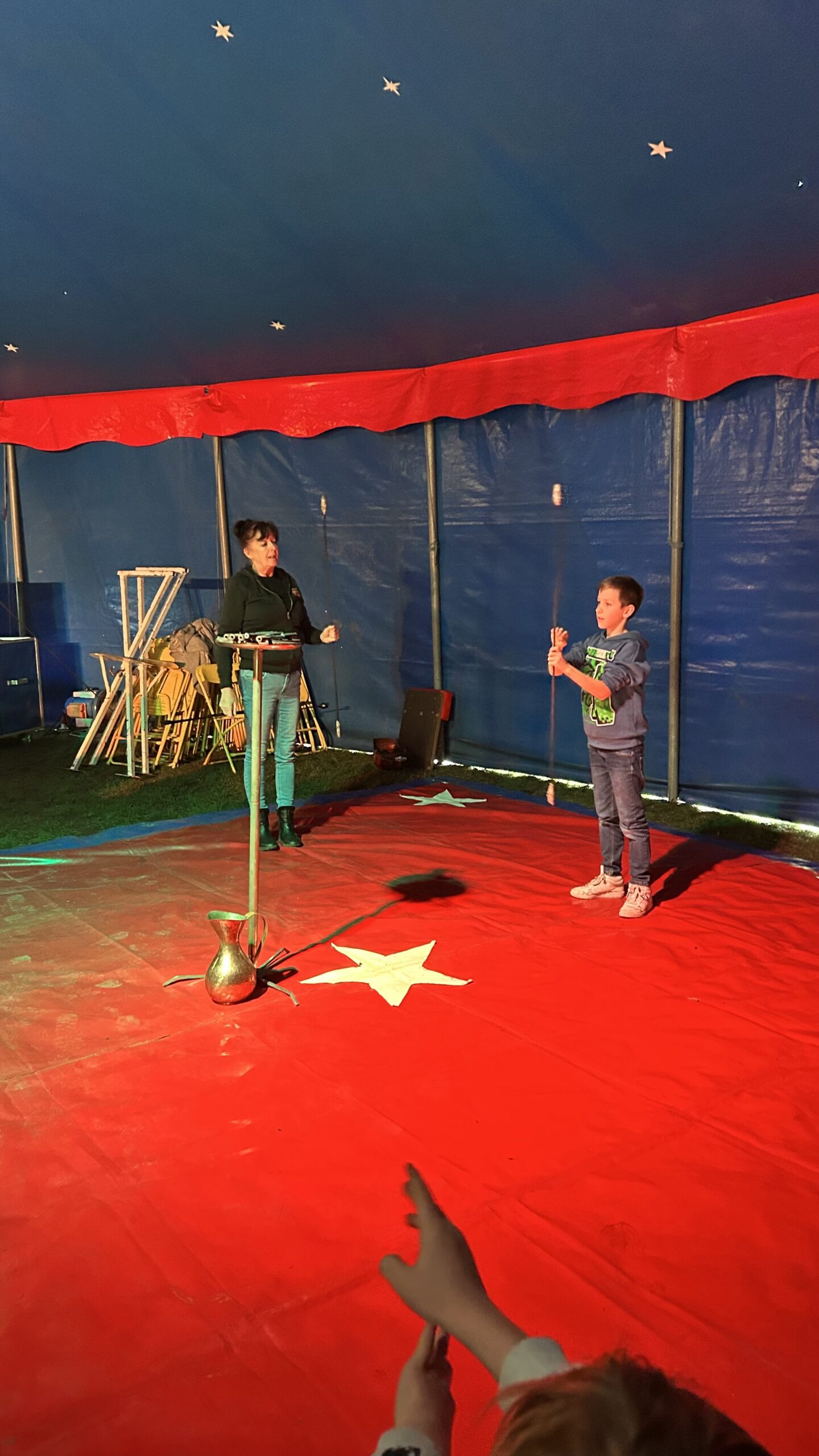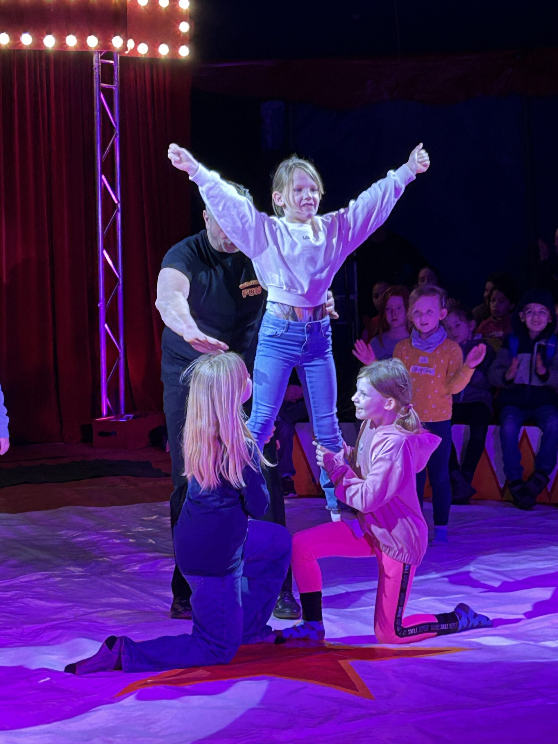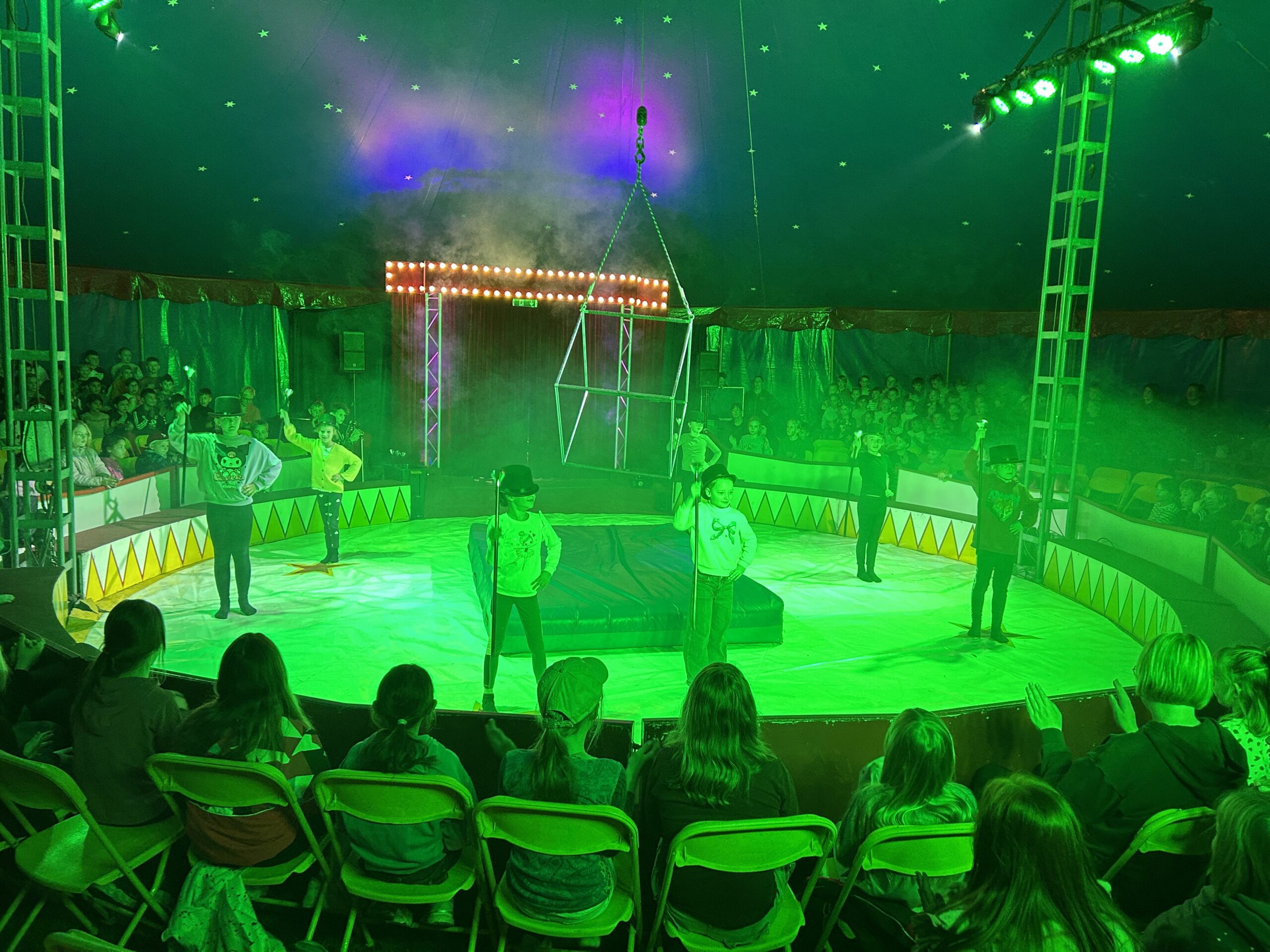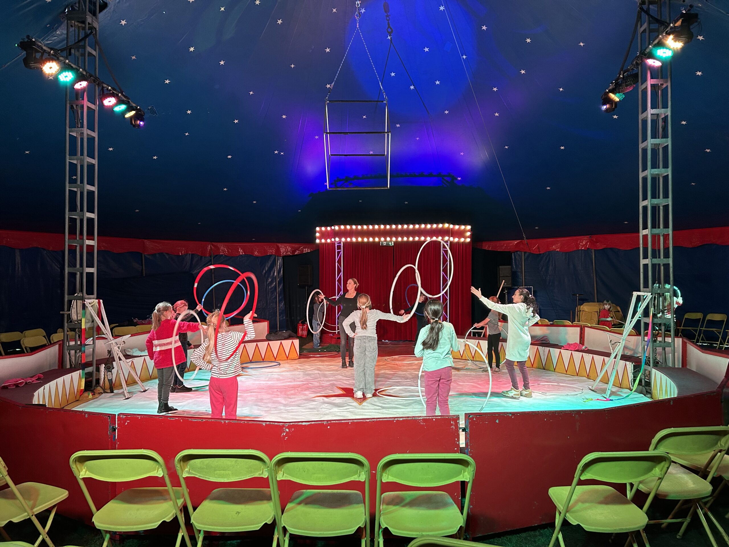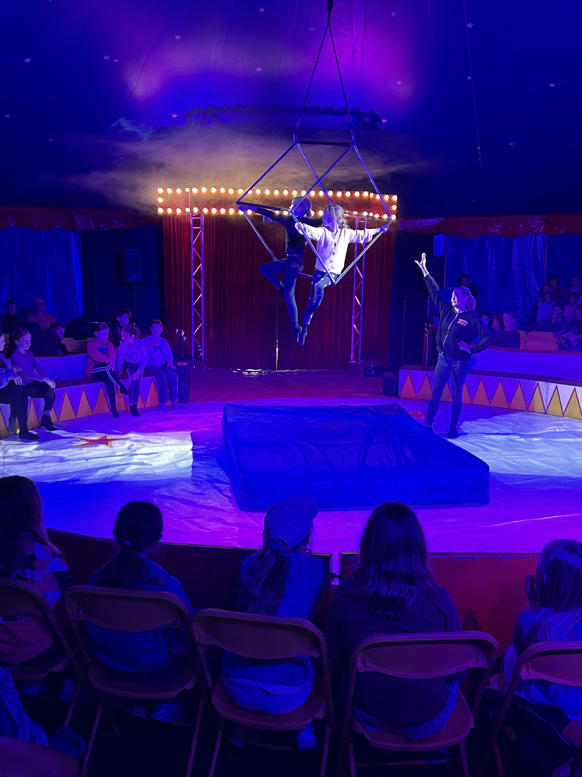 Am Montag sind wir mit allen Kindern der Grundschule und mit den Vorschulkindern aus den Kindertagesstätten in das Zirkuszelt gegangen. Dort begrüßte uns das Zirkusteam und stellte uns die Darbietungen vor. Bereits bei der Schnupperstunde konnten schon die ersten Kinder aktiv dabei sein.