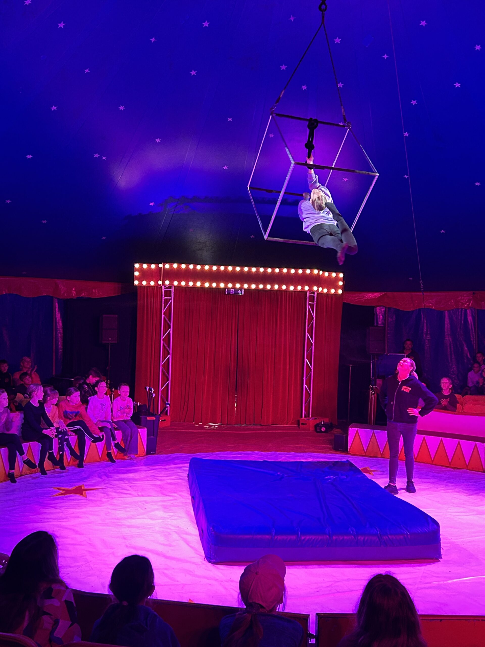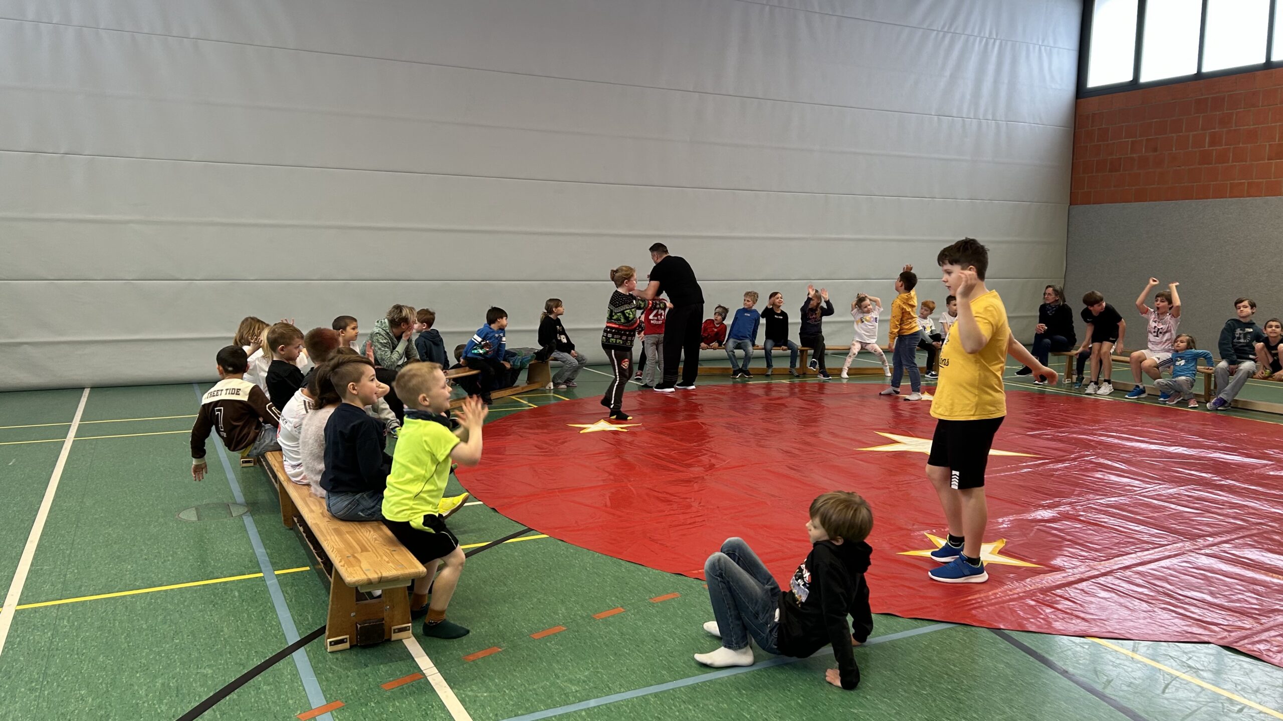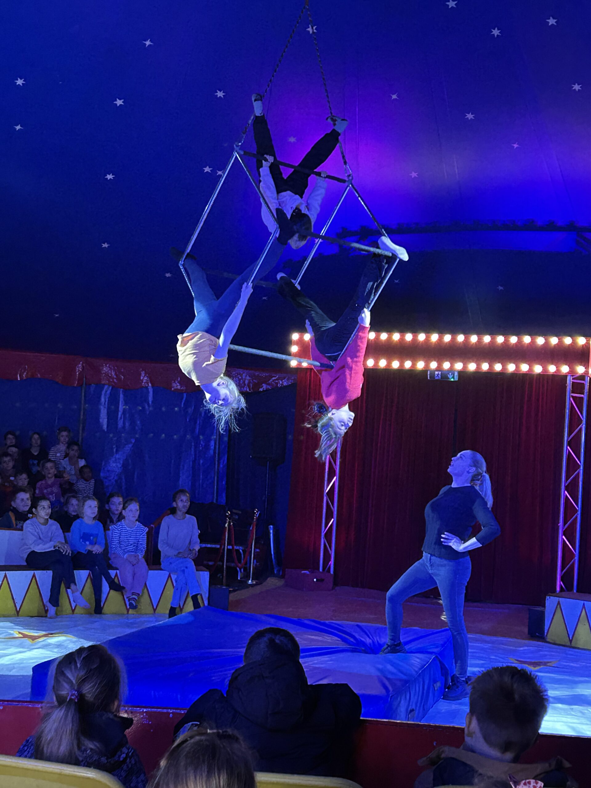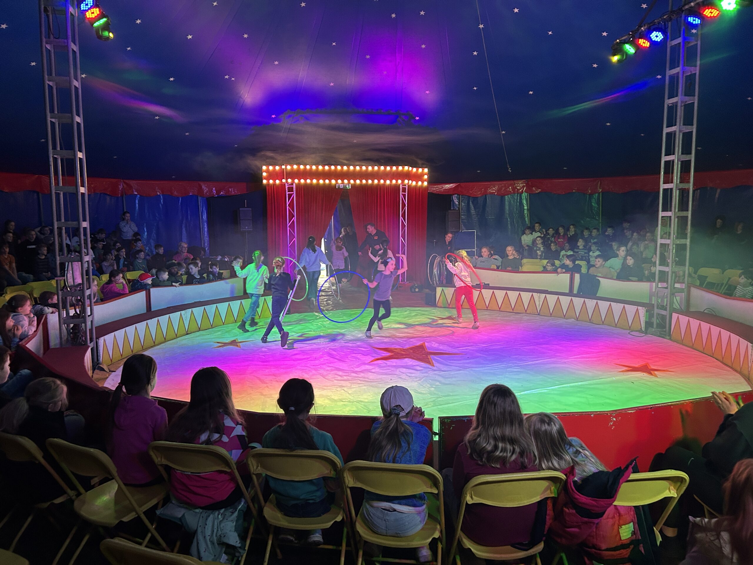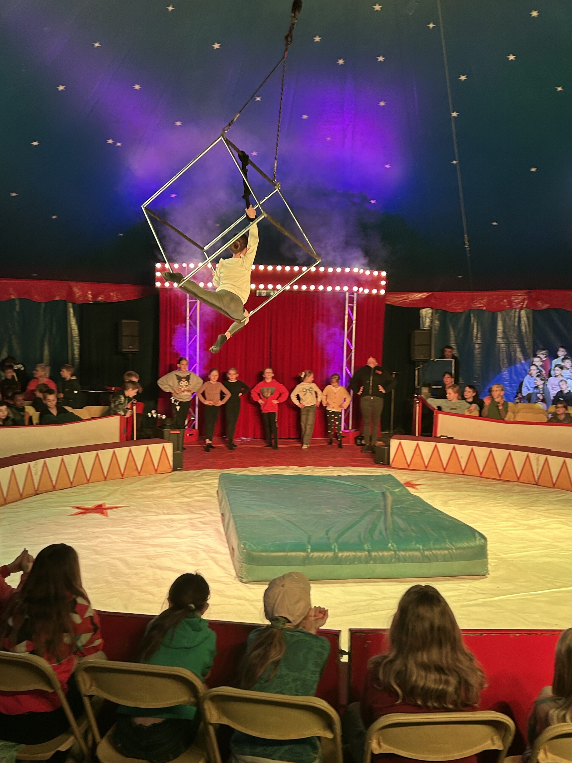 Am Montag sind wir mit allen Kindern der Grundschule und mit den Vorschulkindern aus den Kindertagesstätten in das Zirkuszelt gegangen. Dort begrüßte uns das Zirkusteam und stellte uns die Darbietungen vor. Bereits bei der Schnupperstunde konnten schon die ersten Kinder aktiv dabei sein.