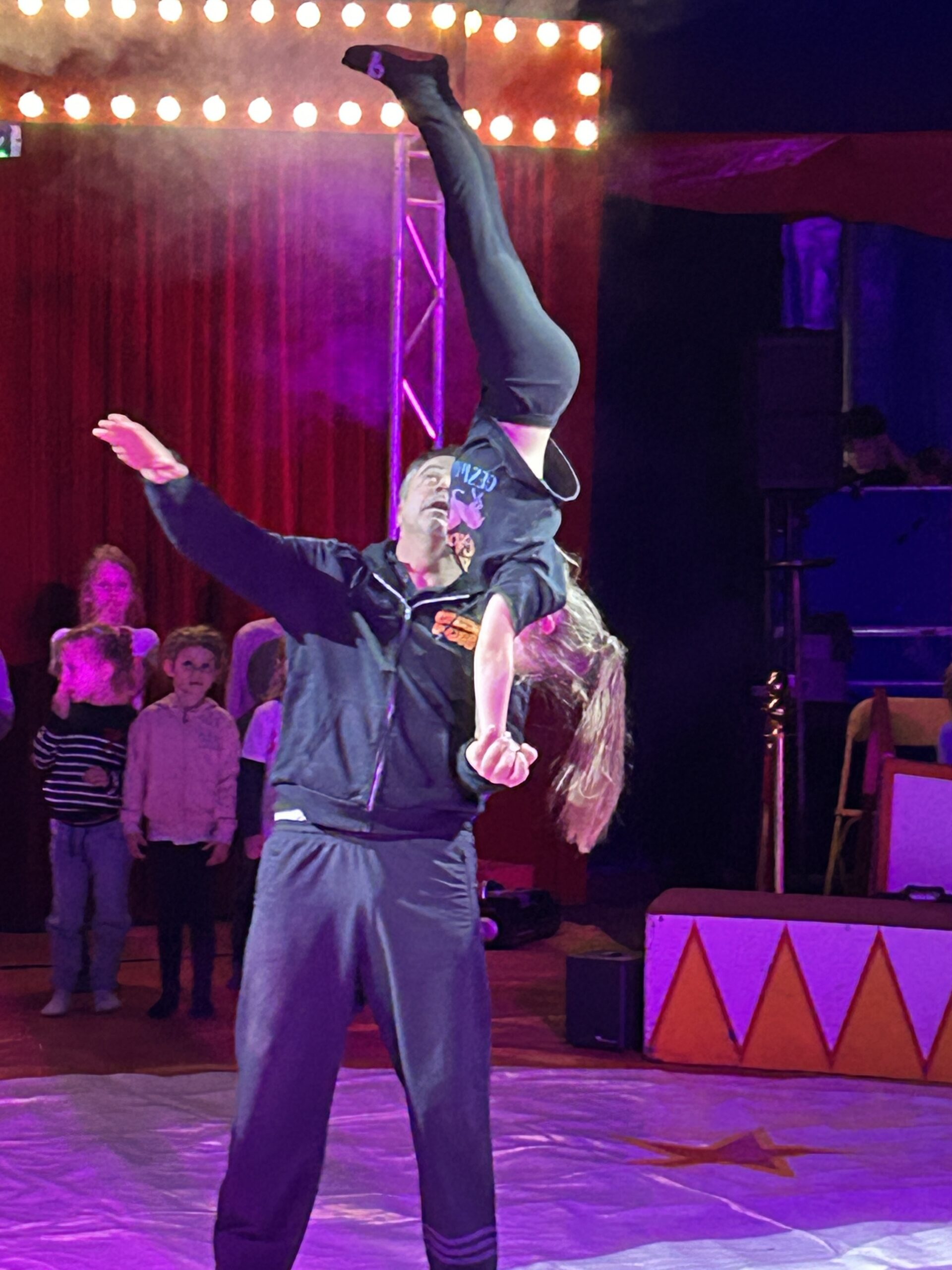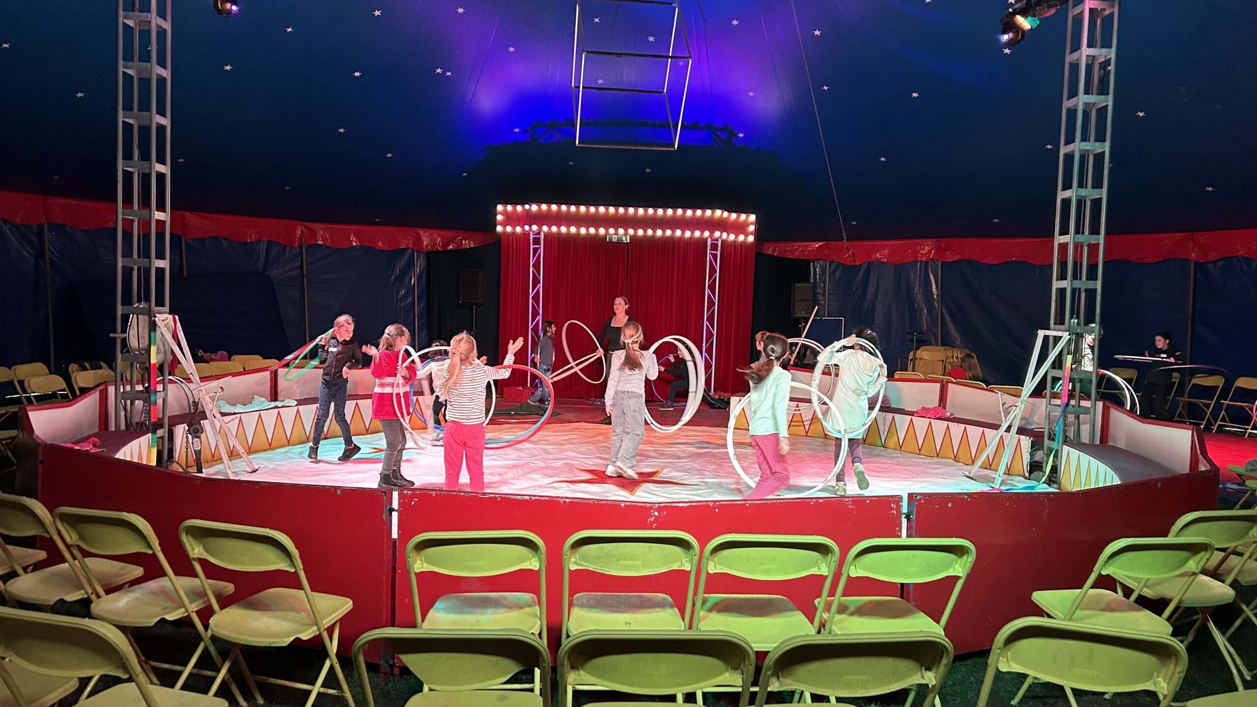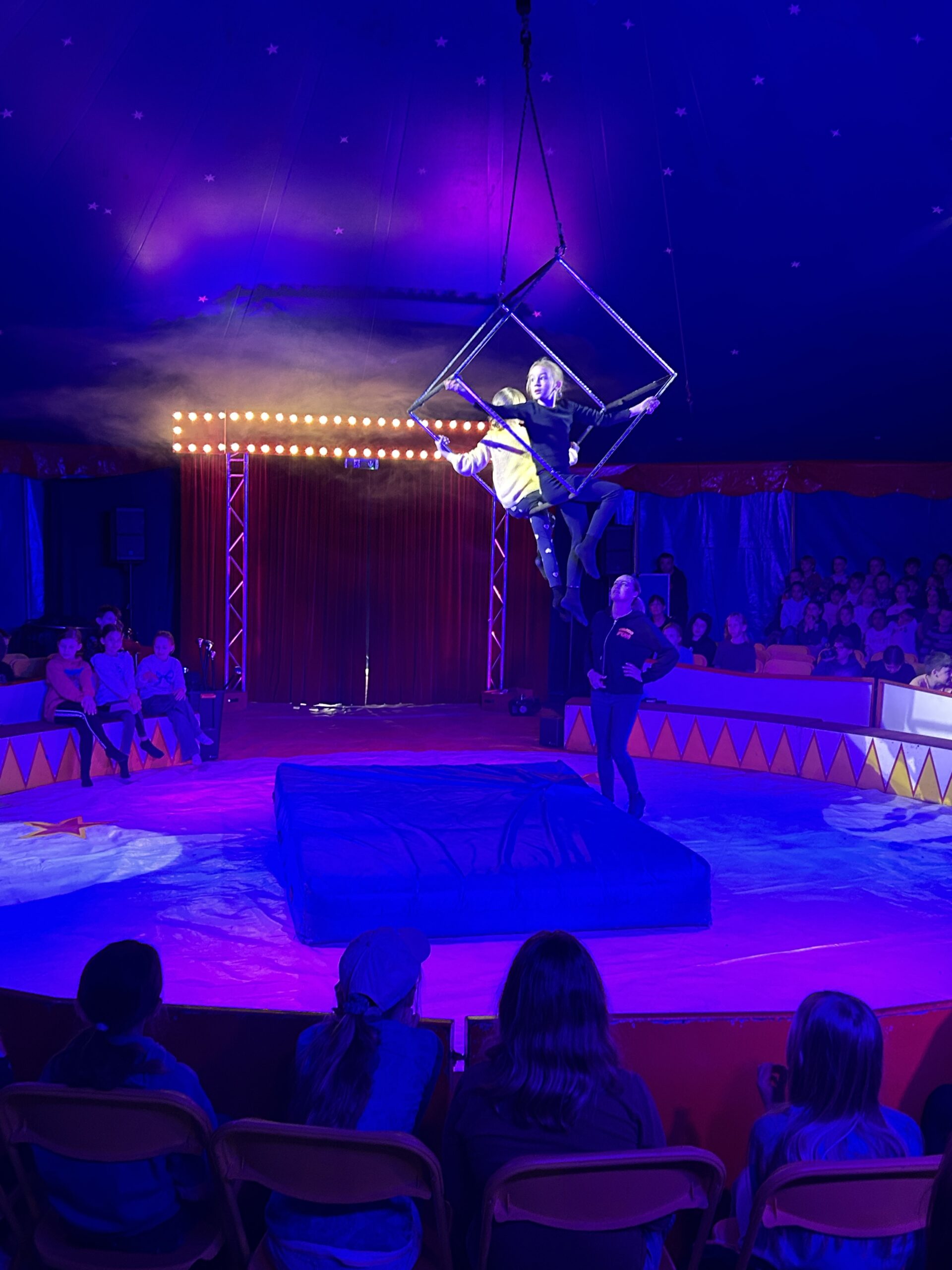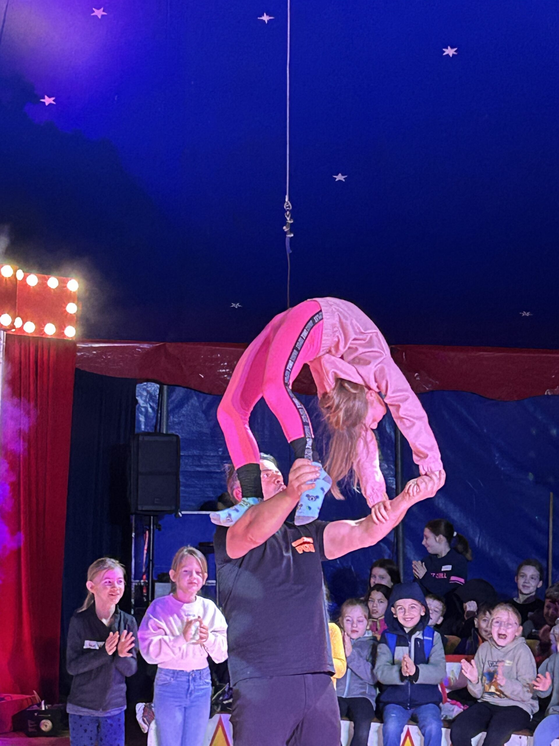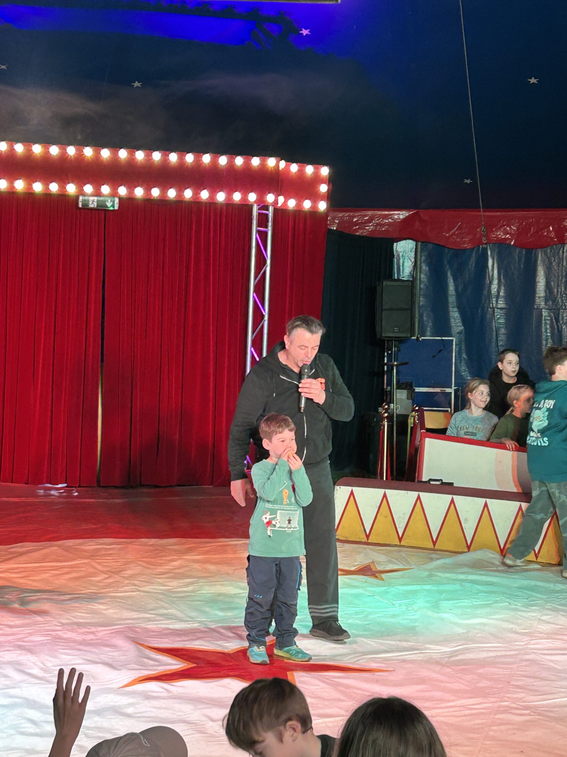 Am Montag sind wir mit allen Kindern der Grundschule und mit den Vorschulkindern aus den Kindertagesstätten in das Zirkuszelt gegangen. Dort begrüßte uns das Zirkusteam und stellte uns die Darbietungen vor. Bereits bei der Schnupperstunde konnten schon die ersten Kinder aktiv dabei sein.