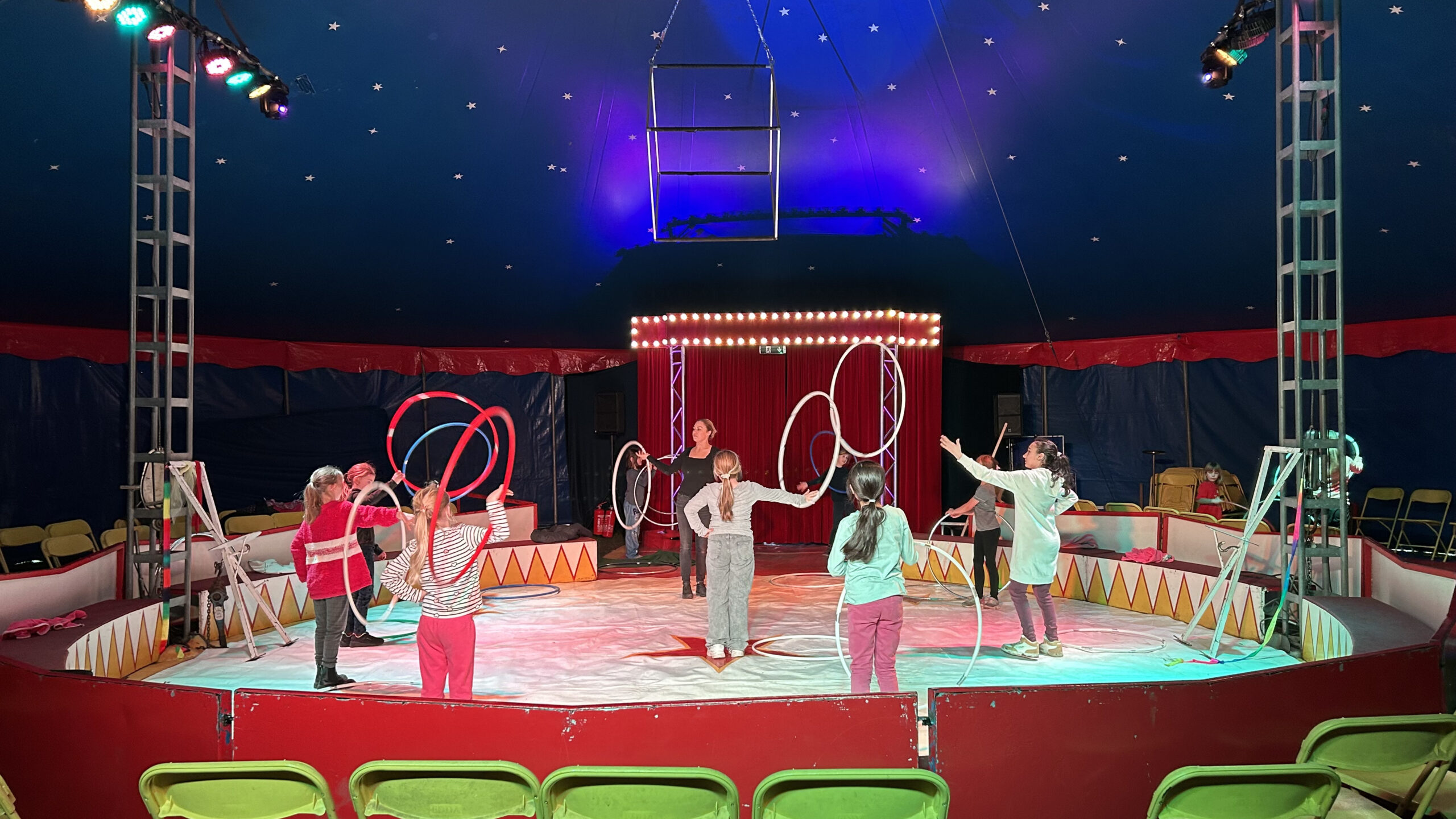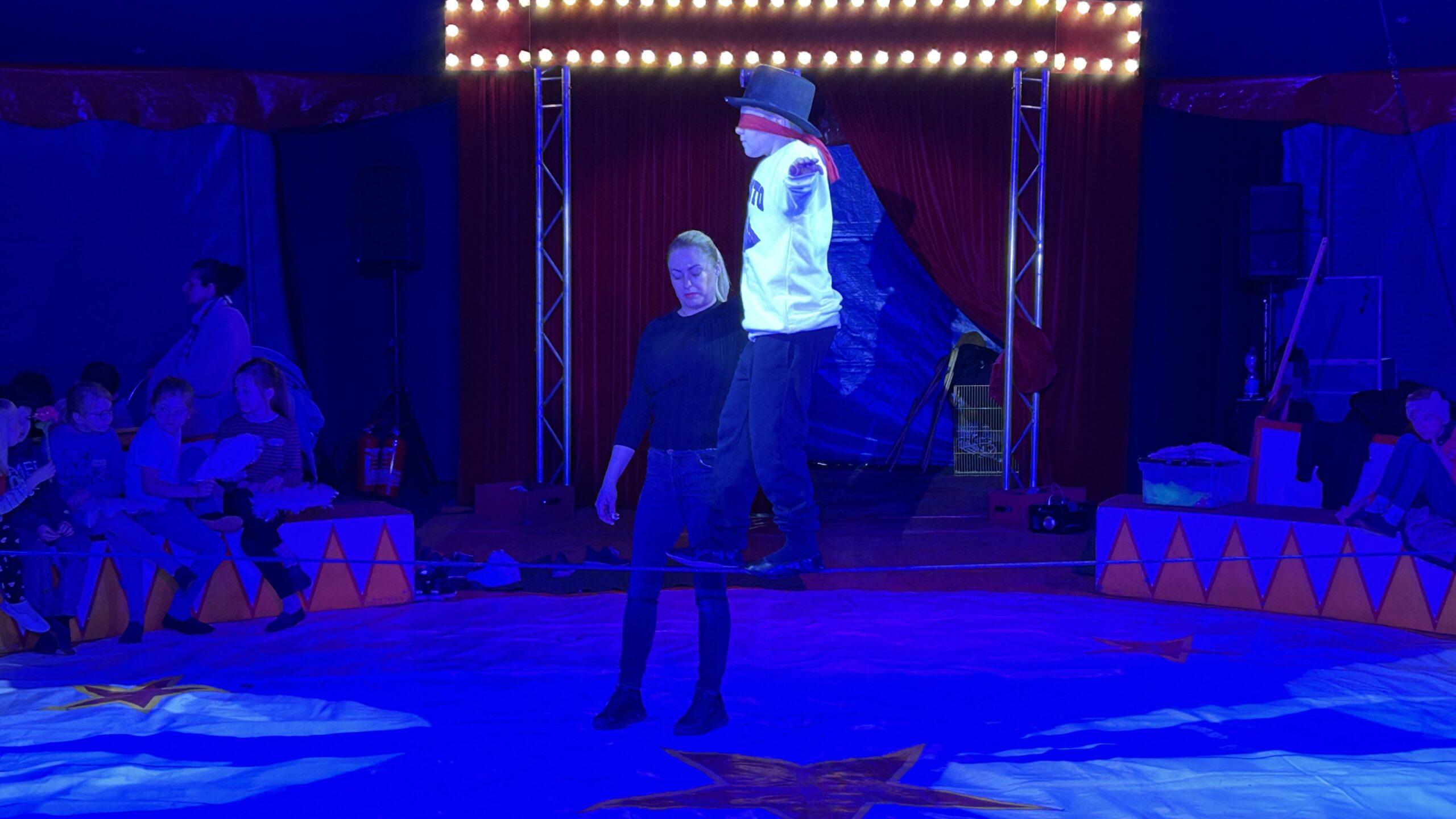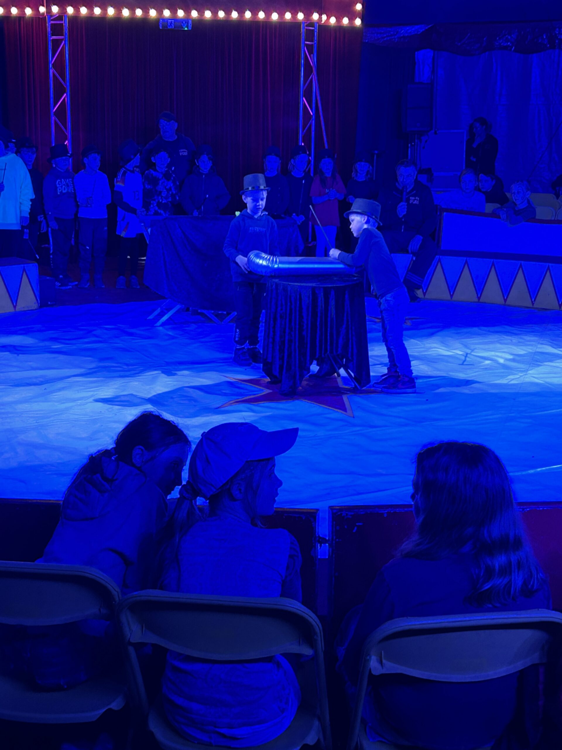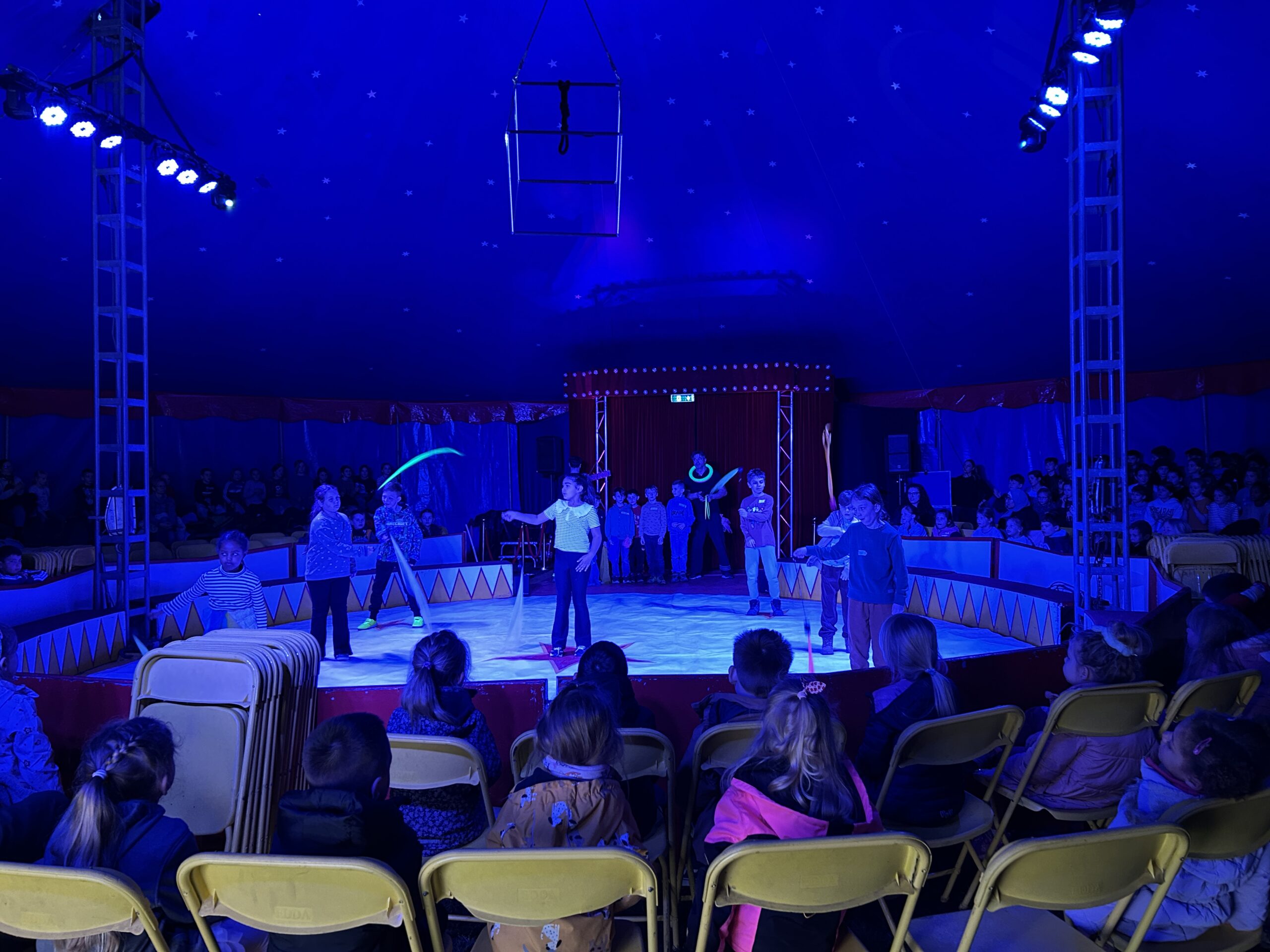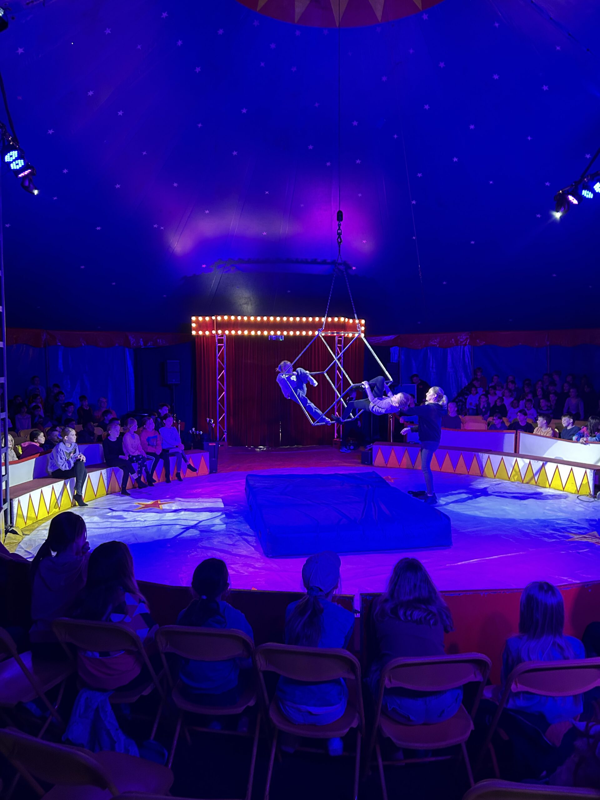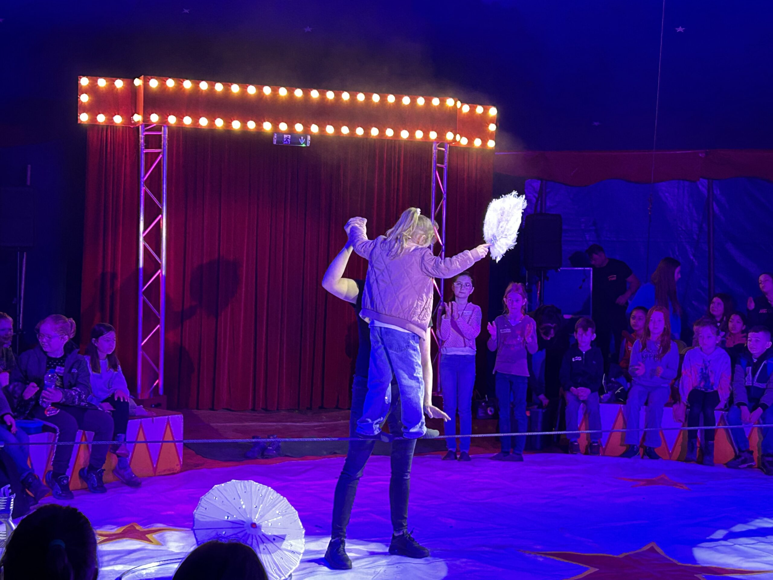 Am Montag sind wir mit allen Kindern der Grundschule und mit den Vorschulkindern aus den Kindertagesstätten in das Zirkuszelt gegangen. Dort begrüßte uns das Zirkusteam und stellte uns die Darbietungen vor. Bereits bei der Schnupperstunde konnten schon die ersten Kinder aktiv dabei sein.