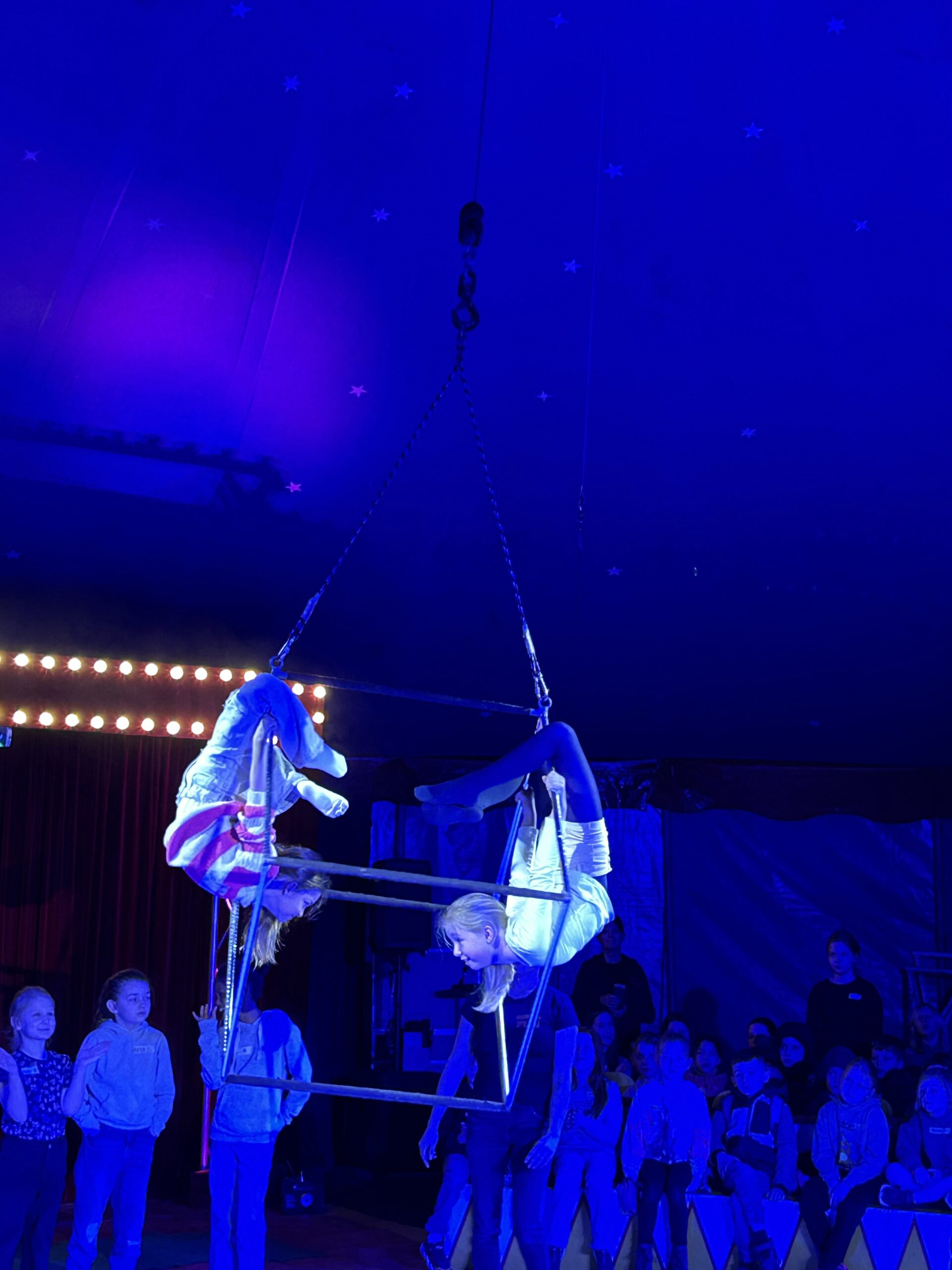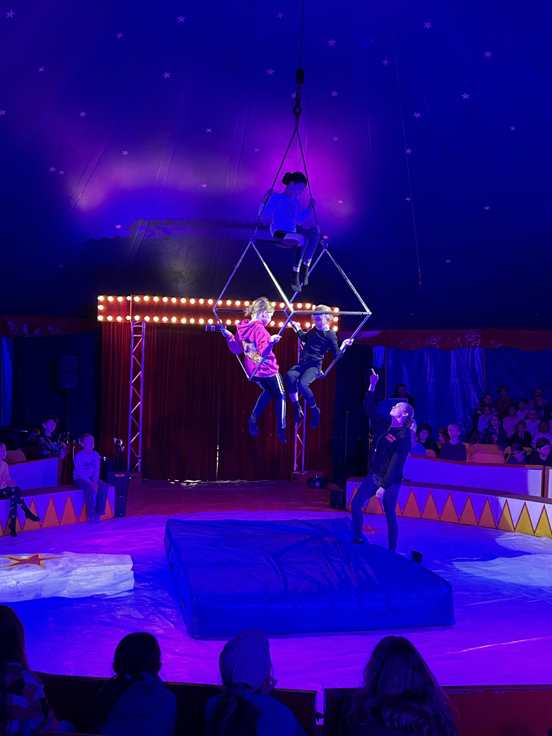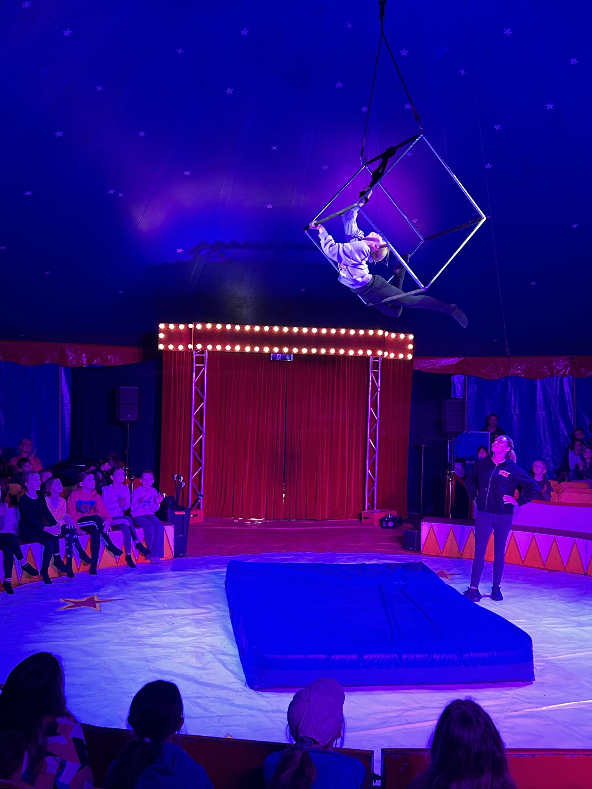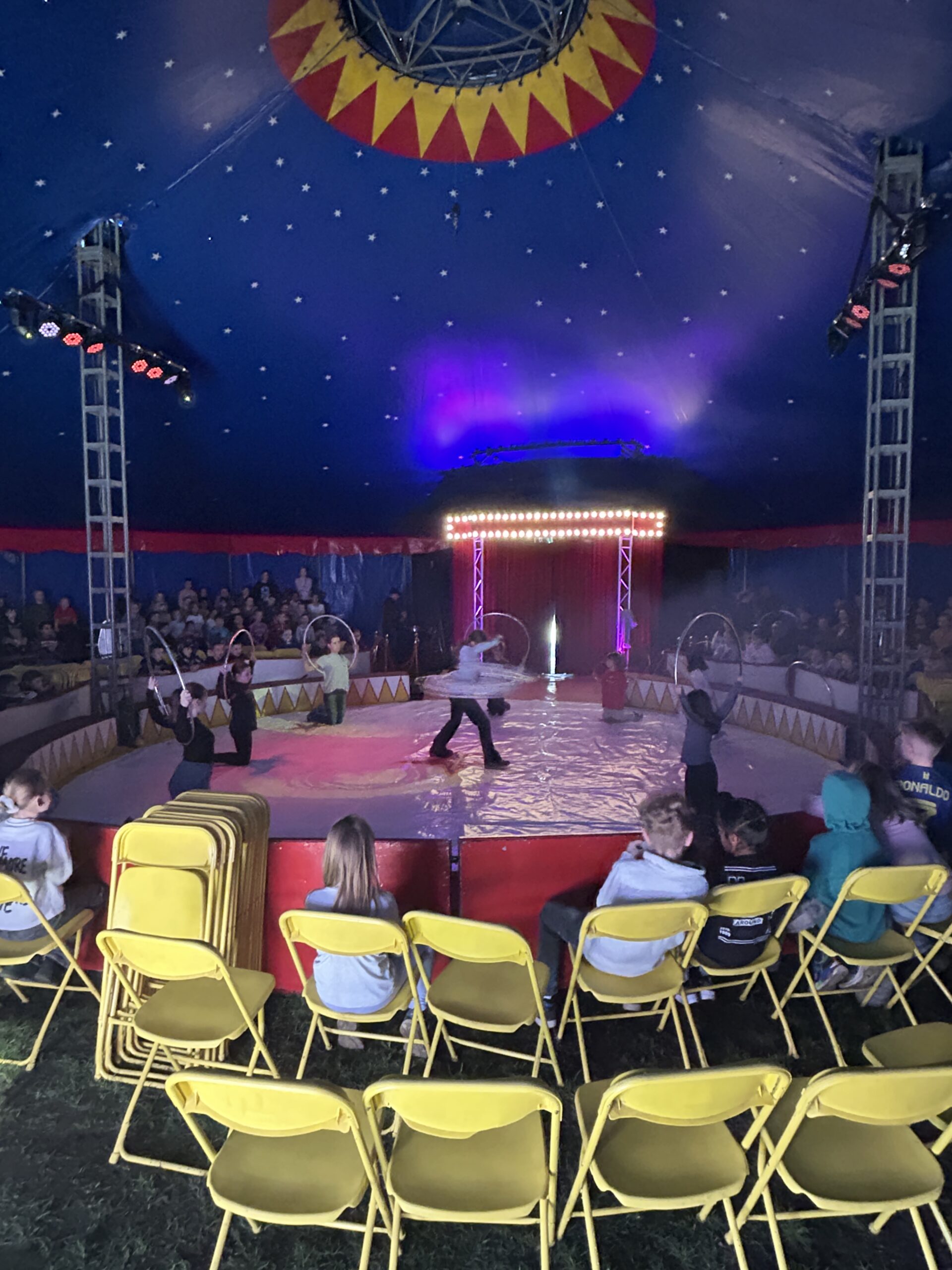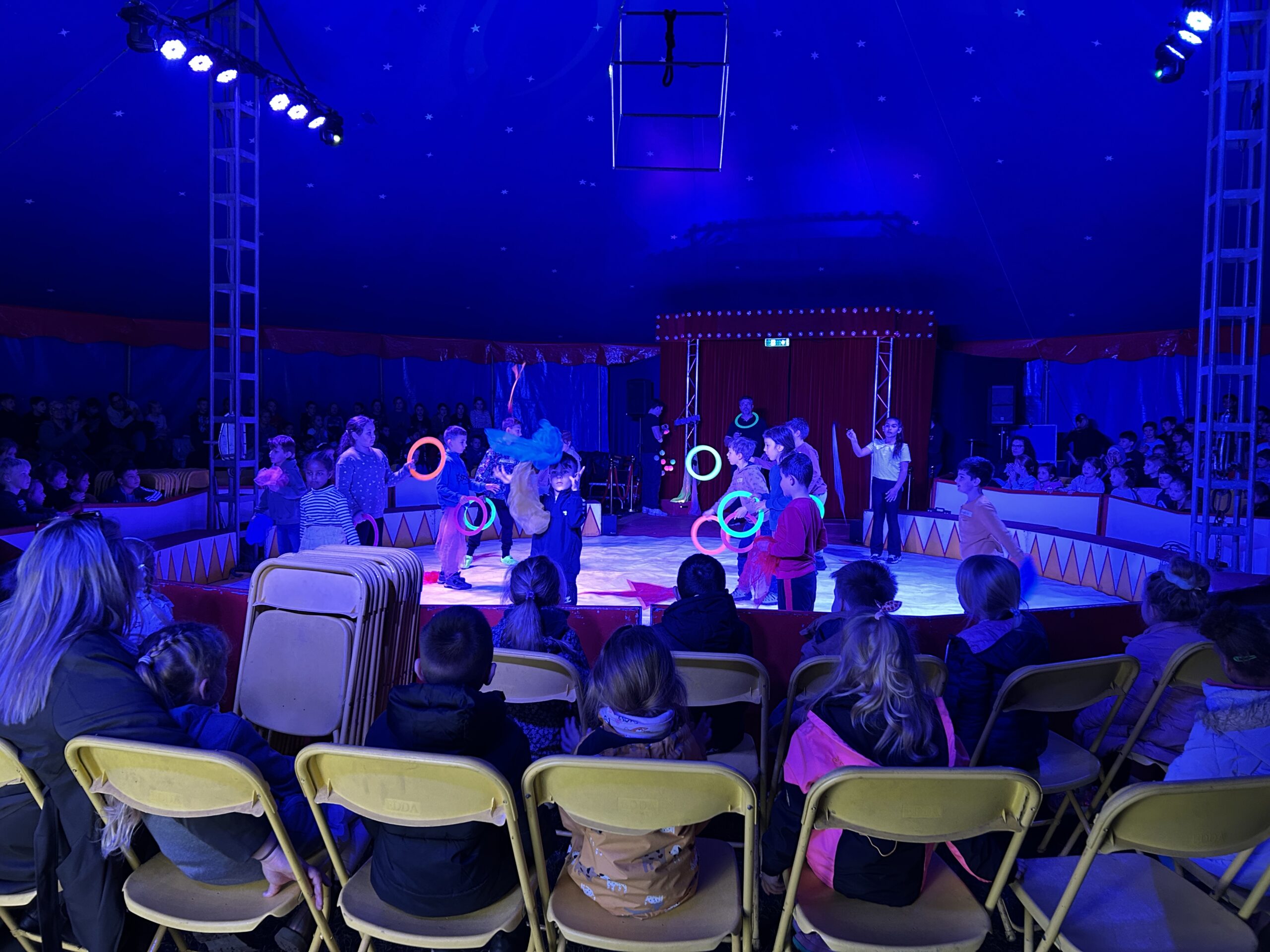 Am Montag sind wir mit allen Kindern der Grundschule und mit den Vorschulkindern aus den Kindertagesstätten in das Zirkuszelt gegangen. Dort begrüßte uns das Zirkusteam und stellte uns die Darbietungen vor. Bereits bei der Schnupperstunde konnten schon die ersten Kinder aktiv dabei sein.