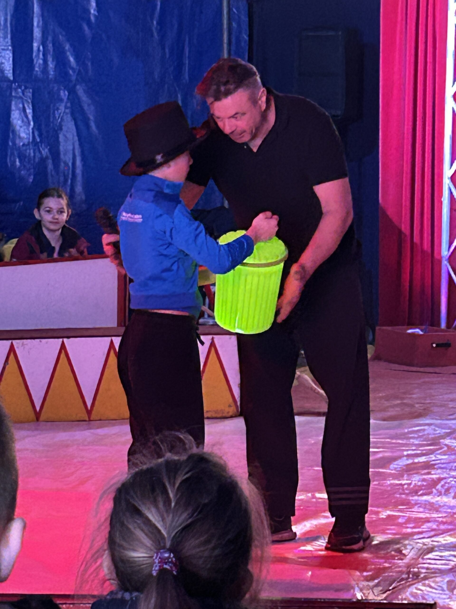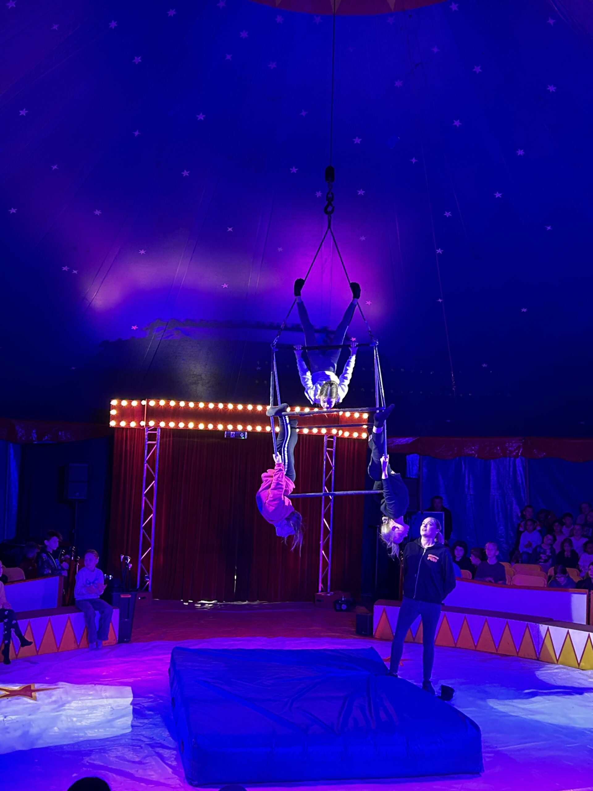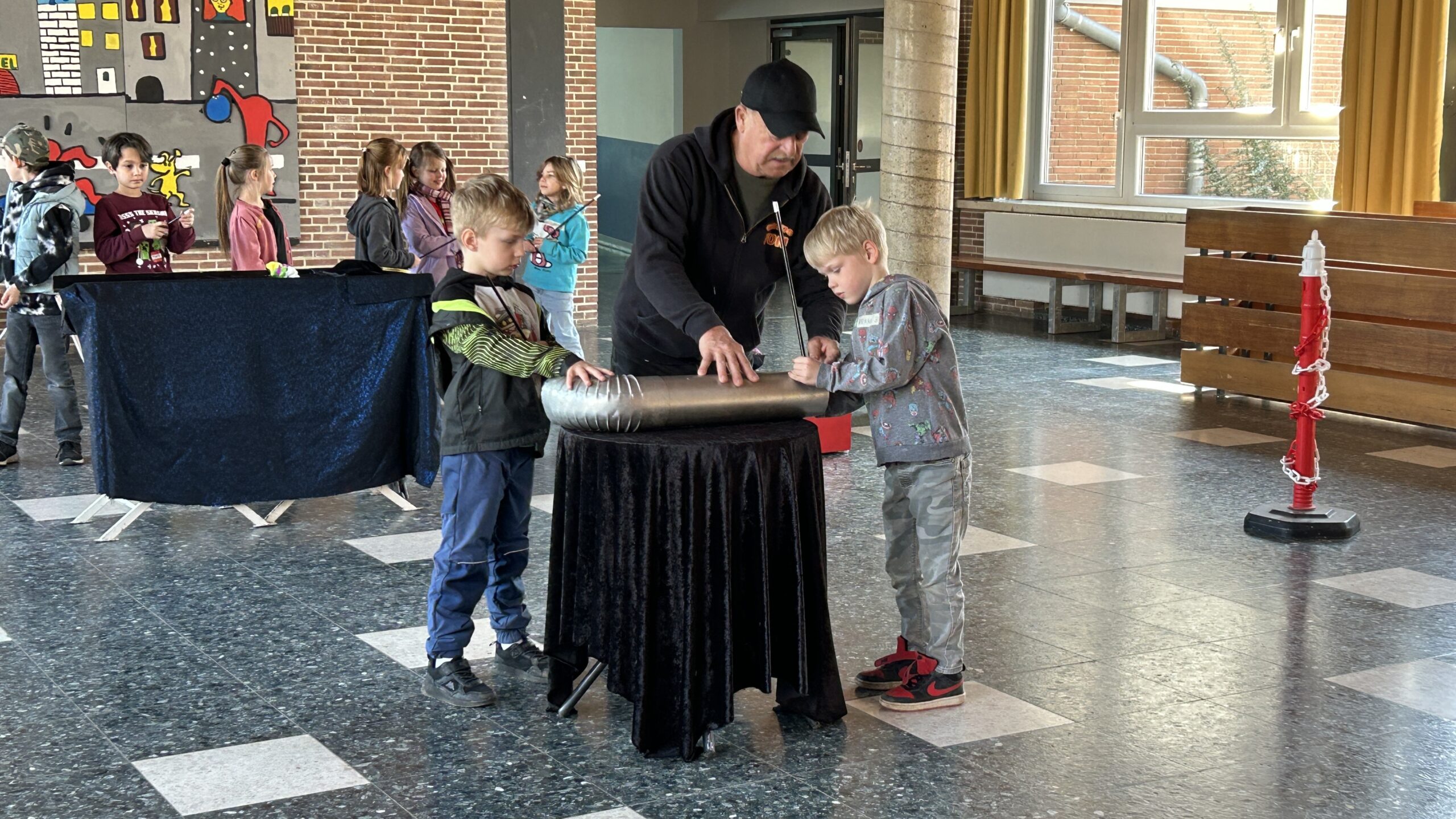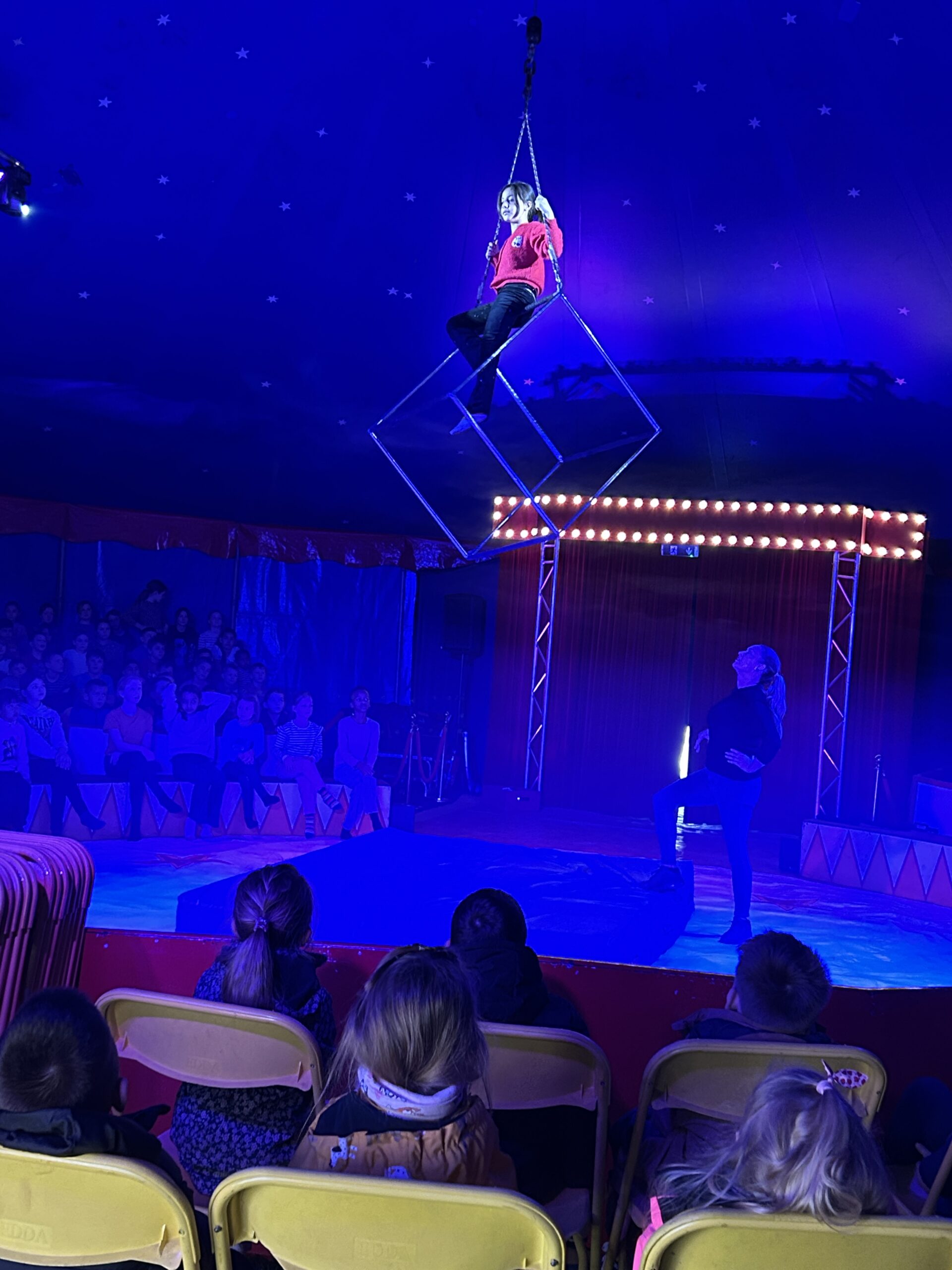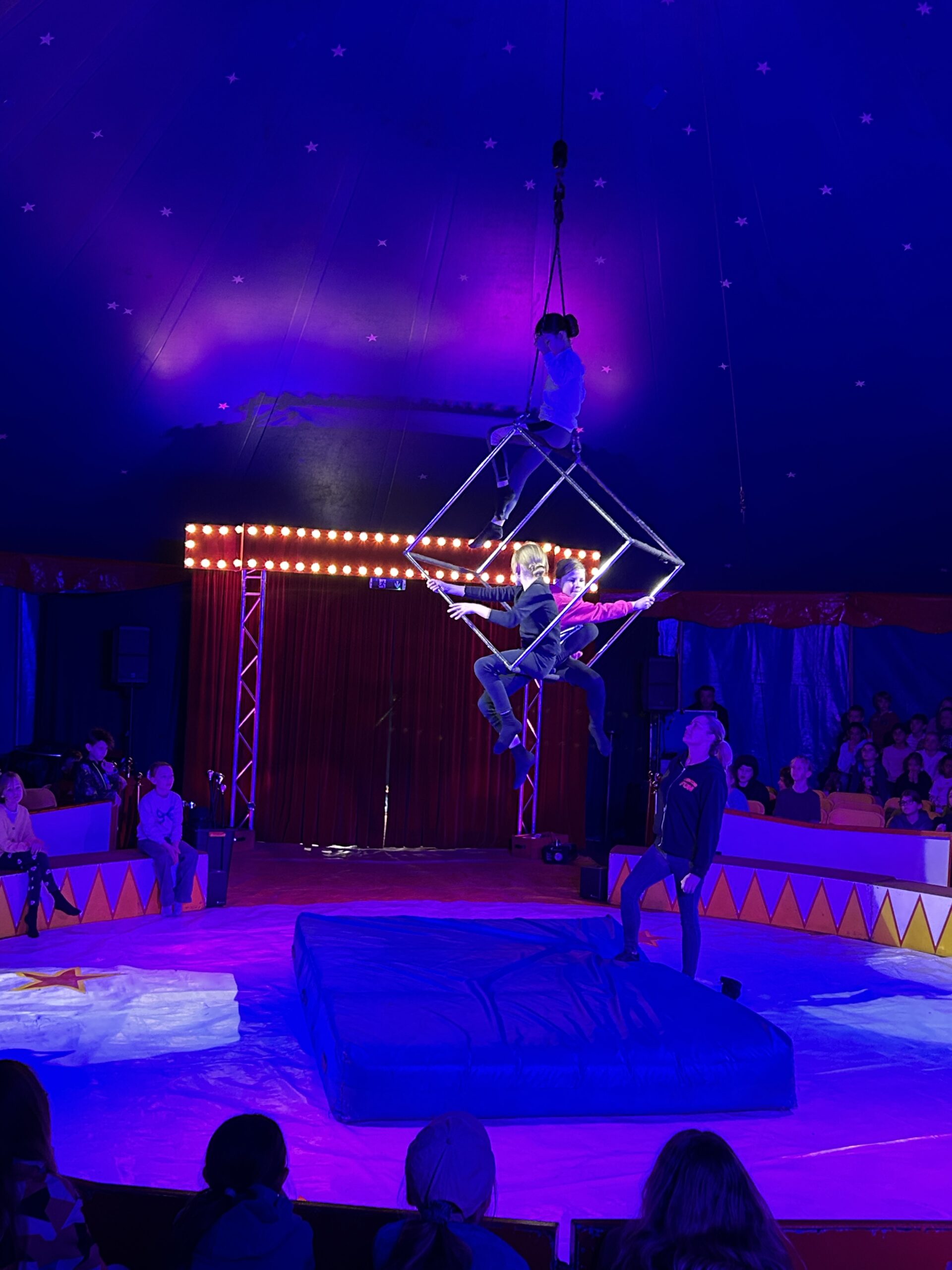 Am Montag sind wir mit allen Kindern der Grundschule und mit den Vorschulkindern aus den Kindertagesstätten in das Zirkuszelt gegangen. Dort begrüßte uns das Zirkusteam und stellte uns die Darbietungen vor. Bereits bei der Schnupperstunde konnten schon die ersten Kinder aktiv dabei sein.