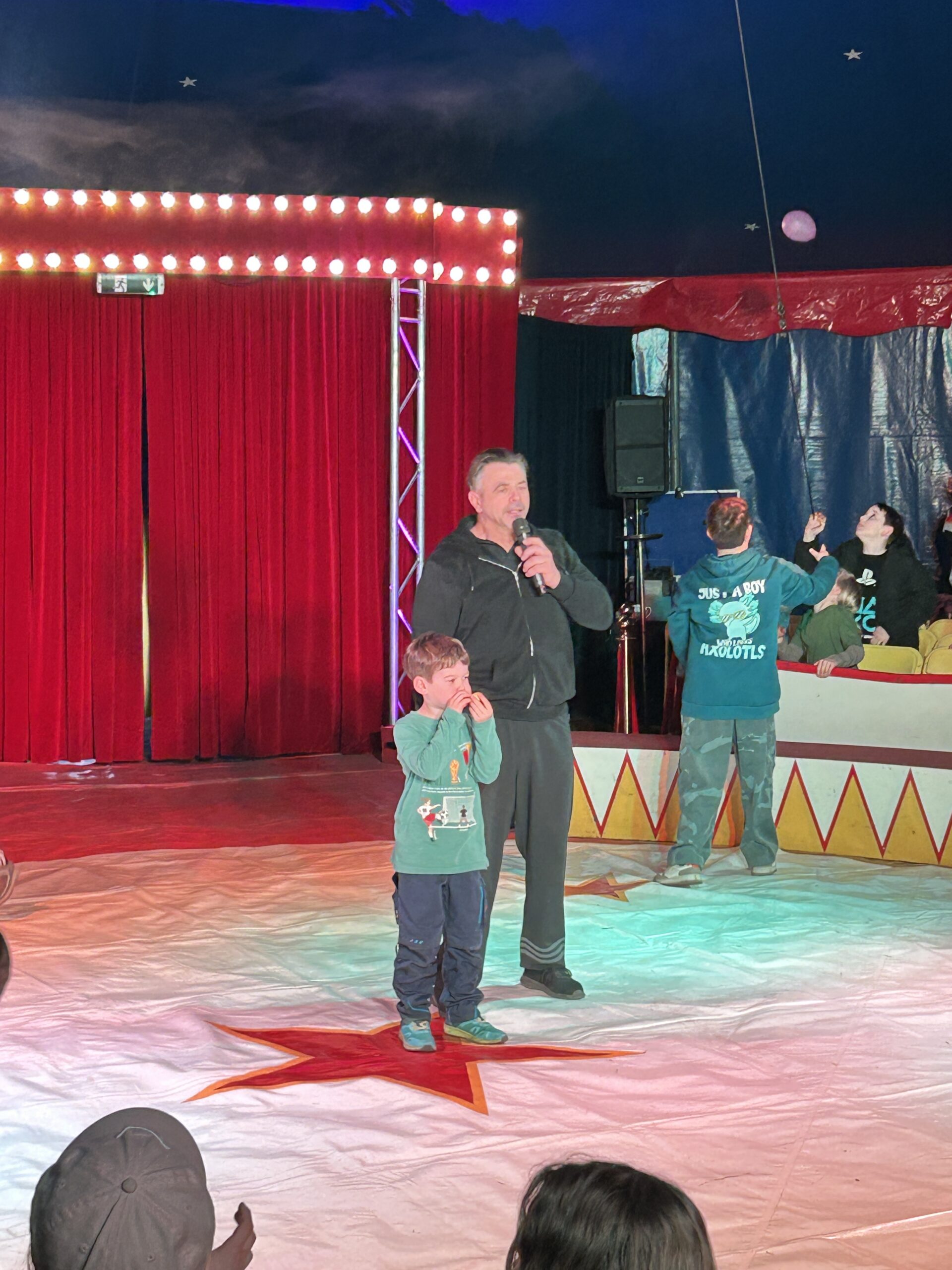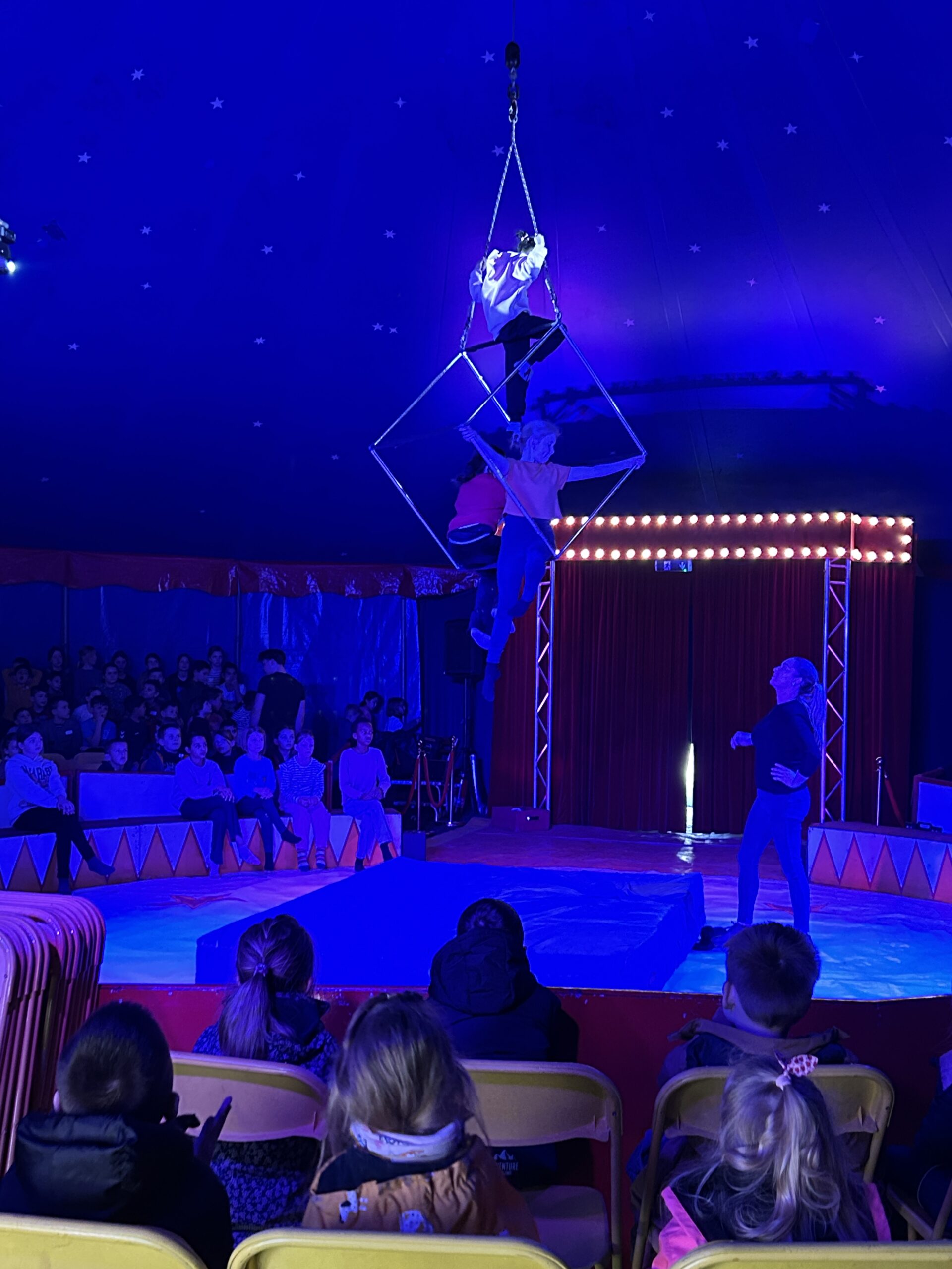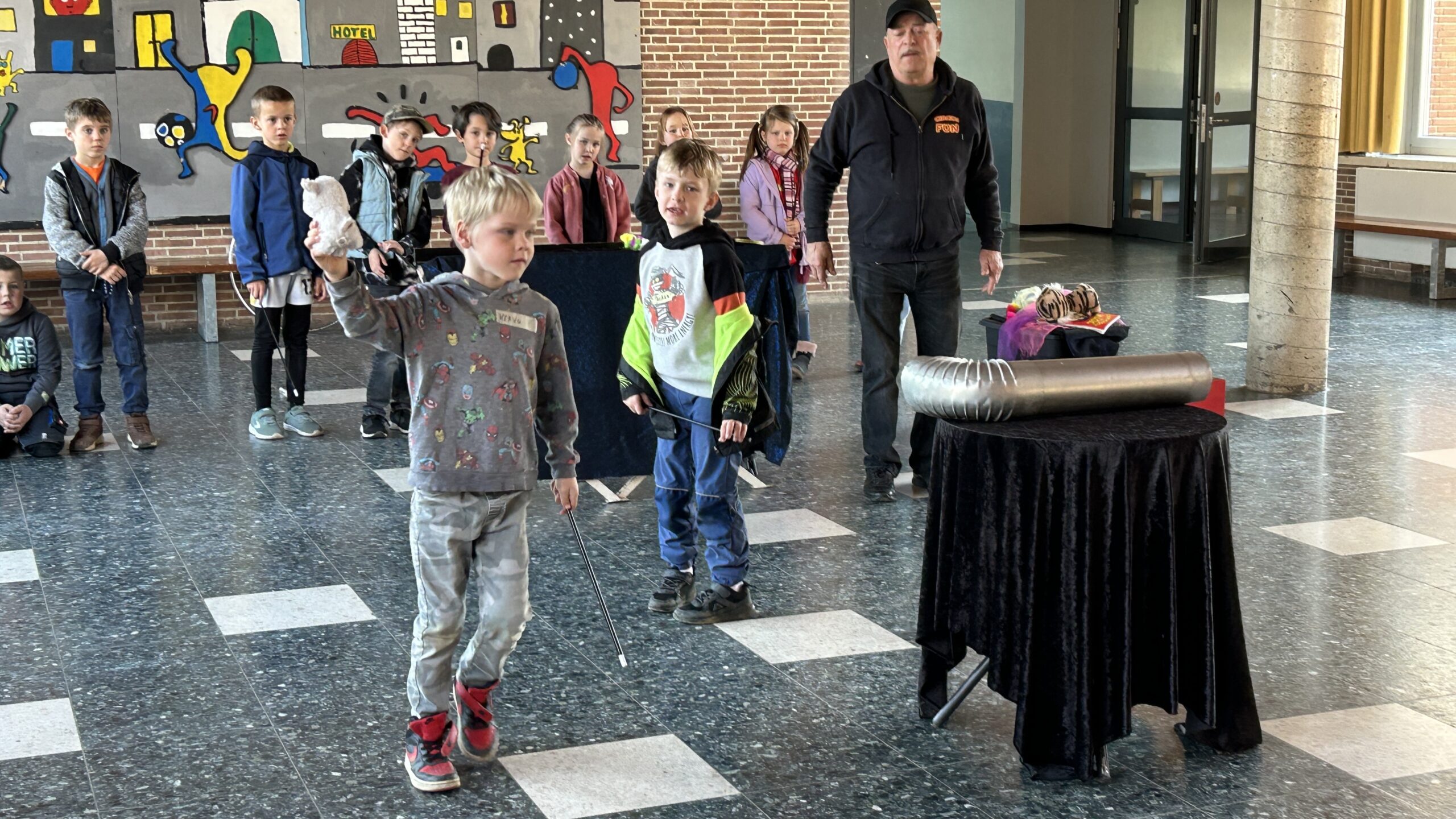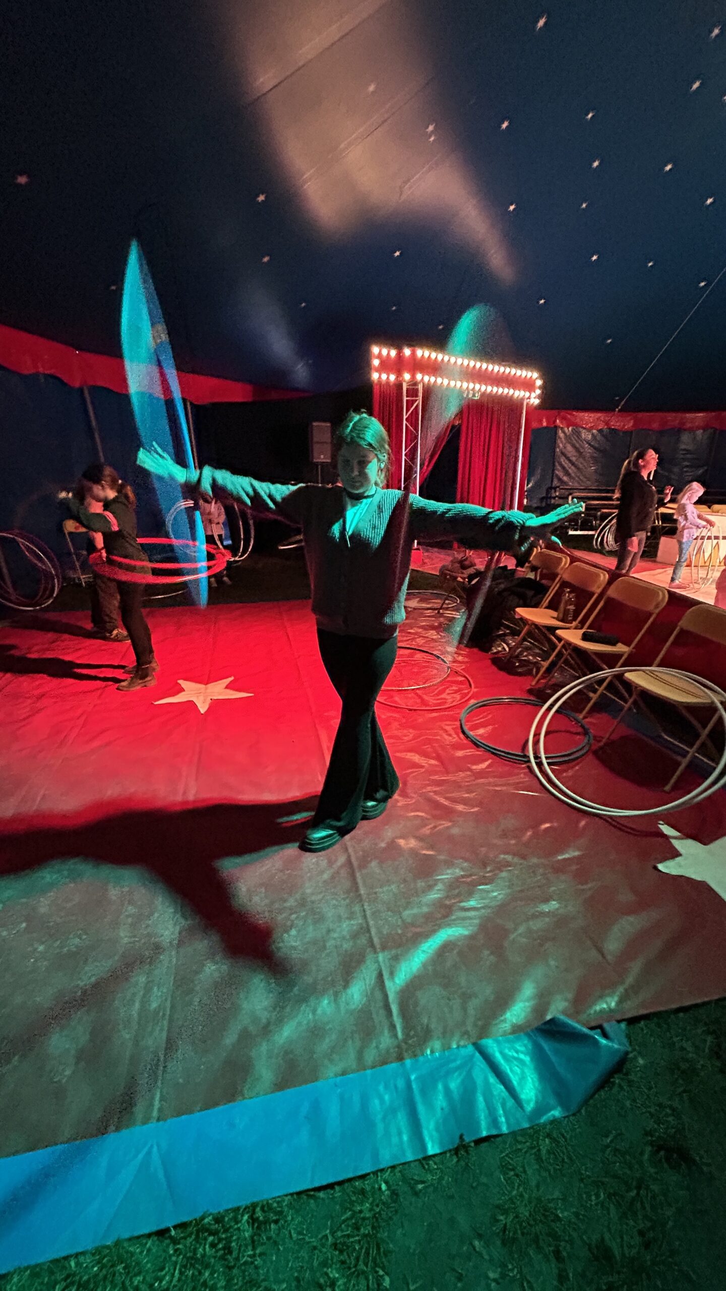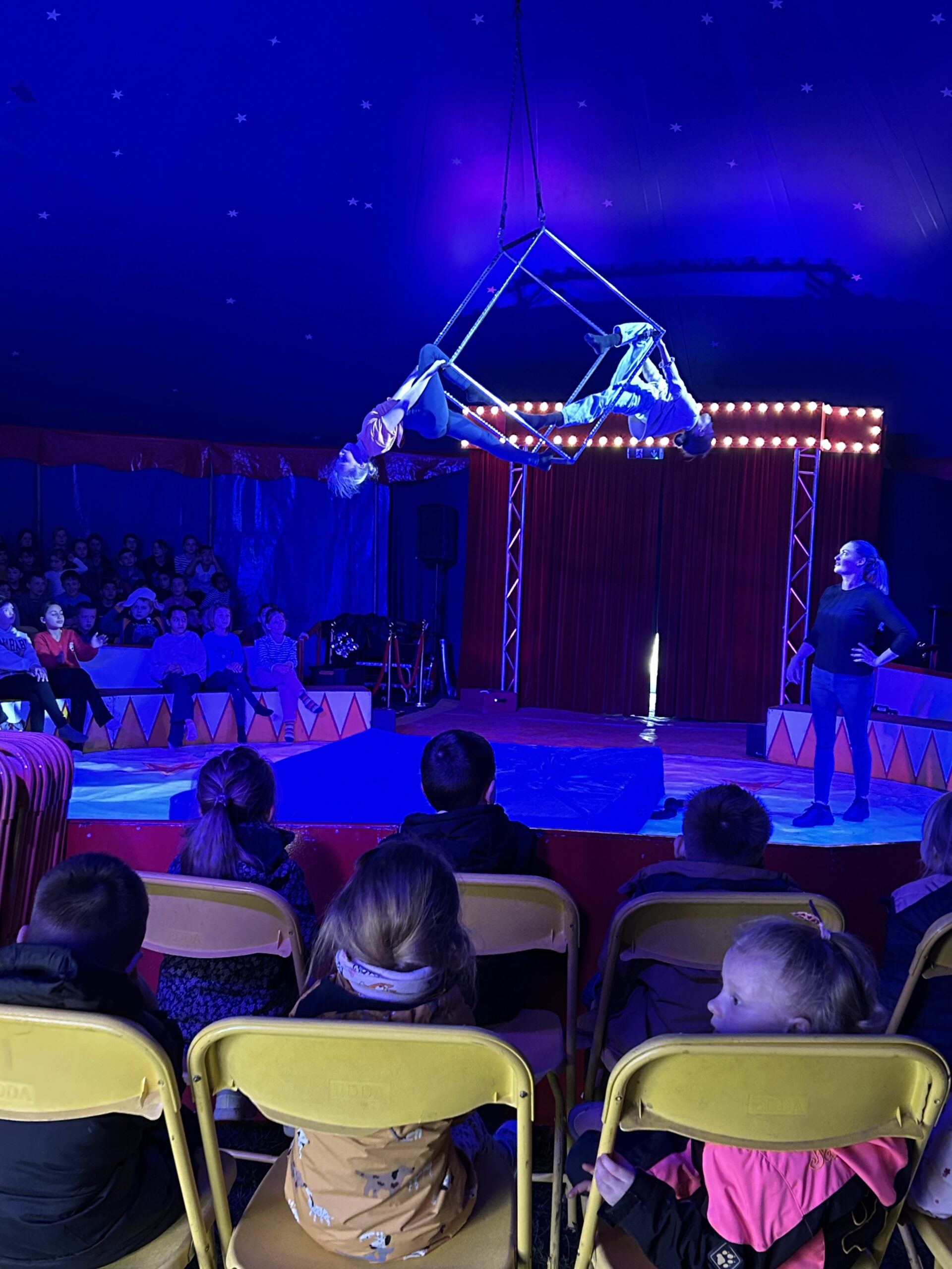 Am Montag sind wir mit allen Kindern der Grundschule und mit den Vorschulkindern aus den Kindertagesstätten in das Zirkuszelt gegangen. Dort begrüßte uns das Zirkusteam und stellte uns die Darbietungen vor. Bereits bei der Schnupperstunde konnten schon die ersten Kinder aktiv dabei sein.