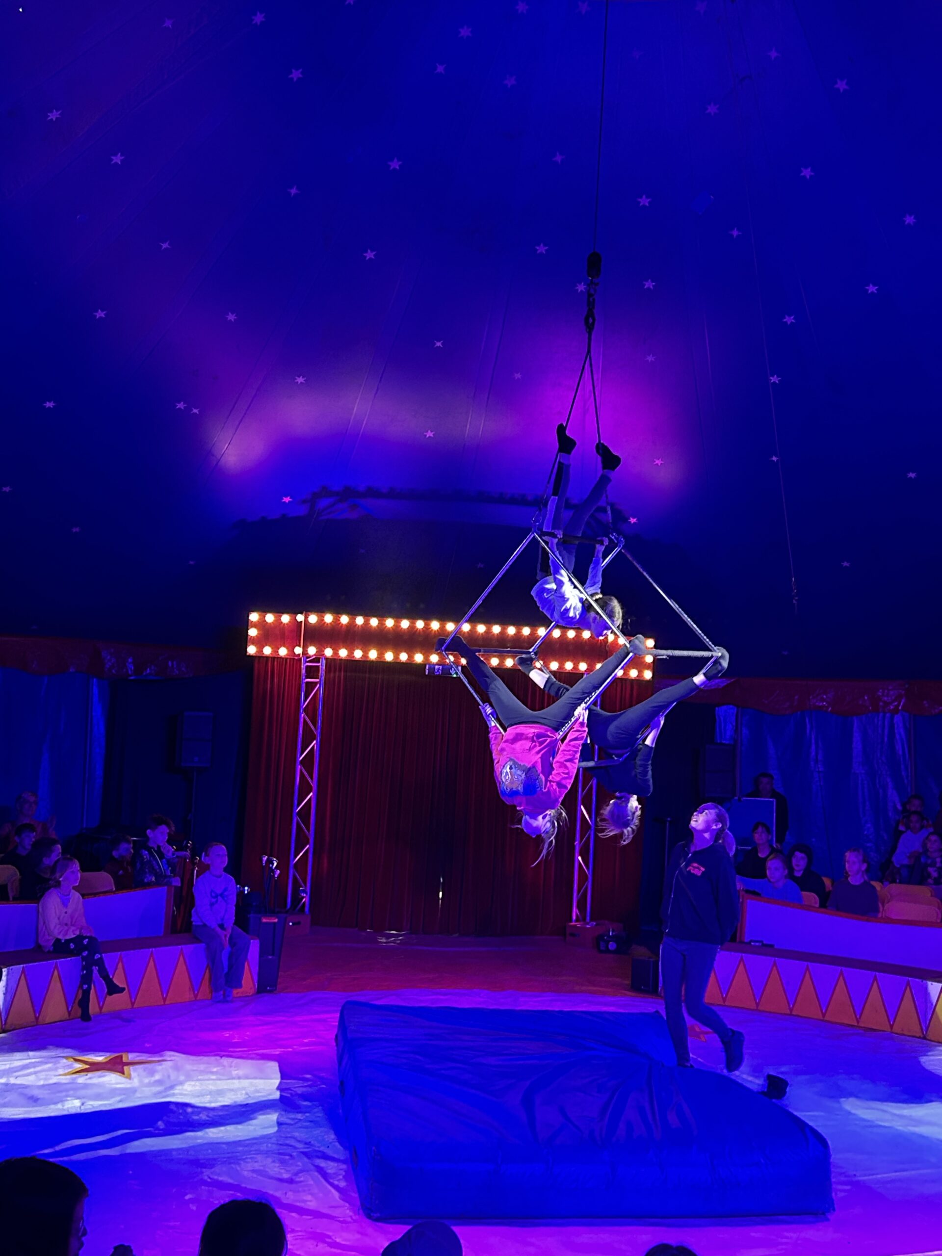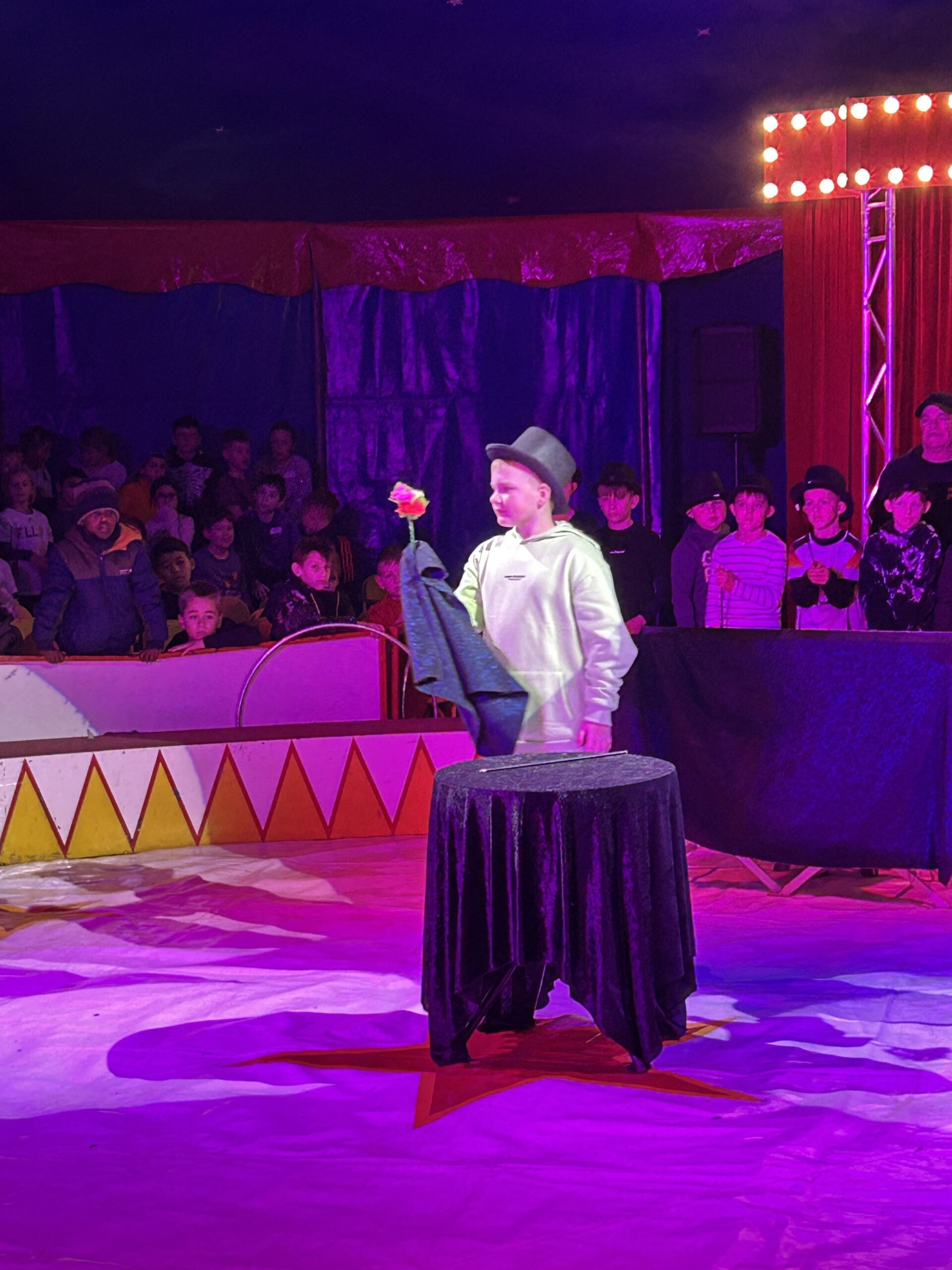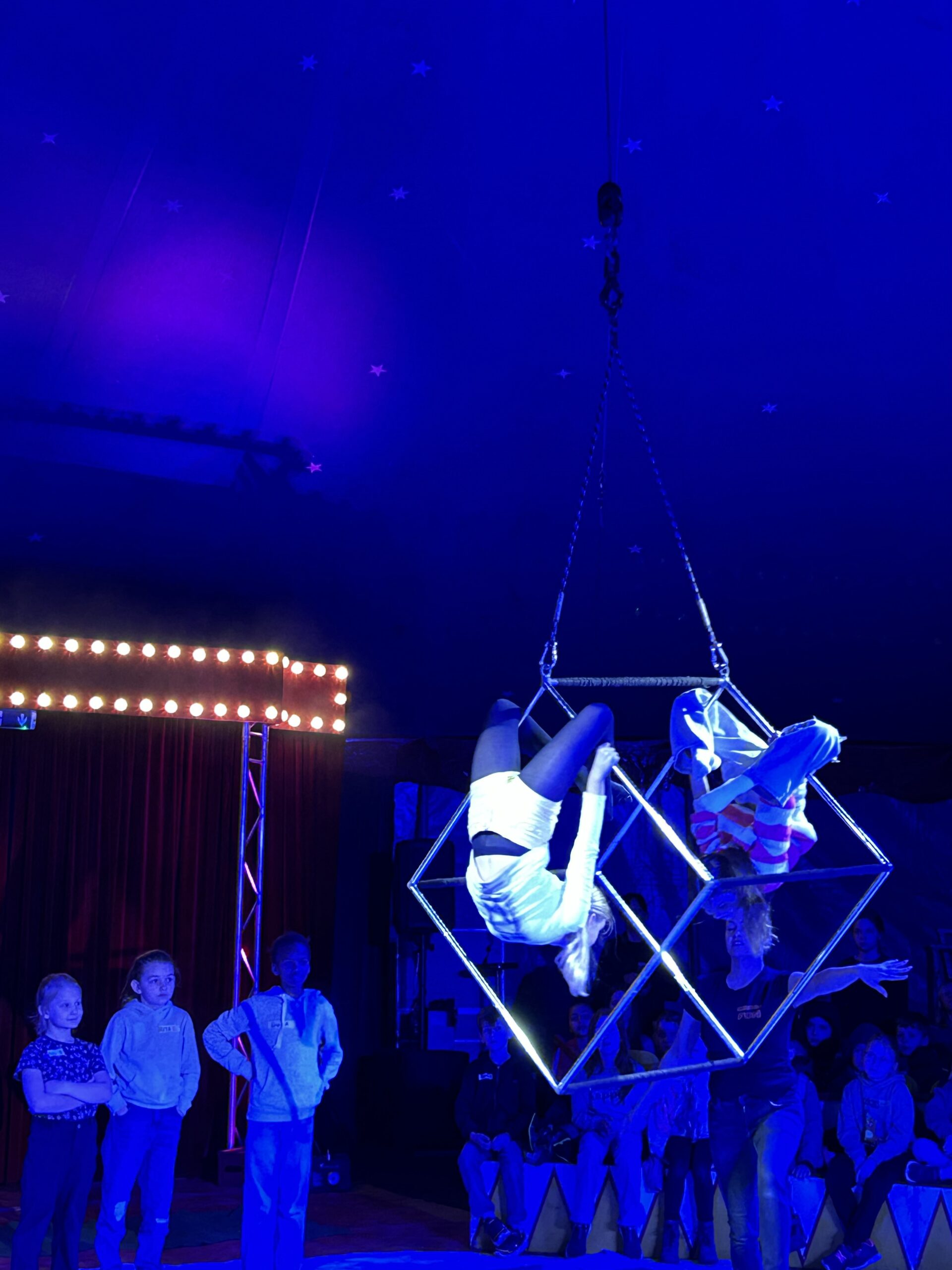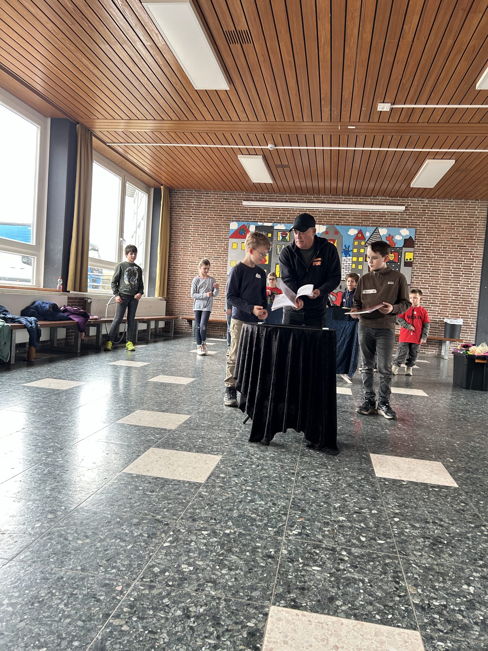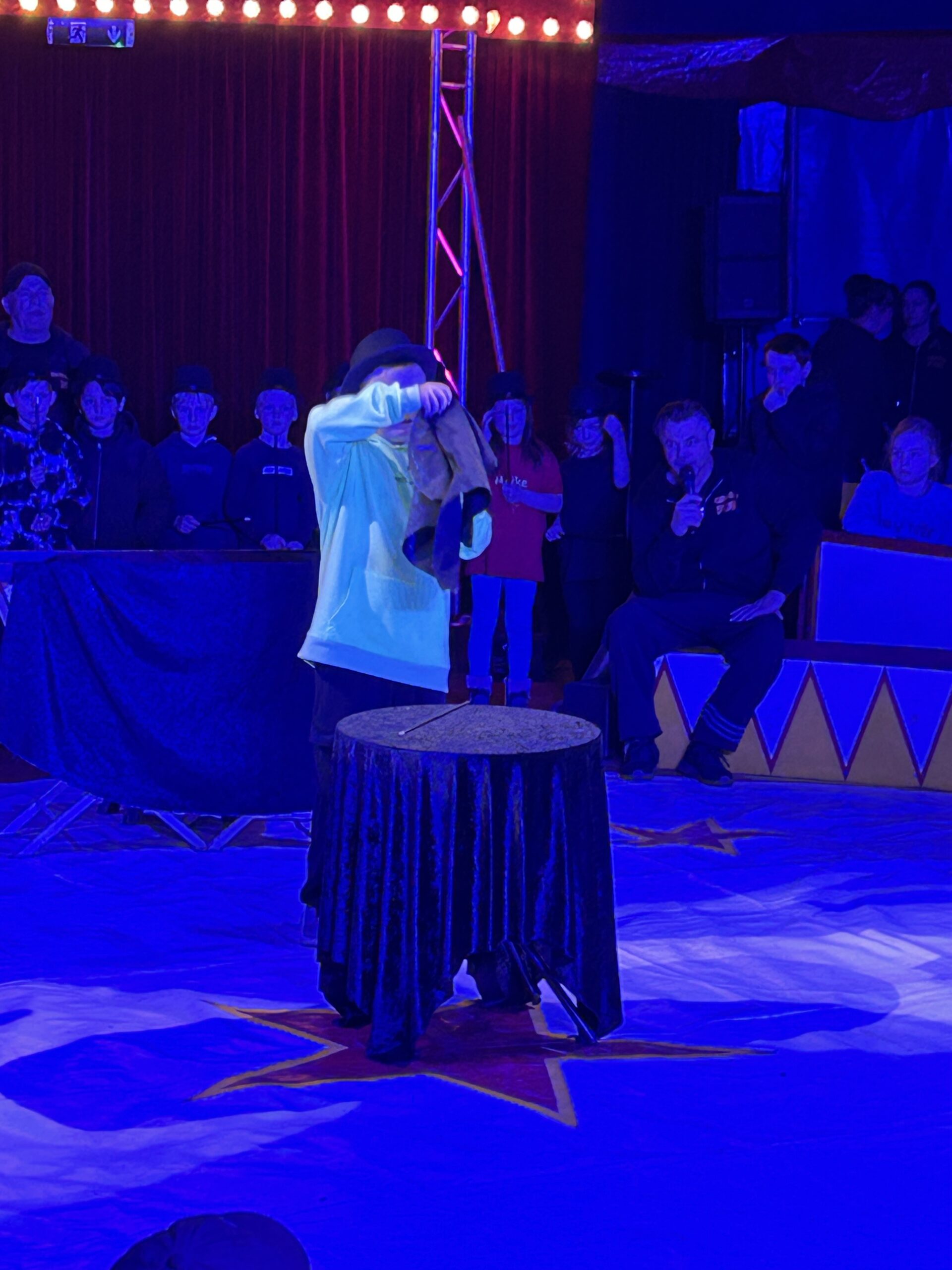 Am Montag sind wir mit allen Kindern der Grundschule und mit den Vorschulkindern aus den Kindertagesstätten in das Zirkuszelt gegangen. Dort begrüßte uns das Zirkusteam und stellte uns die Darbietungen vor. Bereits bei der Schnupperstunde konnten schon die ersten Kinder aktiv dabei sein.
