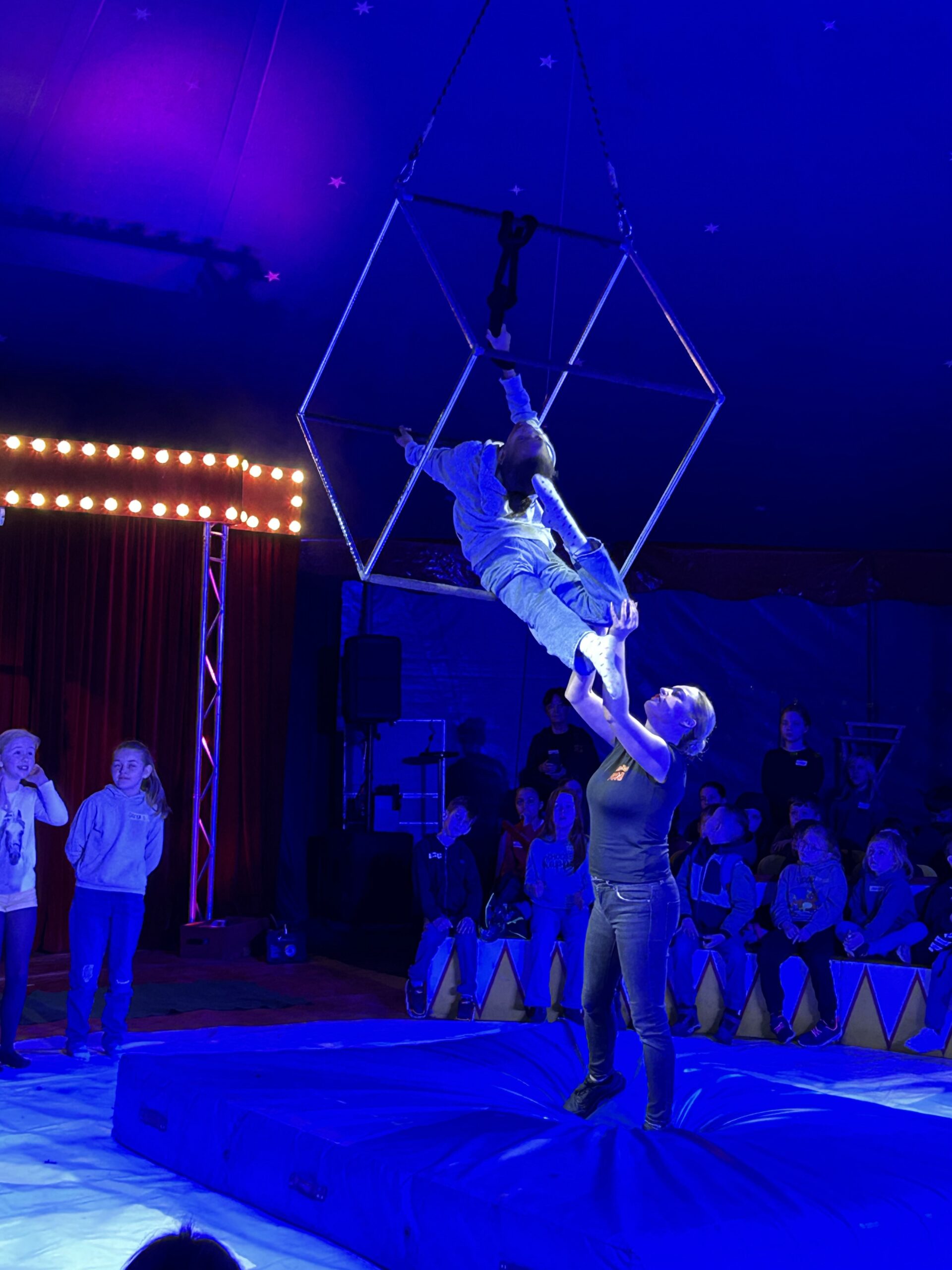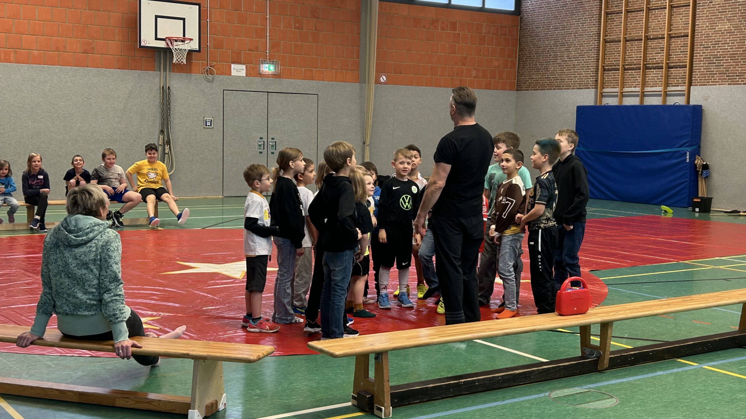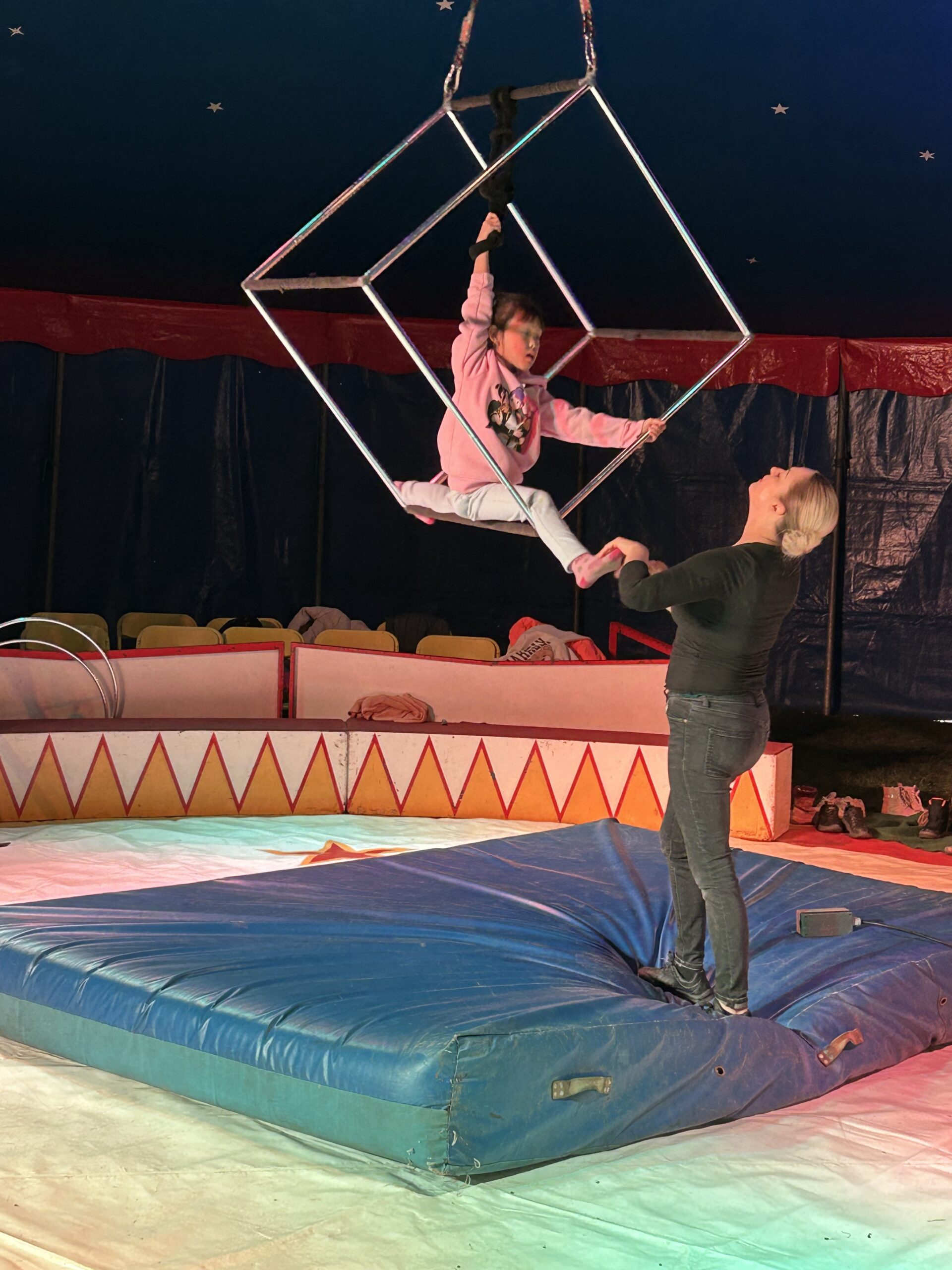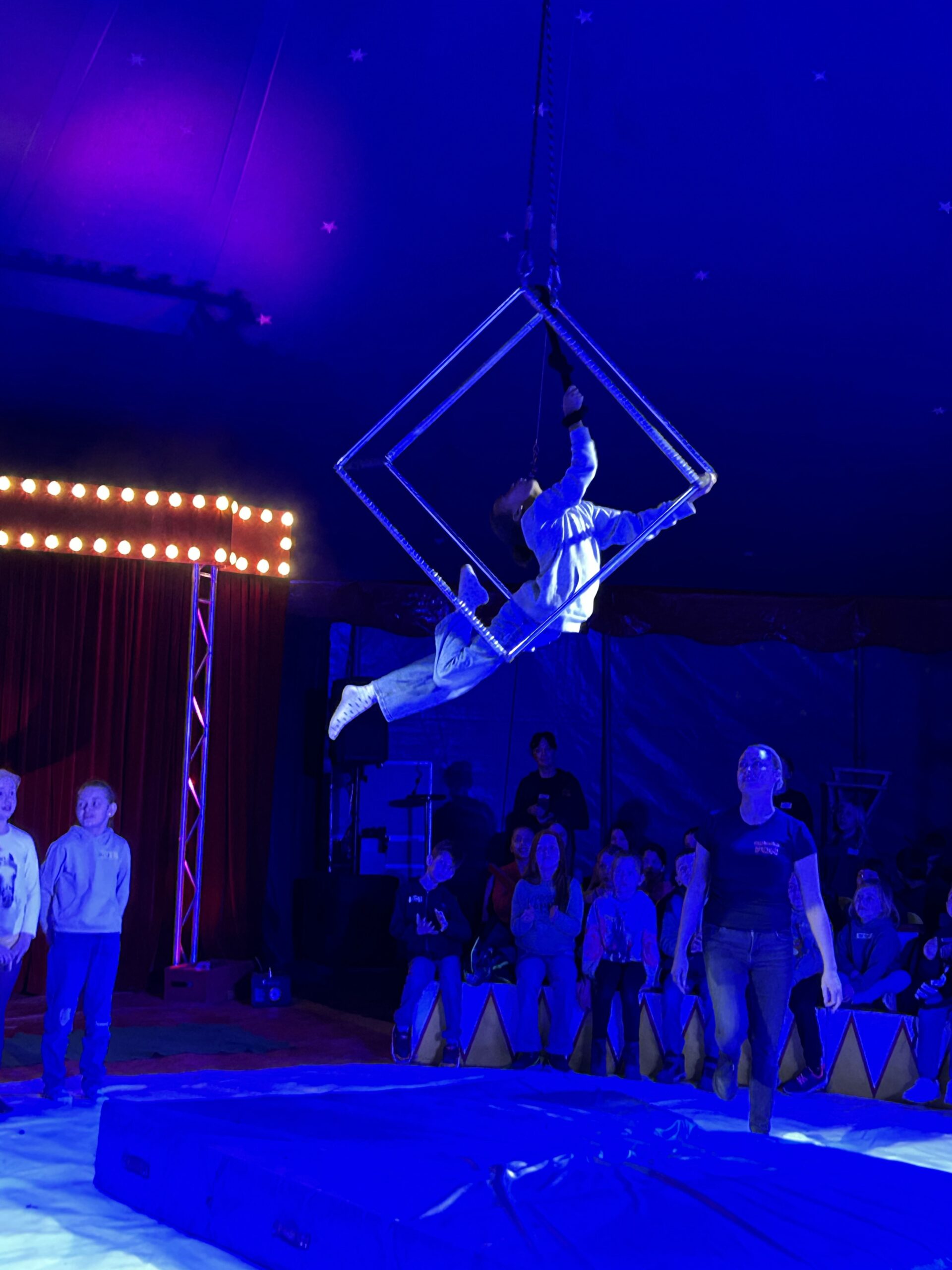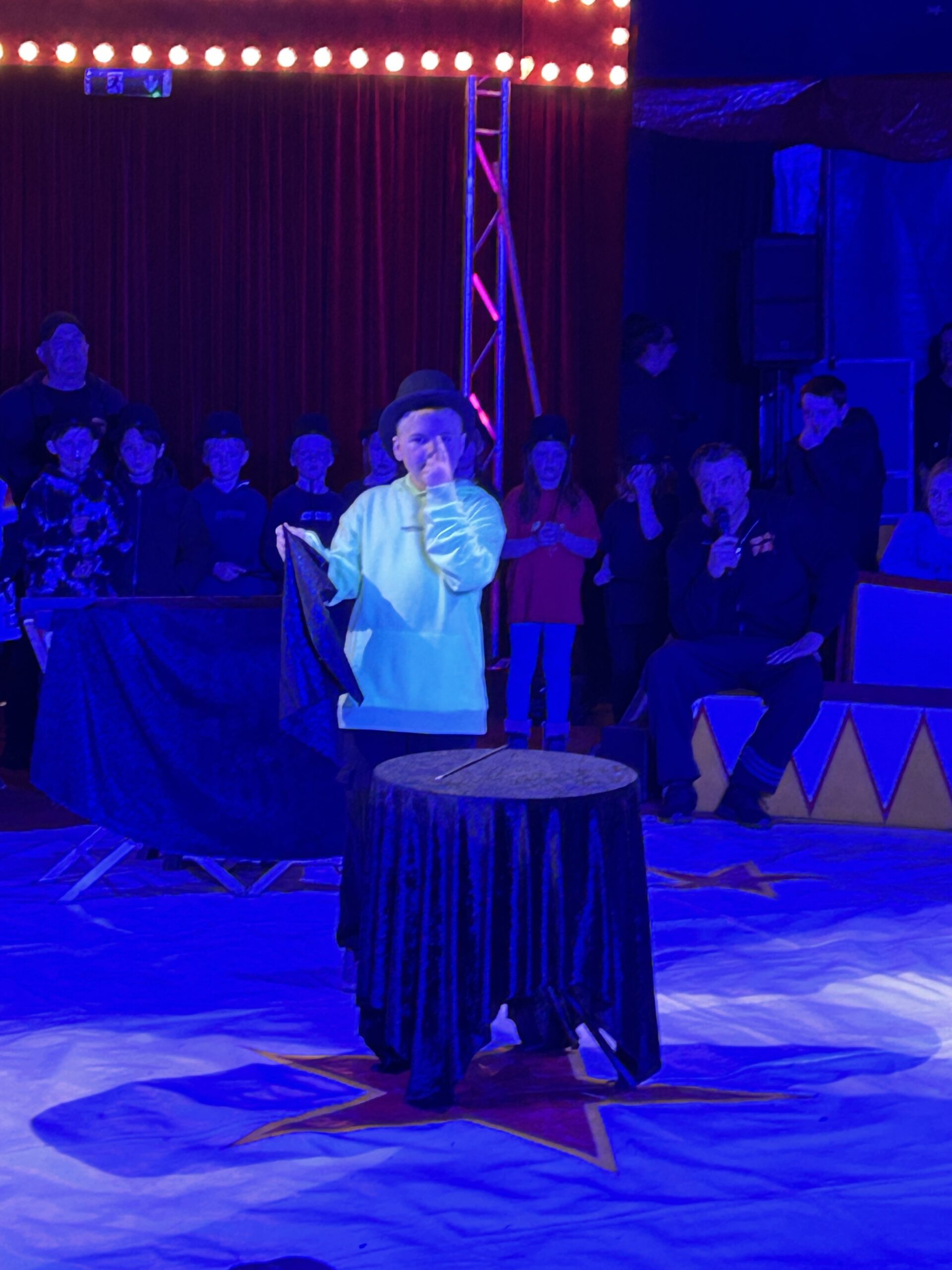 Am Montag sind wir mit allen Kindern der Grundschule und mit den Vorschulkindern aus den Kindertagesstätten in das Zirkuszelt gegangen. Dort begrüßte uns das Zirkusteam und stellte uns die Darbietungen vor. Bereits bei der Schnupperstunde konnten schon die ersten Kinder aktiv dabei sein.