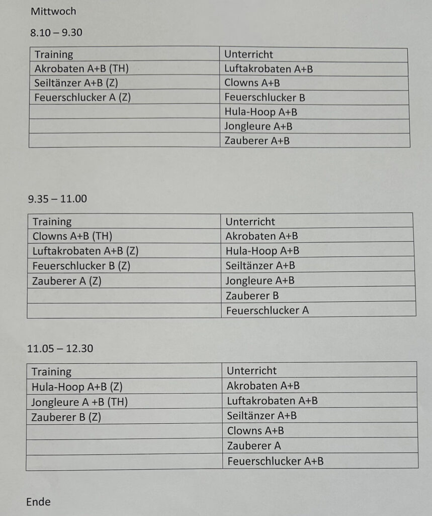 Mittwoch, Training - Training - Training